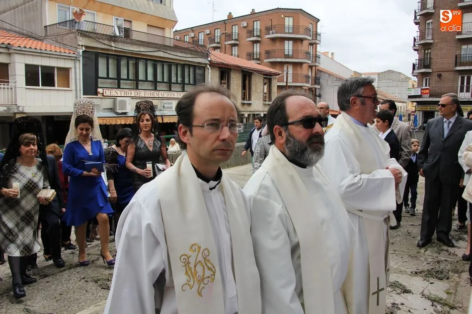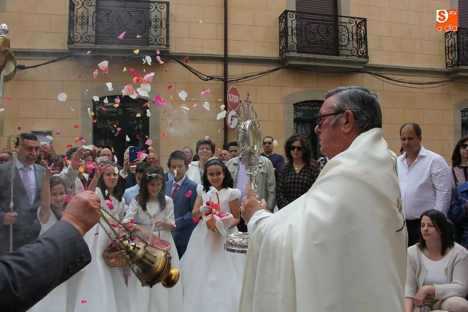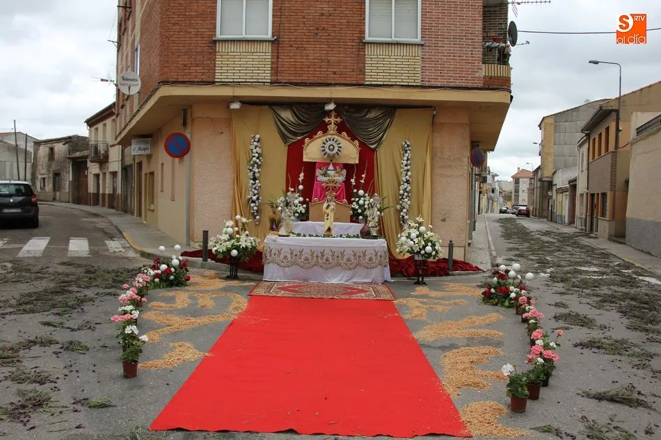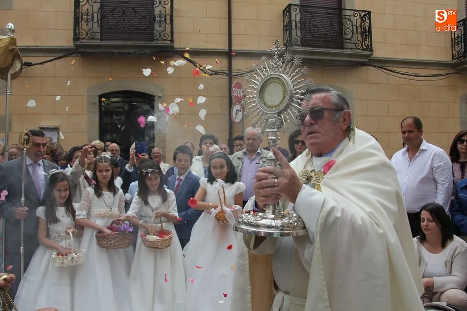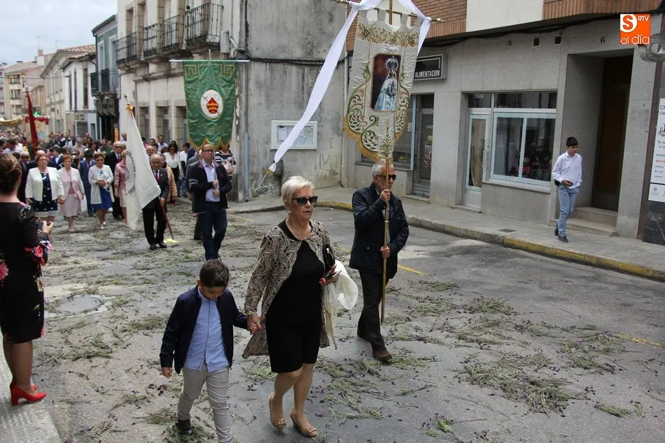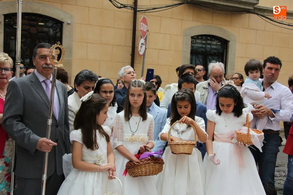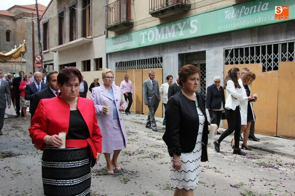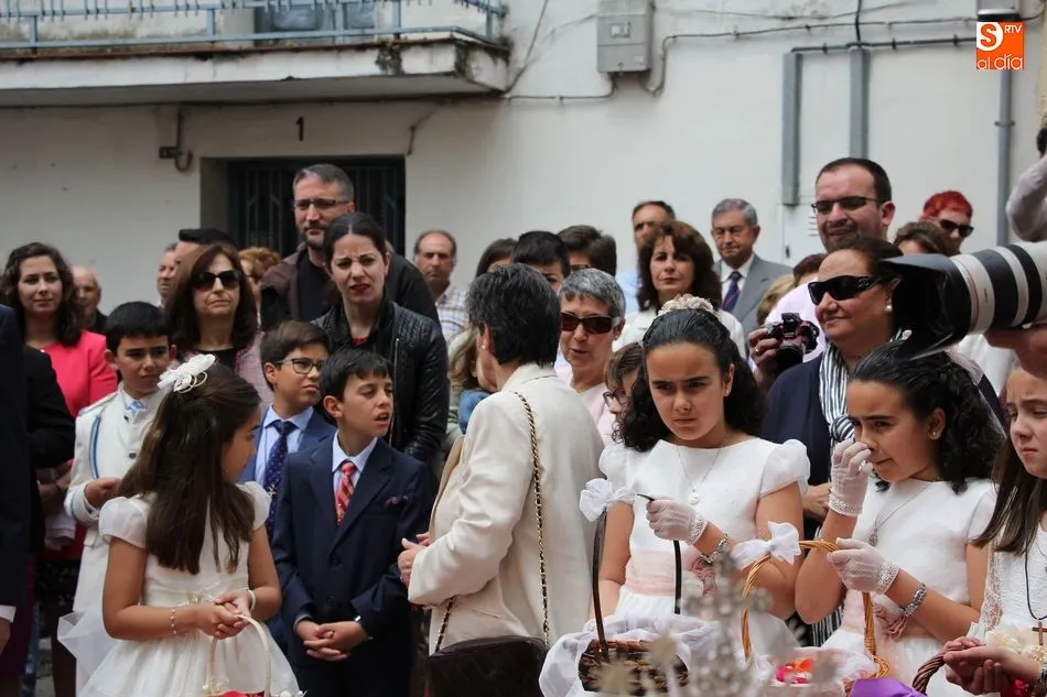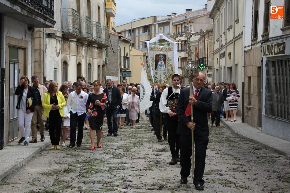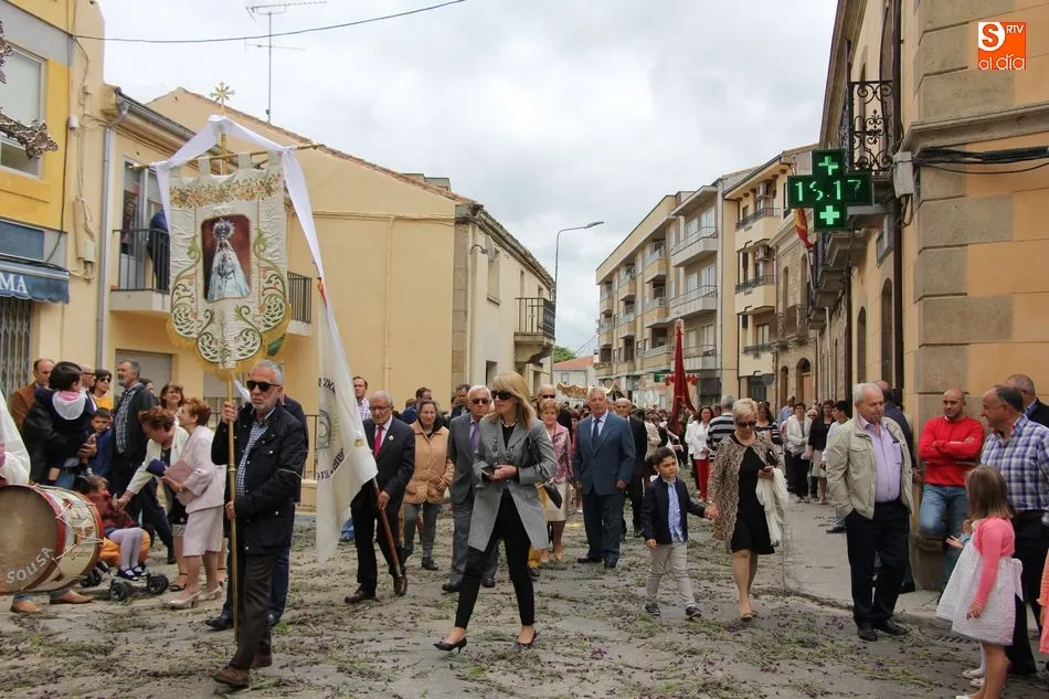 Después de la Eucaristía, en la que intervinieron varios sacerdotes, entre ellos los naturales de esta villa, Juan José Calles y Daniel Sevillano, además de Jesús Florencio González, Bernabé Marcos y los párrocos de Vitigudino Francisco Fraile y José Antonio Andújar, los cofrades salían del templo guiando el palio y la Custodia del Santísimo para dirigirse por la calle San Roque con dirección a Cuatro Calles, lugar donde les aguardaba el primero de los altares con cuatro niños, y después continuar la procesión por la calle del Centro Cultural para llegar al chaflán de la calle Pedro Velasco, lugar donde se encontraba instalado el altar realizado por la Cofradía Sacramental ?Villa de Vitigudino?, y en el que esperaban tres bebés para recibir la bendición sacerdotal.