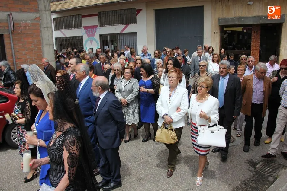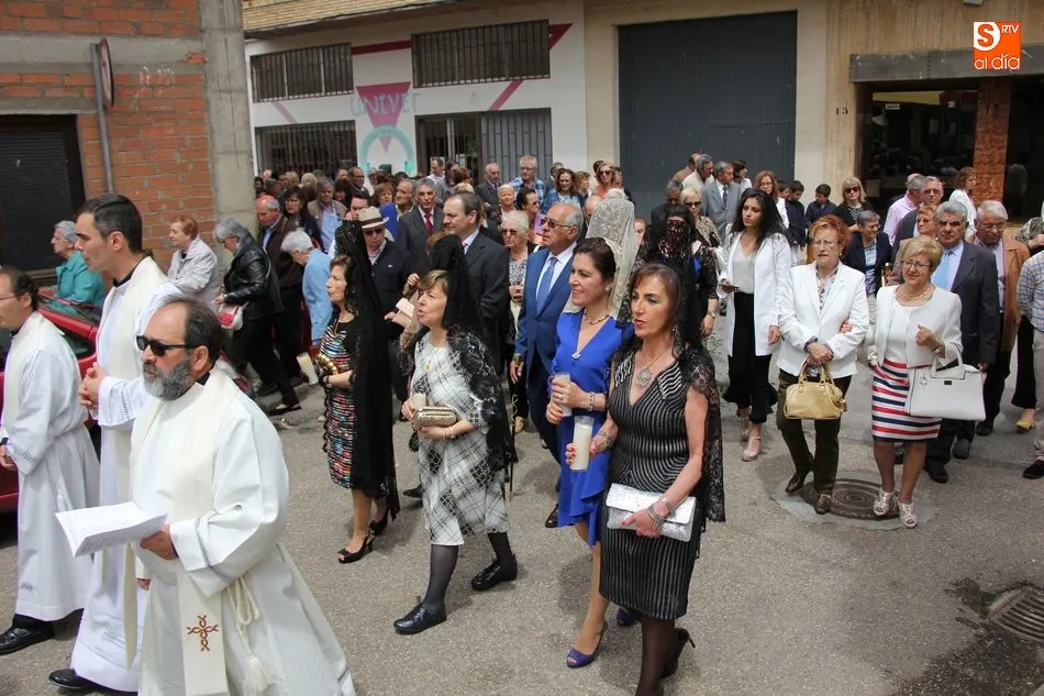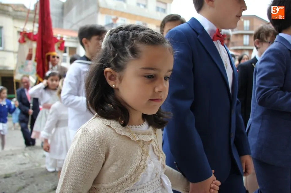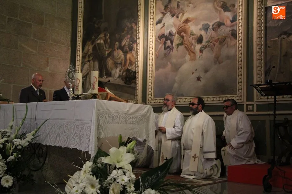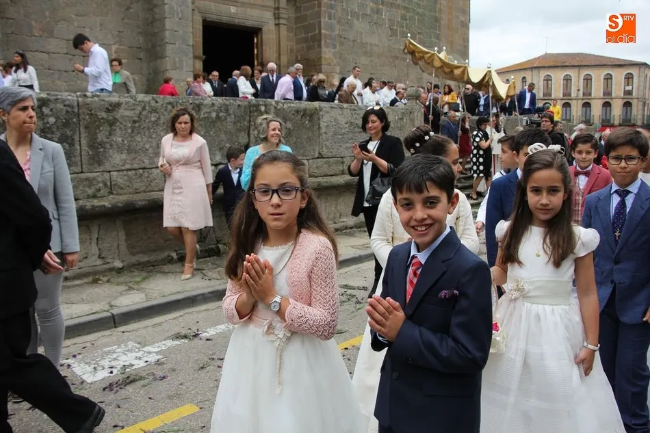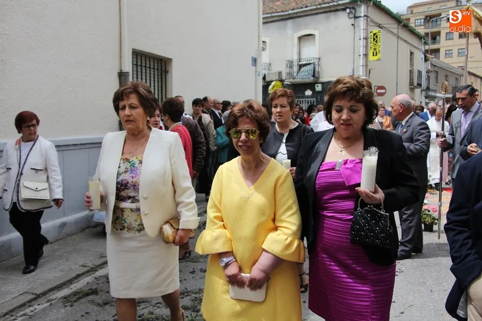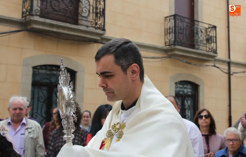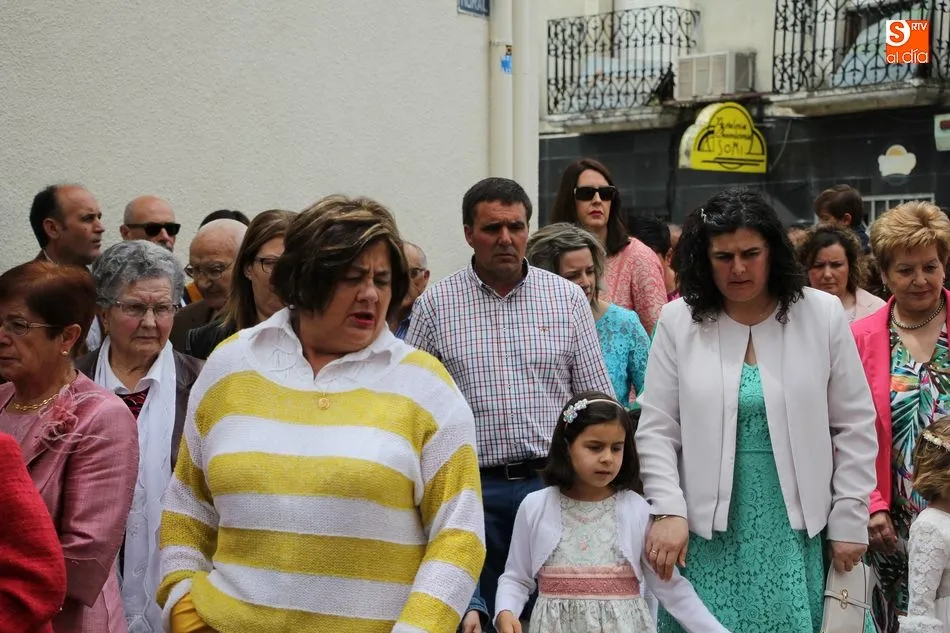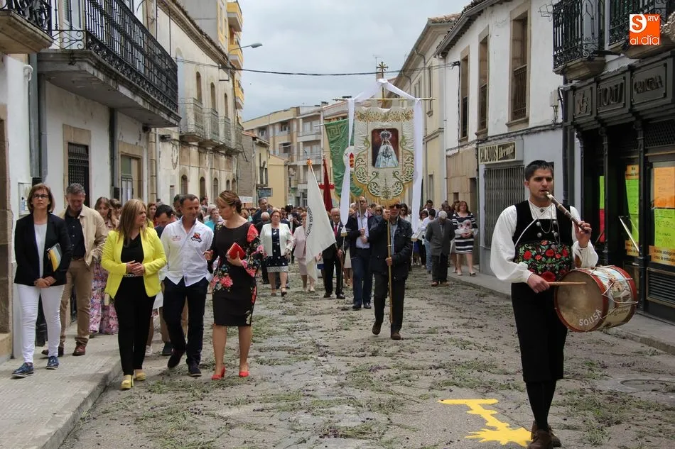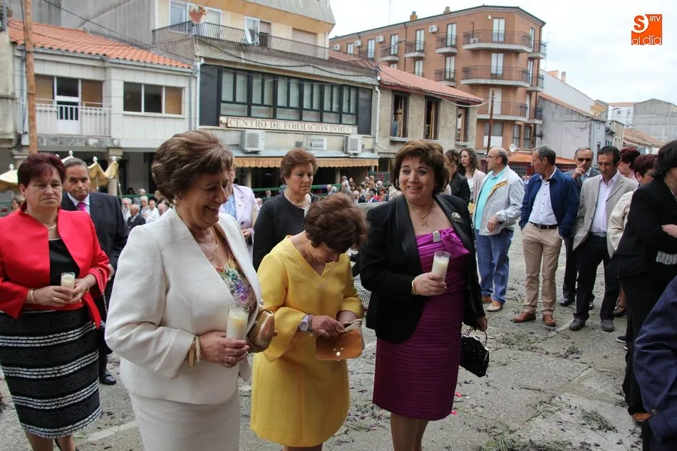 Después de la Eucaristía, en la que intervinieron varios sacerdotes, entre ellos los naturales de esta villa, Juan José Calles y Daniel Sevillano, además de Jesús Florencio González, Bernabé Marcos y los párrocos de Vitigudino Francisco Fraile y José Antonio Andújar, los cofrades salían del templo guiando el palio y la Custodia del Santísimo para dirigirse por la calle San Roque con dirección a Cuatro Calles, lugar donde les aguardaba el primero de los altares con cuatro niños, y después continuar la procesión por la calle del Centro Cultural para llegar al chaflán de la calle Pedro Velasco, lugar donde se encontraba instalado el altar realizado por la Cofradía Sacramental ?Villa de Vitigudino?, y en el que esperaban tres bebés para recibir la bendición sacerdotal.