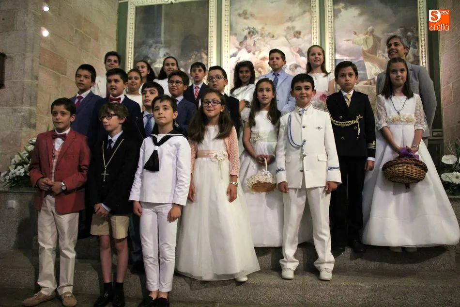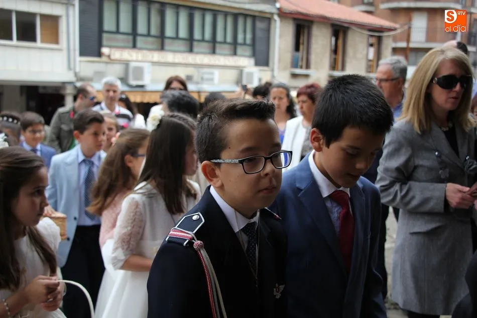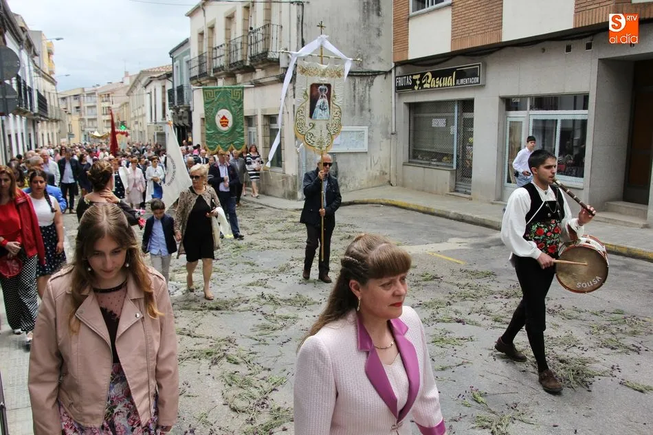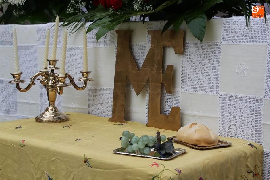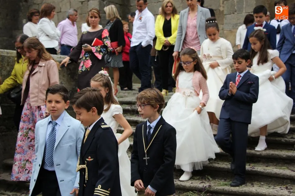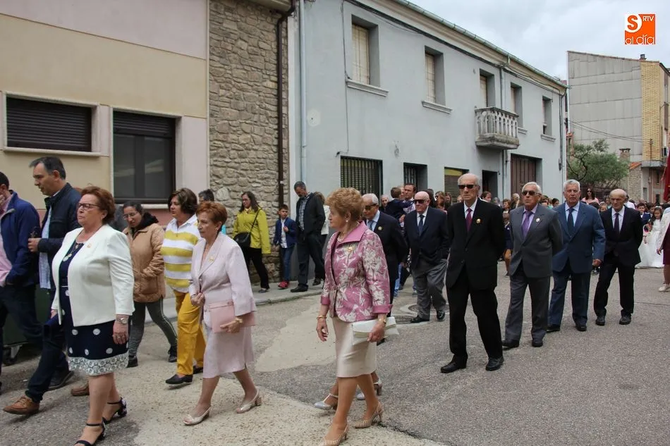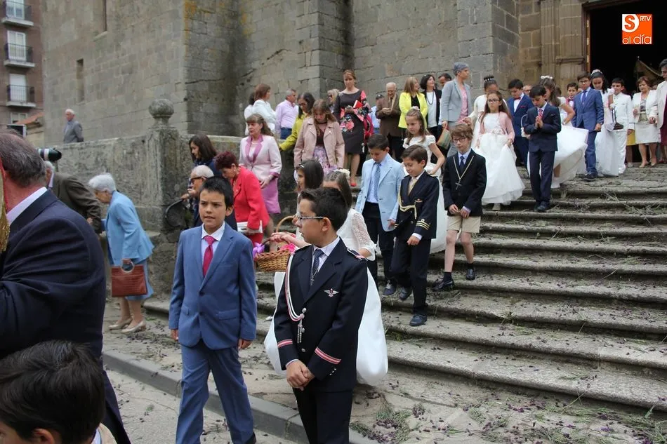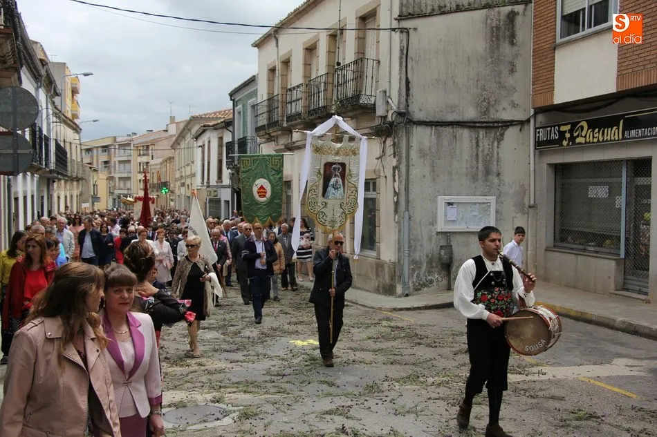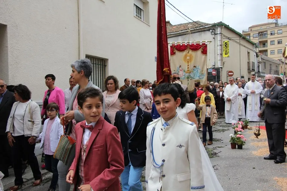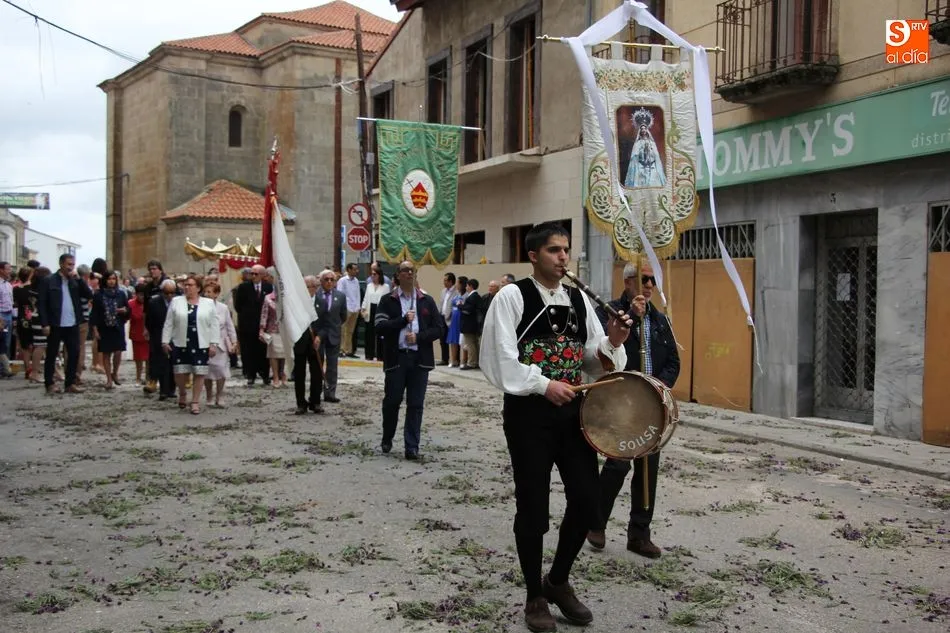 Fernando y Manuel Nieto, en su papel de mayordomos, presidian los actos religiosos en este día grande del Corpus. Tras la eucaristía daba comienzo la procesión por la calles, acto que estaba encabezado por la gaita y el tamboril de Jorge Sousa, tamborilero de la localidad; seguido por una veintena de niños y niñas que los domingos previos habían tomado la Primera Comunión.