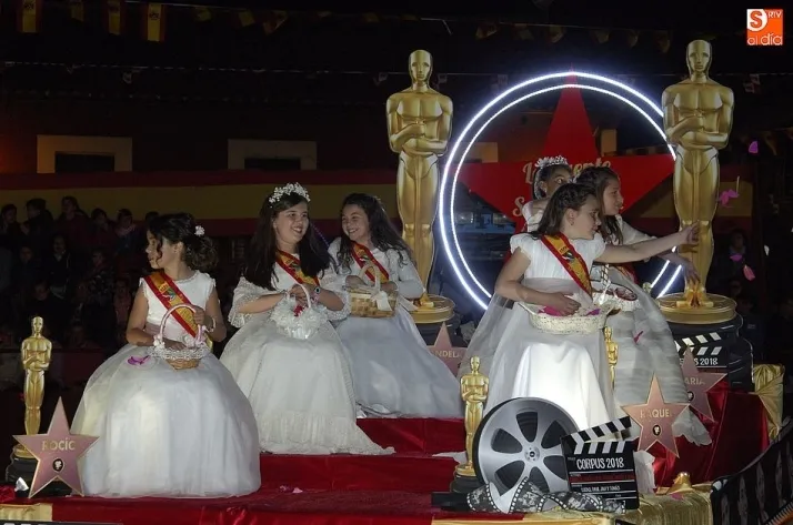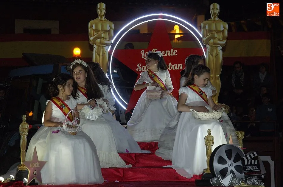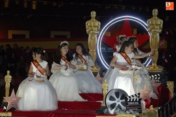 Ese desfile contó con un total de 4 carrozas. Por un lado, en las que viajaron las dos cortes de honor de las fiestas, cada una de ellas con una temática diferente: la carroza de la corte infantil estuvo dedicada a los premios Óscar de Hollywood, mientras que la carraza de las damas mayores estuvo ambientada en la antigua Grecia.