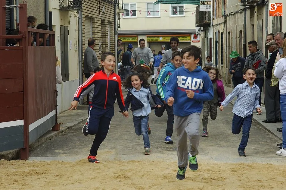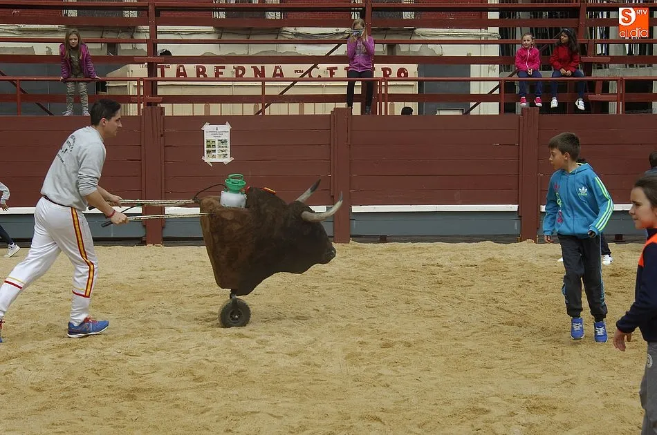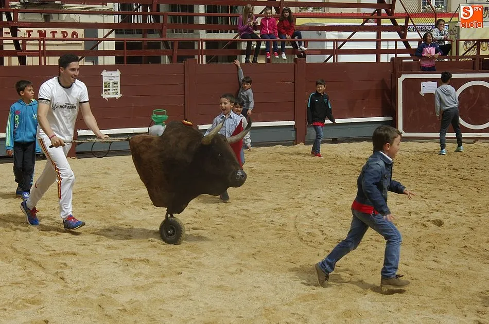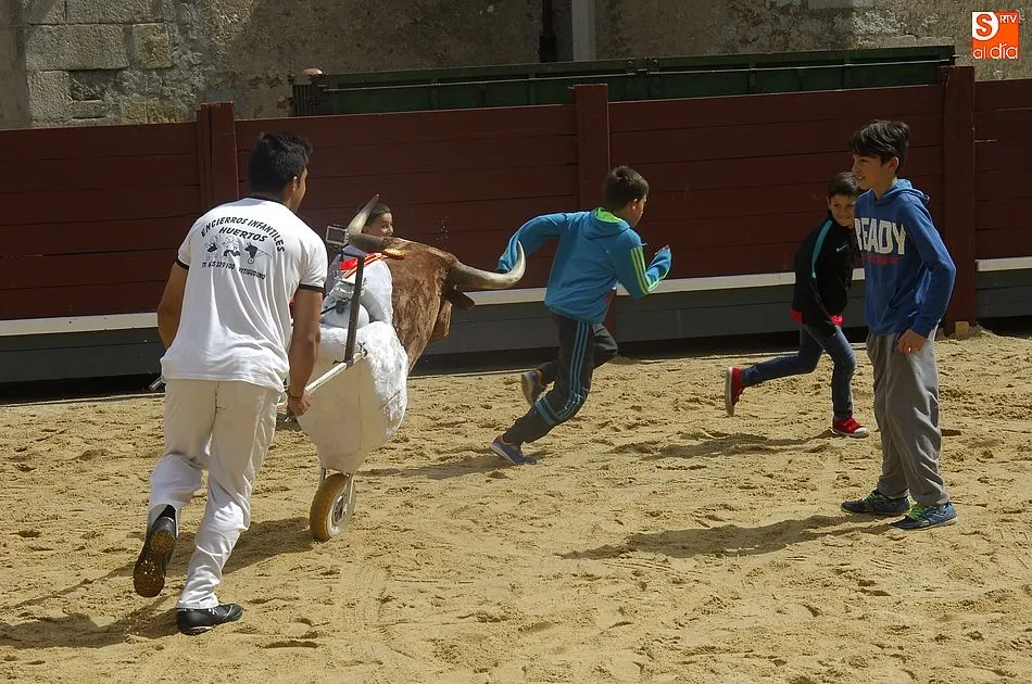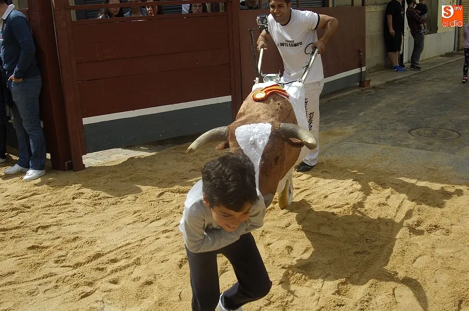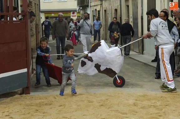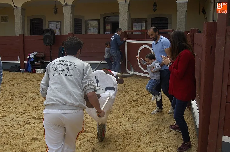 En la actividad participaron un nutrido grupo de niños, que alcanzaron corriendo el coso taurino montado en la Plaza Mayor de la localidad (donde ya se había echado la arena). Allí tuvieron la oportunidad de seguir enfrentándose a los astados con variados recortes. En la mañana del sábado, tendrán un segundo encierro de carretones, de nuevo a las 11.30 horas.