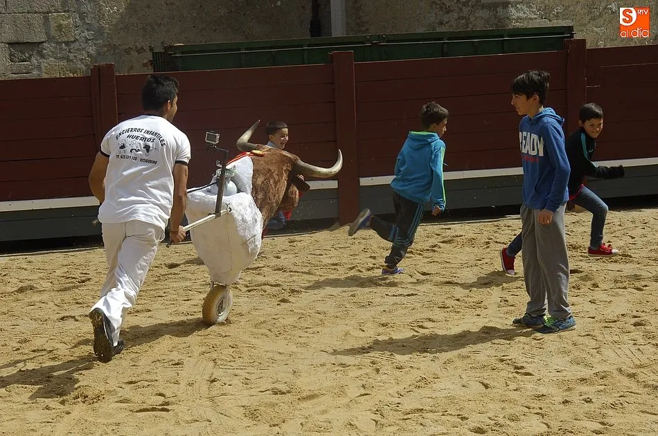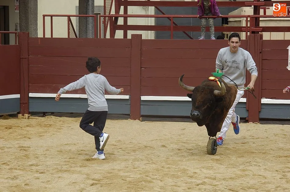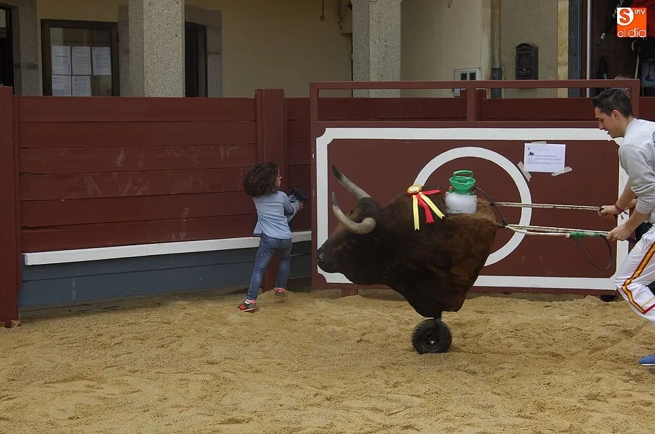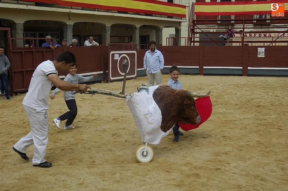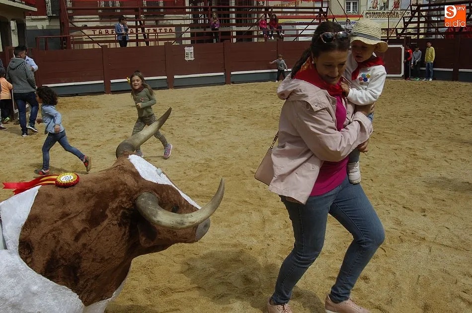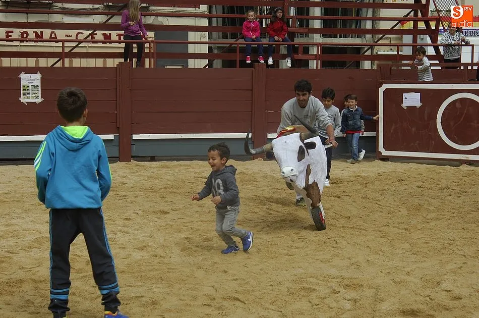 En la actividad participaron un nutrido grupo de niños, que alcanzaron corriendo el coso taurino montado en la Plaza Mayor de la localidad (donde ya se había echado la arena). Allí tuvieron la oportunidad de seguir enfrentándose a los astados con variados recortes. En la mañana del sábado, tendrán un segundo encierro de carretones, de nuevo a las 11.30 horas.