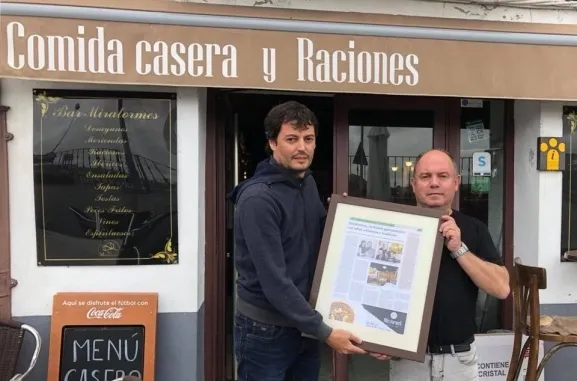 Hoy mi reconocimiento para Román y el Miratormes lo tiene su hijo Pedro. Un cuadro con el reportaje, para que todo aquel que acuda al Miratormes recuerde la figura de Román y todo lo que hizo por la hostelería, la gastronomía y la fiesta albense (Caballo Rojo, Colores, Discoteca Parche).