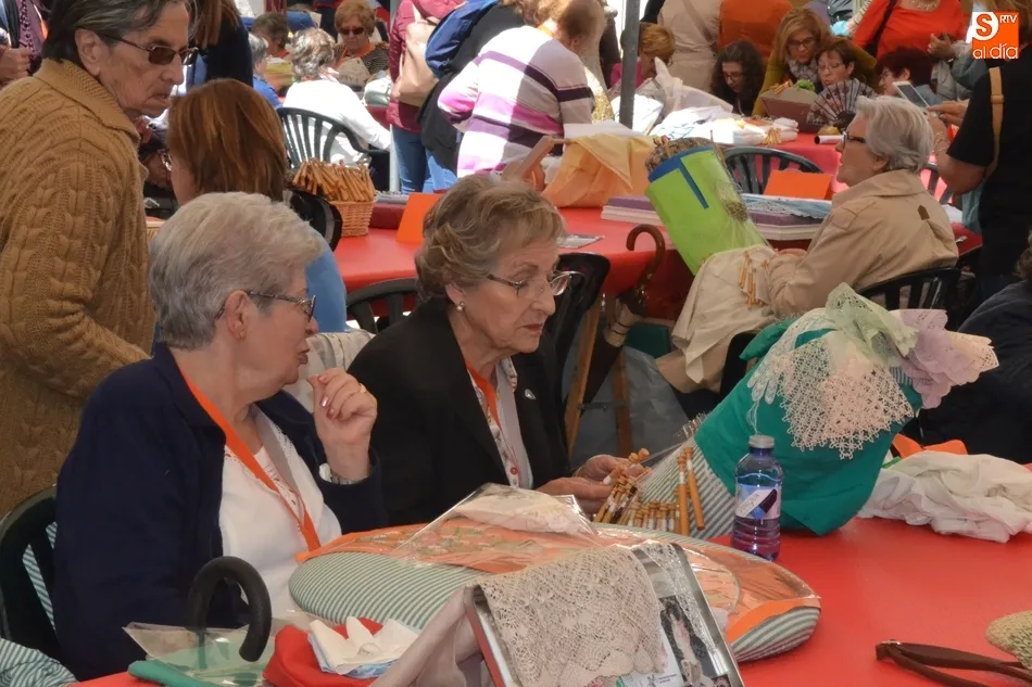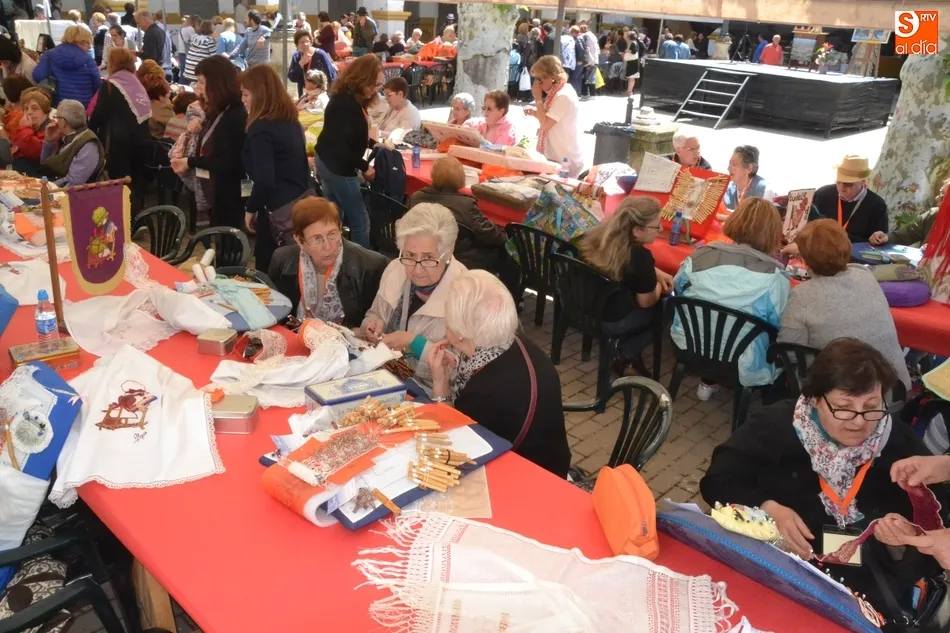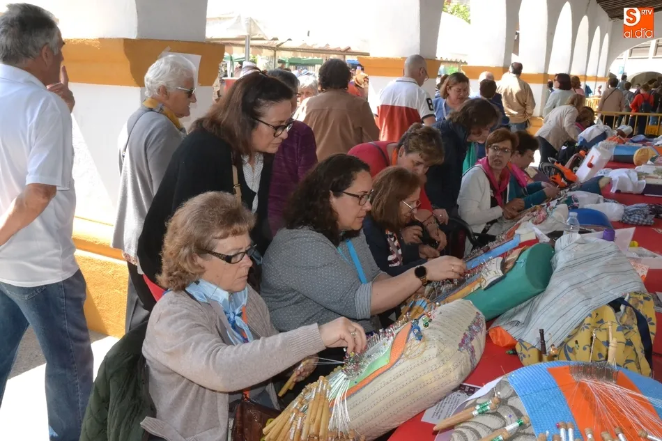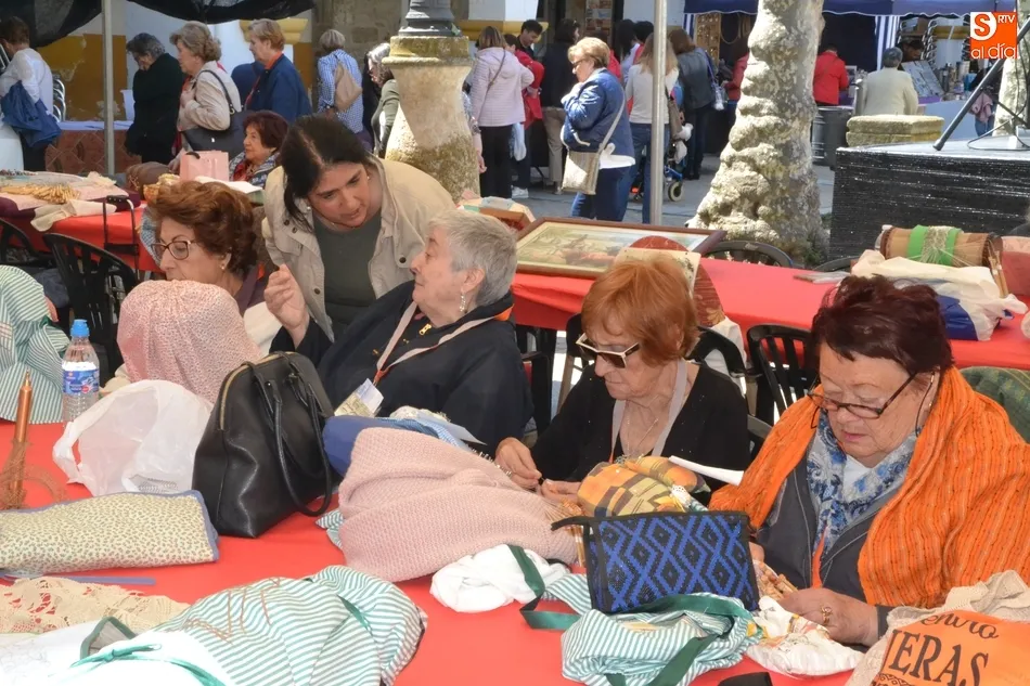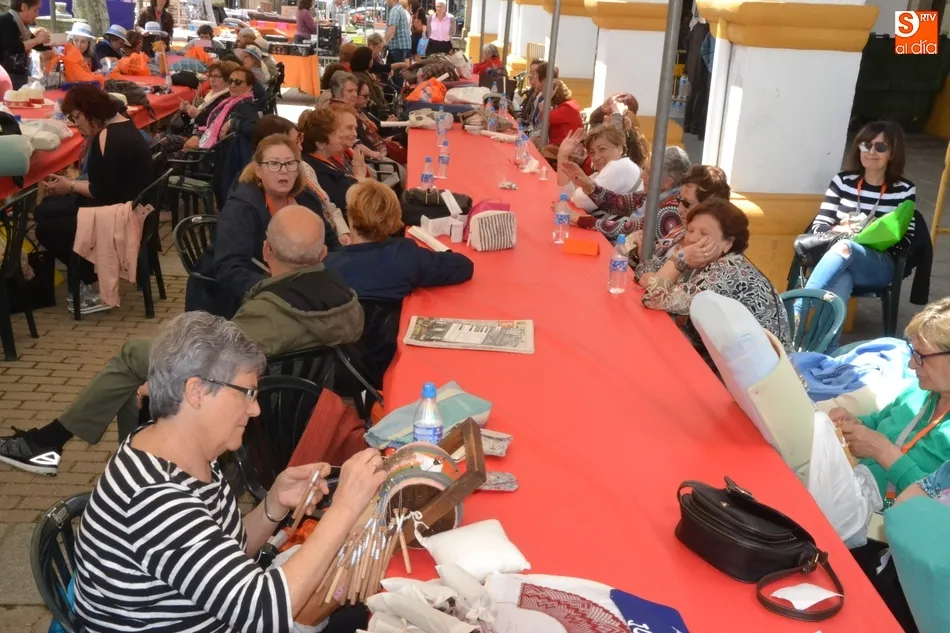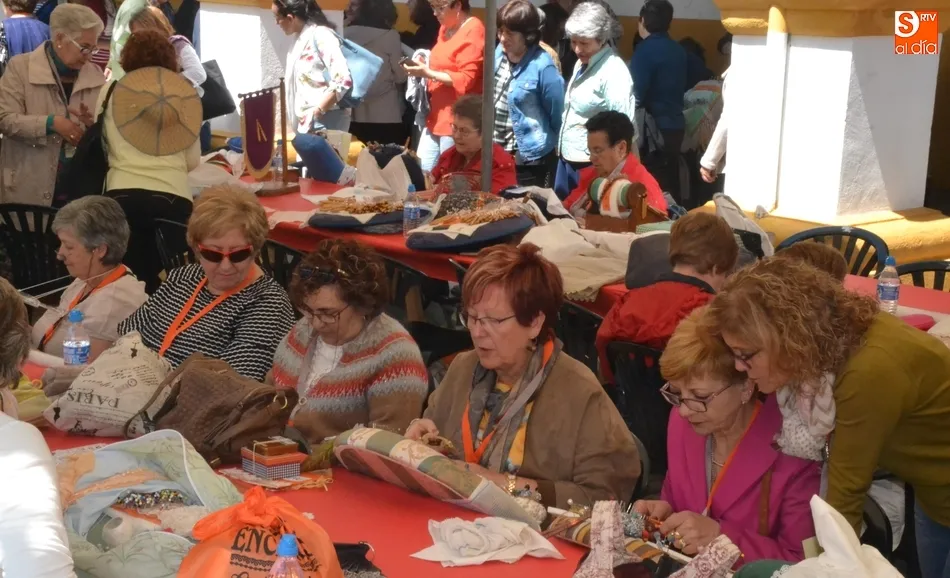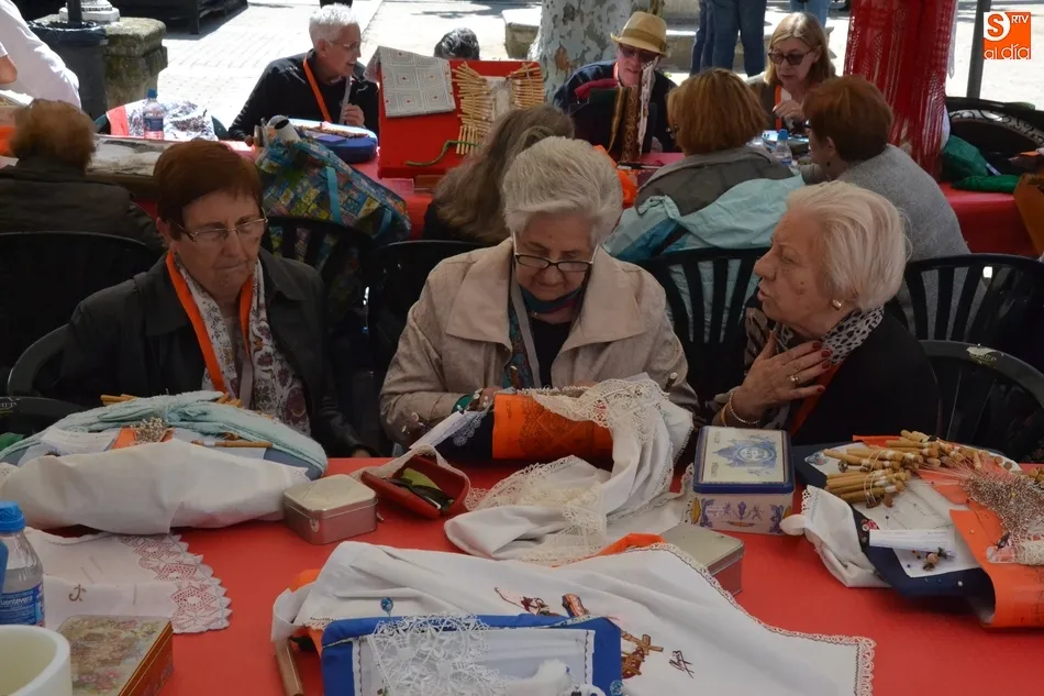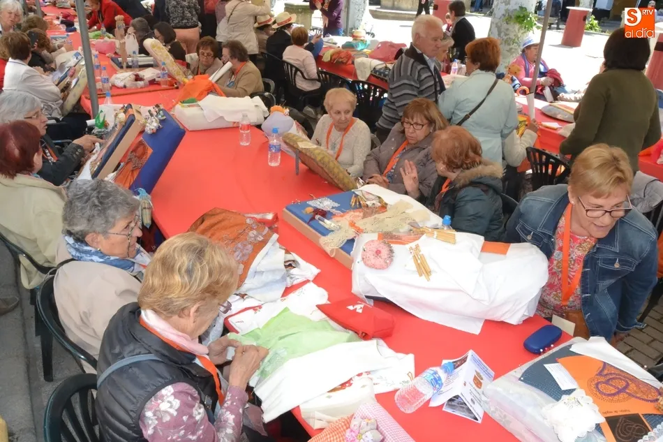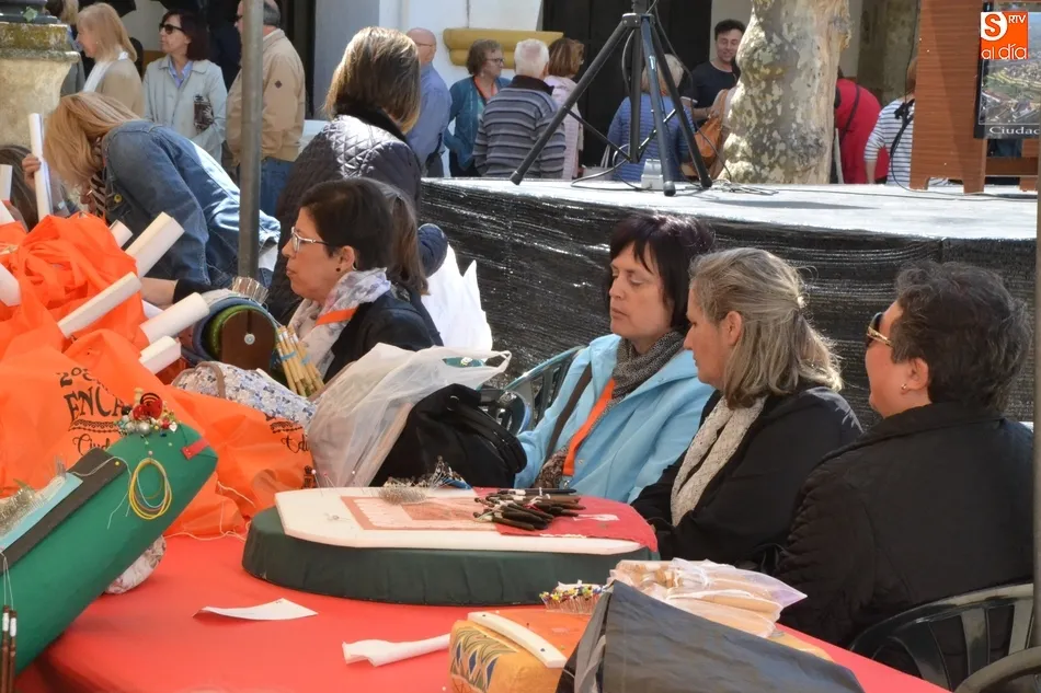 El Encuentro de Encajeras revalida su éxito con gran ambiente y José Pinto como invitado estelar   | Imagen 2Concluido el largo sorteo, los asistentes al Encuentro guardaron las labores que habían estado haciendo (aquellos que habían estado trabajando, ya que hubo personas que no las sacaron de las bolsas ya que se tomaron la mañana más libre, disfrutando por ejemplo de una visita guiada a Ciudad Rodrigo). Al mismo tiempo que las encajeras recogían, también lo hacían la mayor parte de la decena de puestos de productos relacionados con los bolillos que habían estado vendiendo en la Plazuela.