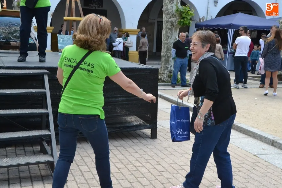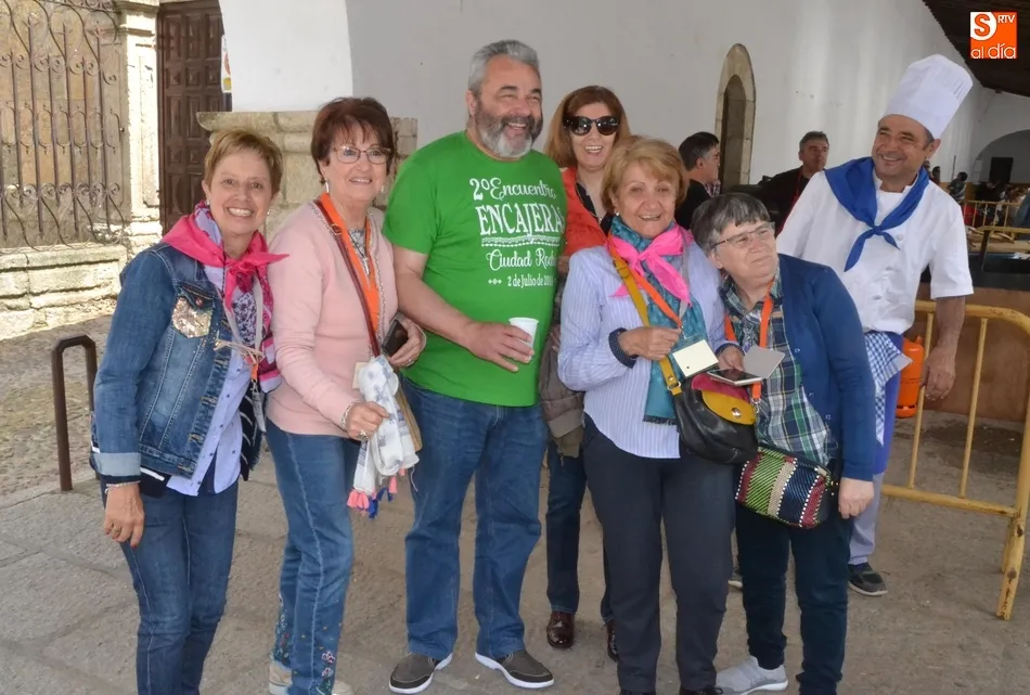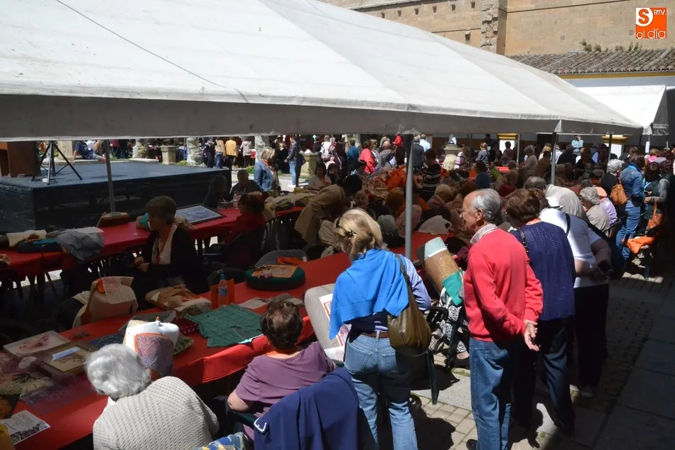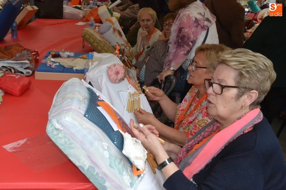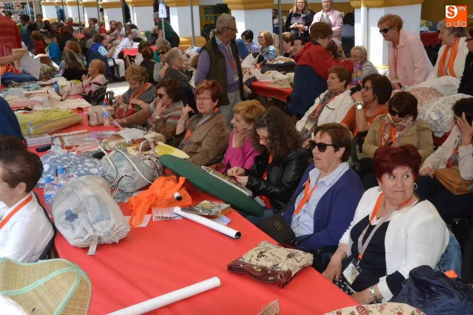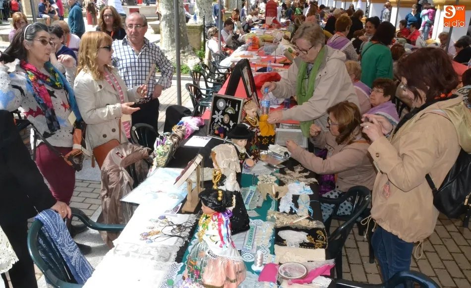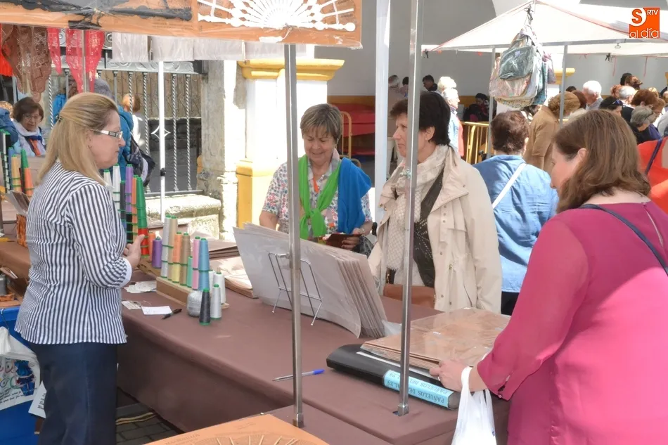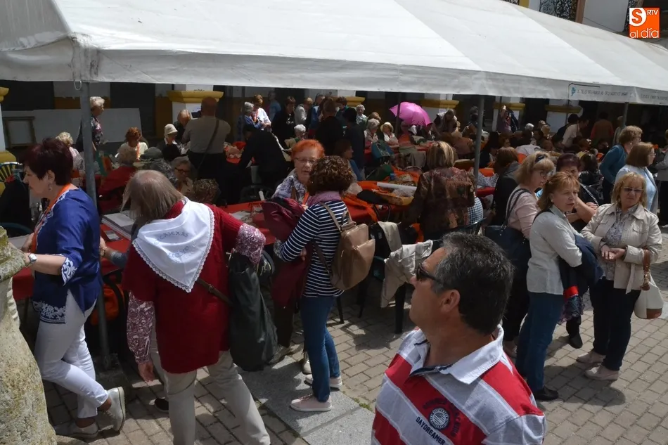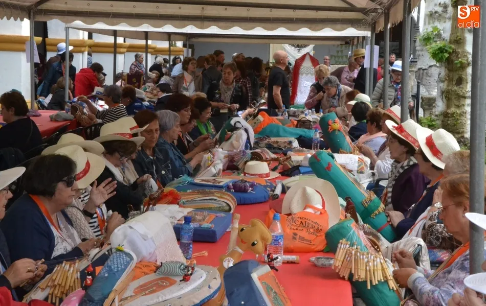 El Encuentro de Encajeras revalida su éxito con gran ambiente y José Pinto como invitado estelar   | Imagen 2Concluido el largo sorteo, los asistentes al Encuentro guardaron las labores que habían estado haciendo (aquellos que habían estado trabajando, ya que hubo personas que no las sacaron de las bolsas ya que se tomaron la mañana más libre, disfrutando por ejemplo de una visita guiada a Ciudad Rodrigo). Al mismo tiempo que las encajeras recogían, también lo hacían la mayor parte de la decena de puestos de productos relacionados con los bolillos que habían estado vendiendo en la Plazuela.