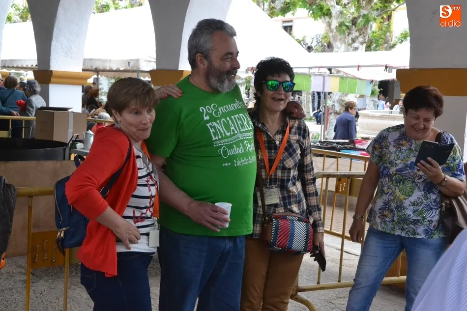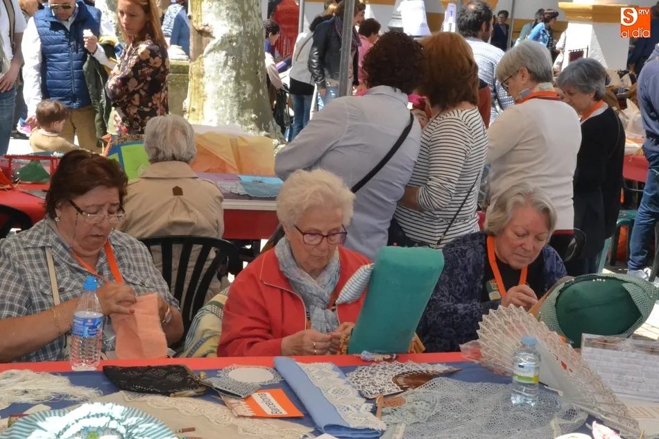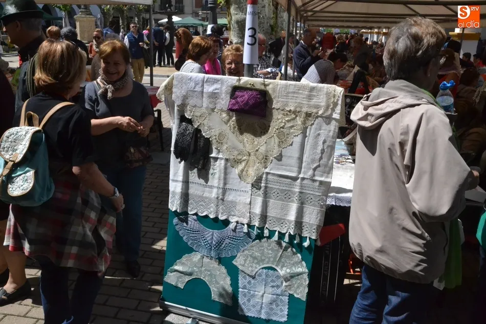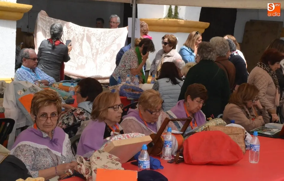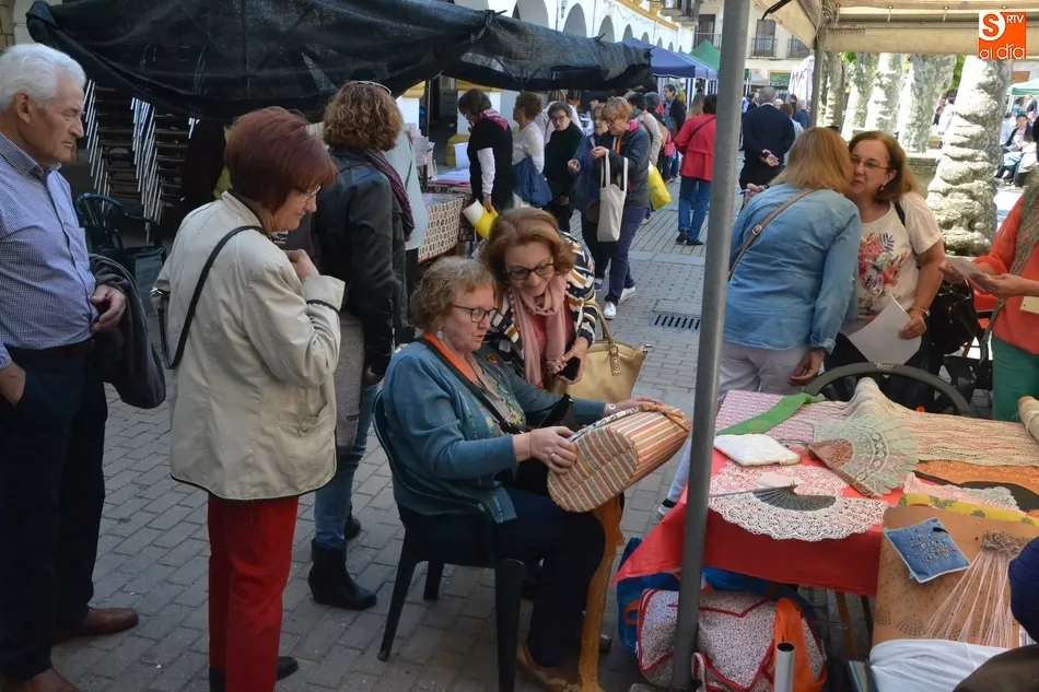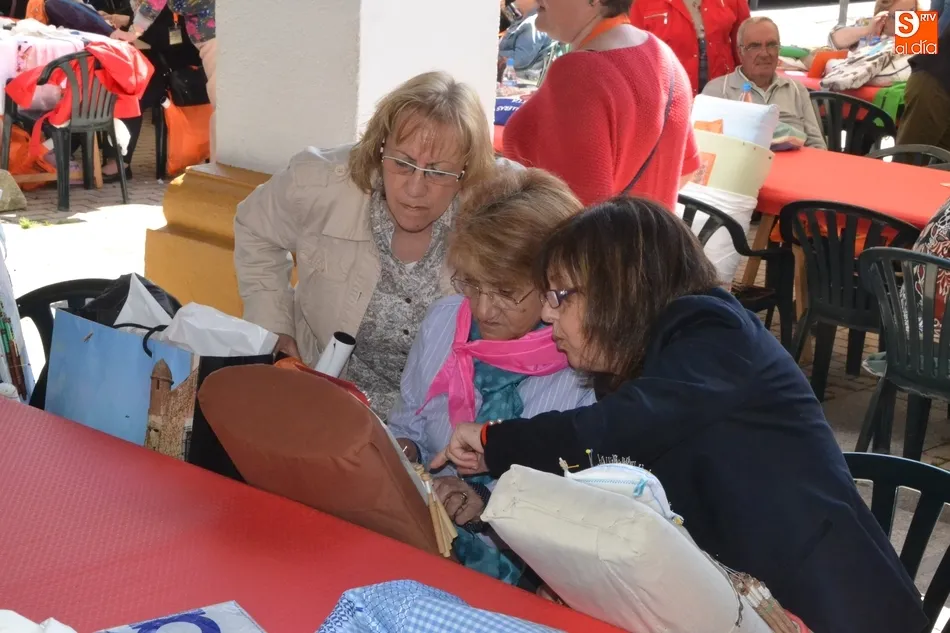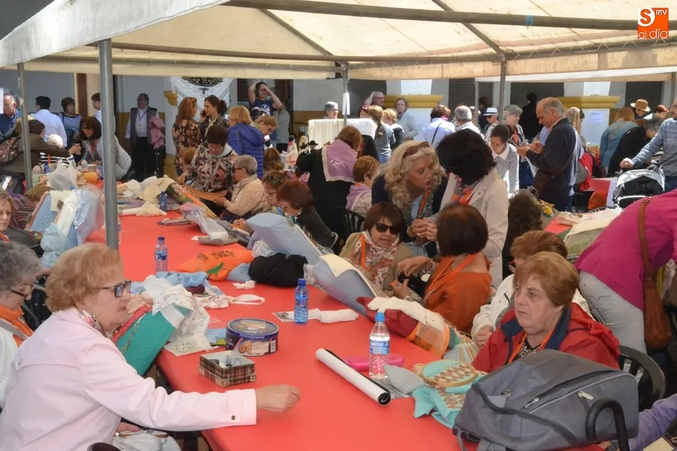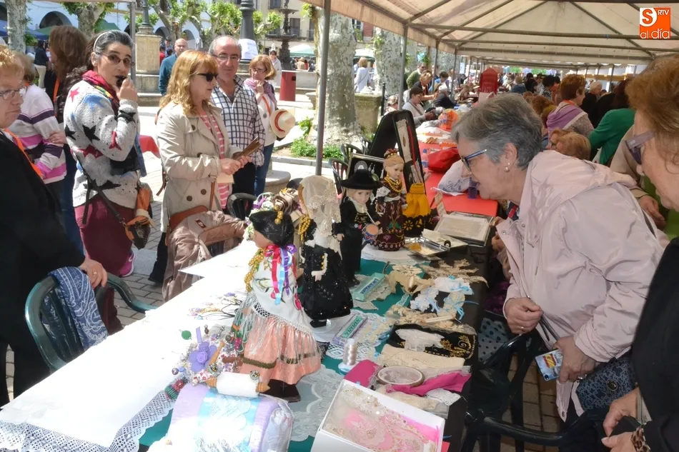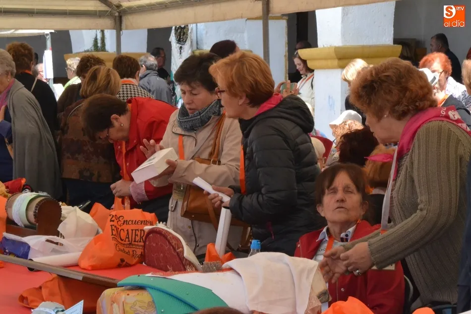 El Encuentro de Encajeras revalida su éxito con gran ambiente y José Pinto como invitado estelar   | Imagen 2Concluido el largo sorteo, los asistentes al Encuentro guardaron las labores que habían estado haciendo (aquellos que habían estado trabajando, ya que hubo personas que no las sacaron de las bolsas ya que se tomaron la mañana más libre, disfrutando por ejemplo de una visita guiada a Ciudad Rodrigo). Al mismo tiempo que las encajeras recogían, también lo hacían la mayor parte de la decena de puestos de productos relacionados con los bolillos que habían estado vendiendo en la Plazuela.