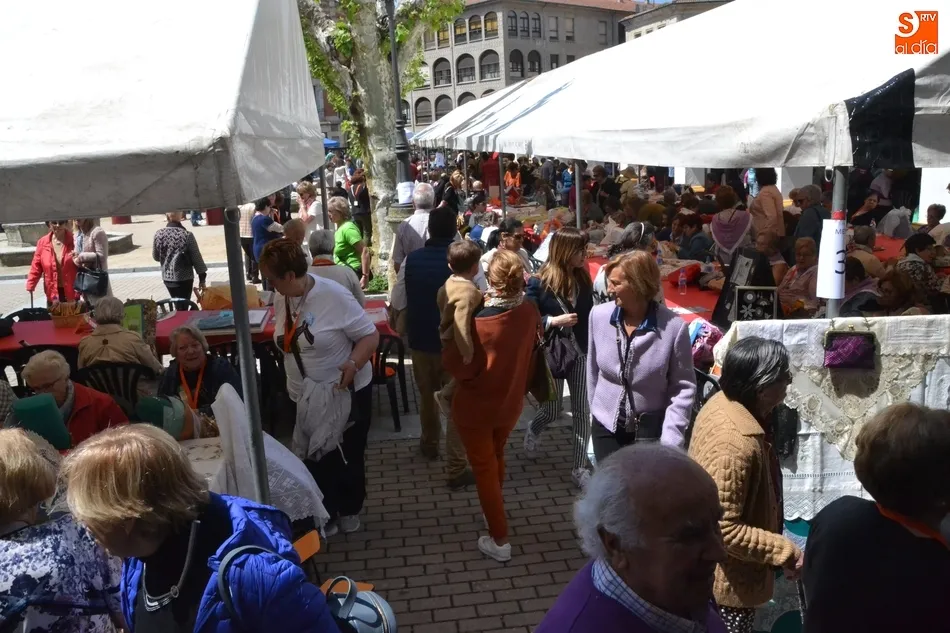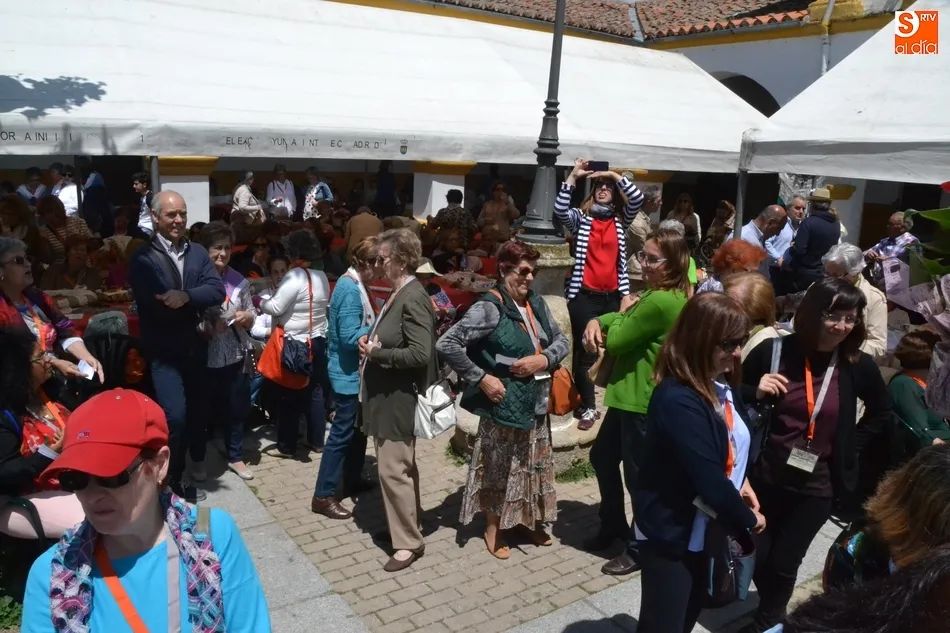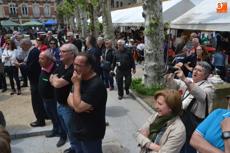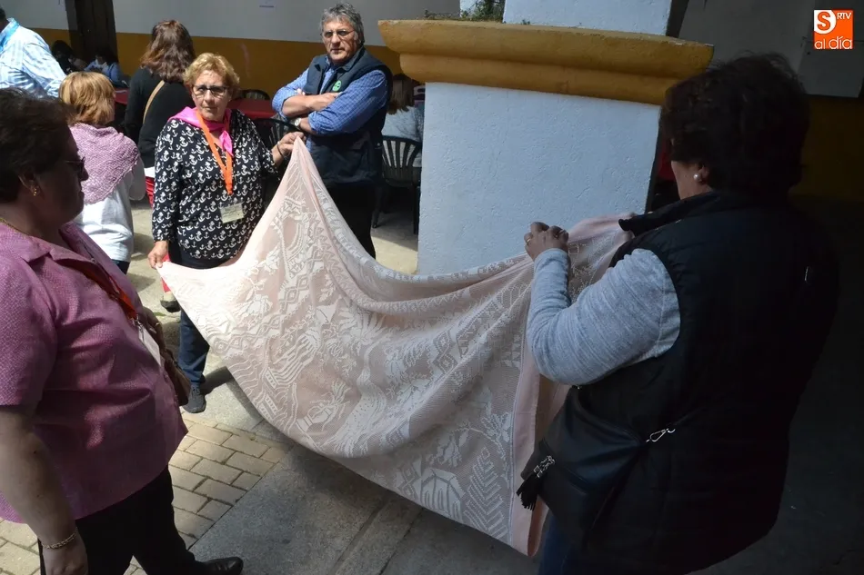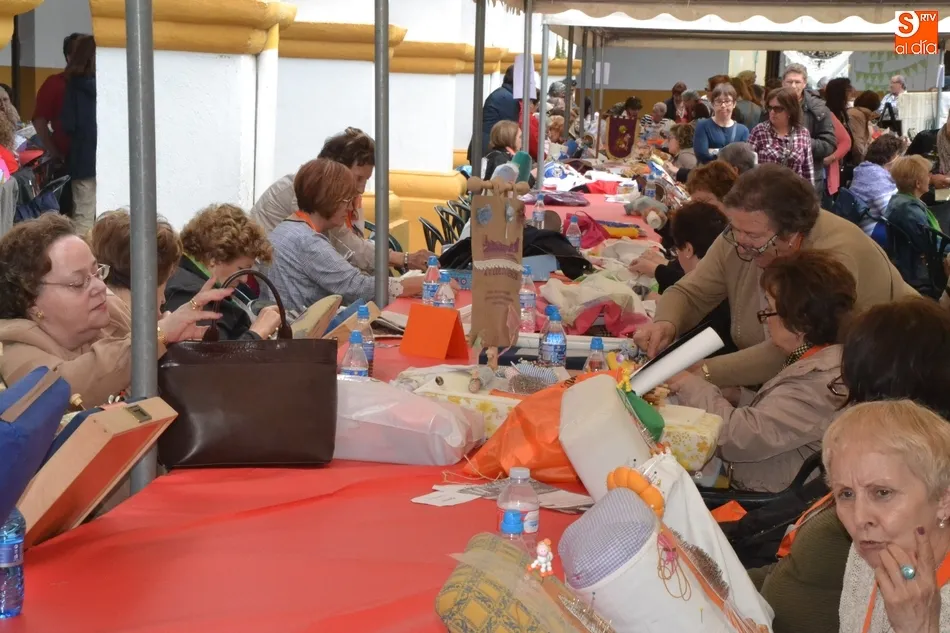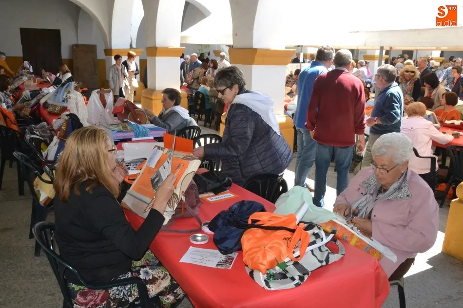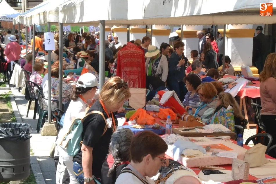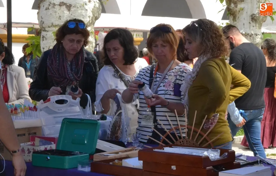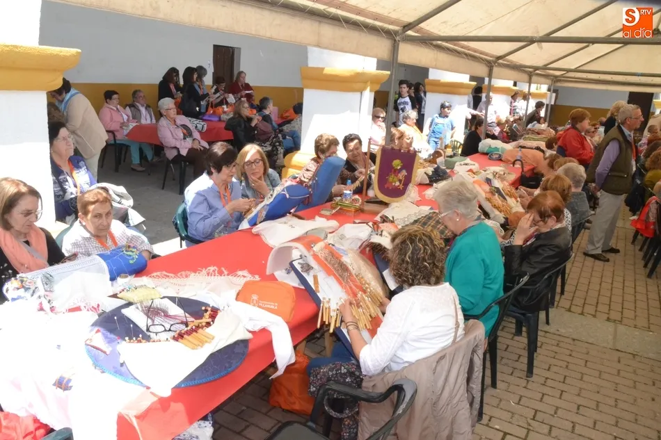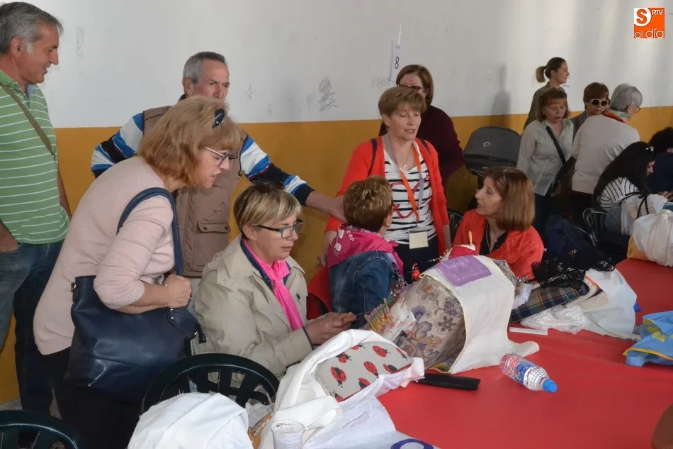 El Encuentro de Encajeras revalida su éxito con gran ambiente y José Pinto como invitado estelar   | Imagen 2Concluido el largo sorteo, los asistentes al Encuentro guardaron las labores que habían estado haciendo (aquellos que habían estado trabajando, ya que hubo personas que no las sacaron de las bolsas ya que se tomaron la mañana más libre, disfrutando por ejemplo de una visita guiada a Ciudad Rodrigo). Al mismo tiempo que las encajeras recogían, también lo hacían la mayor parte de la decena de puestos de productos relacionados con los bolillos que habían estado vendiendo en la Plazuela.