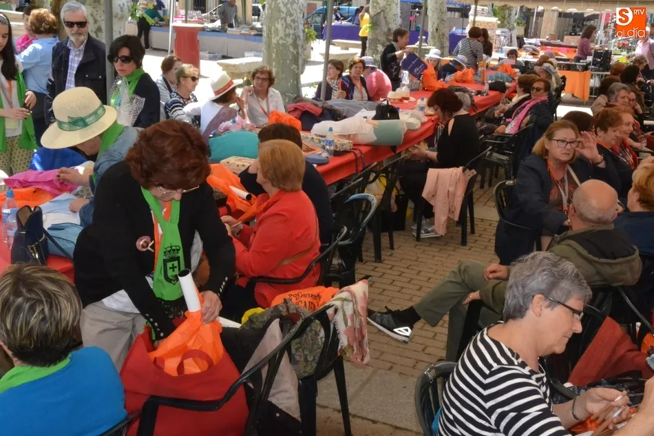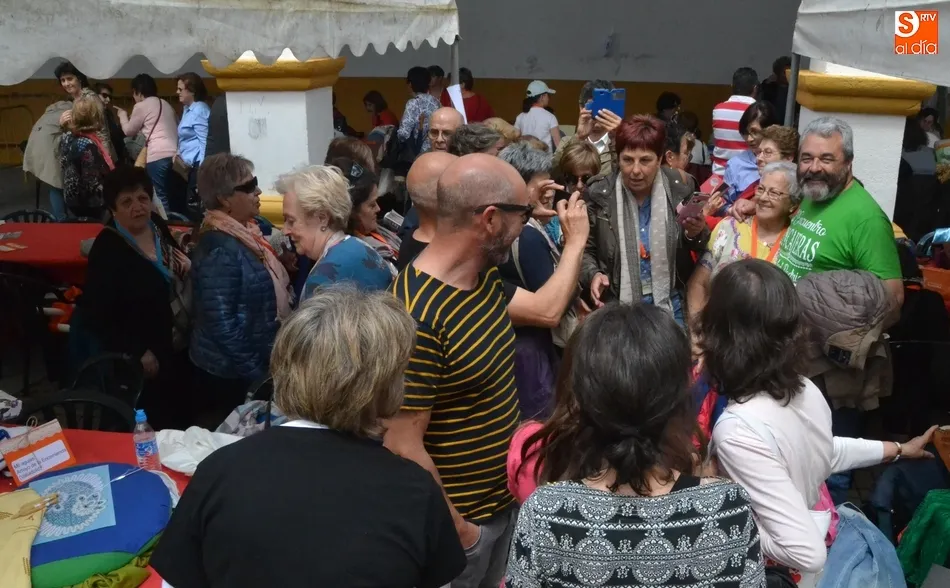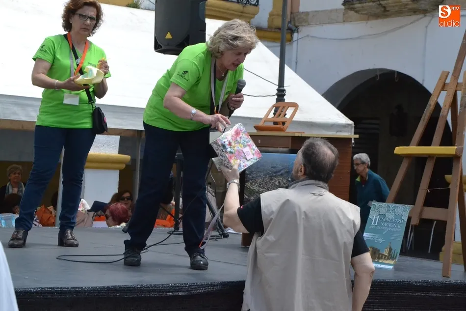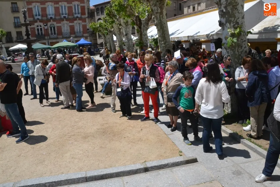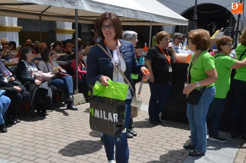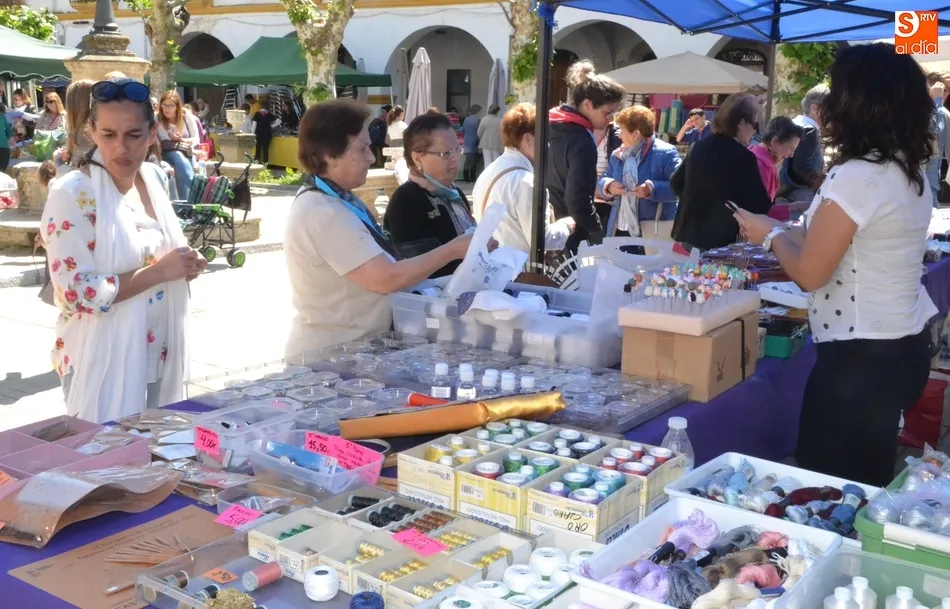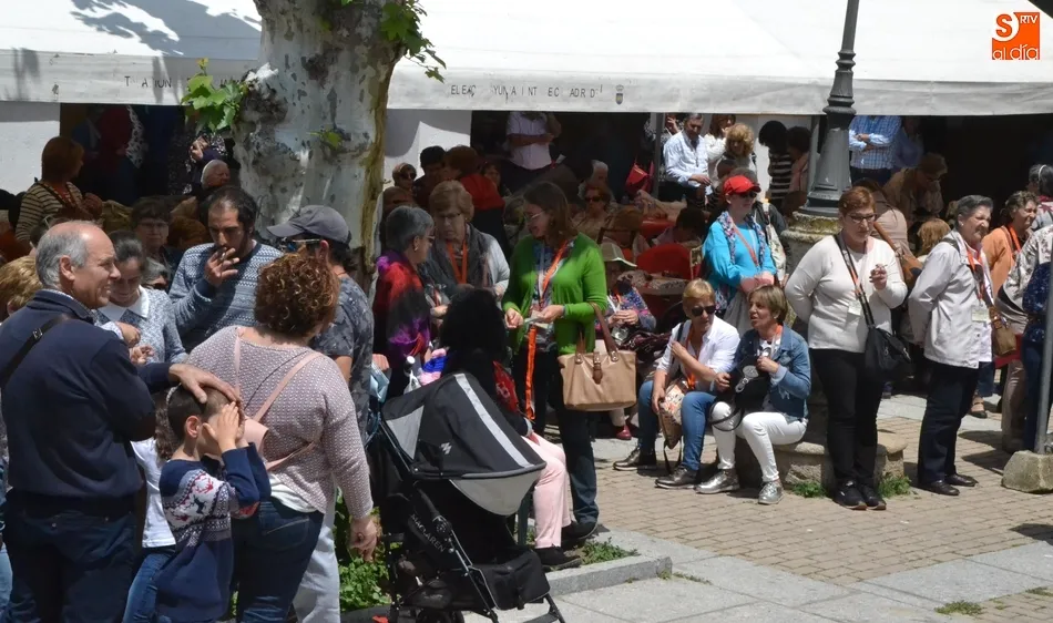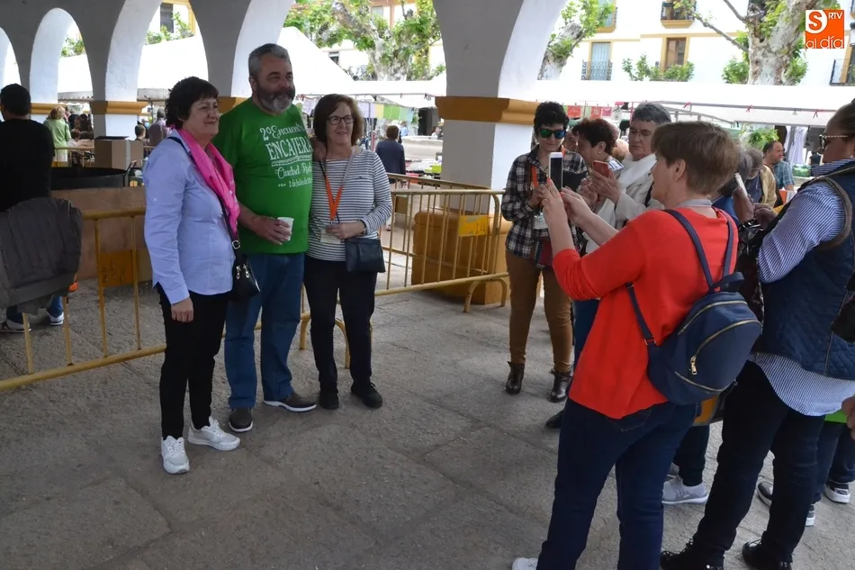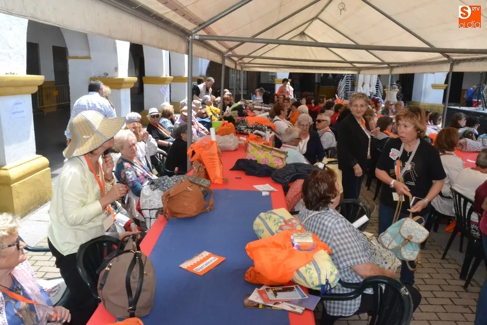 El Encuentro de Encajeras revalida su éxito con gran ambiente y José Pinto como invitado estelar   | Imagen 2Concluido el largo sorteo, los asistentes al Encuentro guardaron las labores que habían estado haciendo (aquellos que habían estado trabajando, ya que hubo personas que no las sacaron de las bolsas ya que se tomaron la mañana más libre, disfrutando por ejemplo de una visita guiada a Ciudad Rodrigo). Al mismo tiempo que las encajeras recogían, también lo hacían la mayor parte de la decena de puestos de productos relacionados con los bolillos que habían estado vendiendo en la Plazuela.