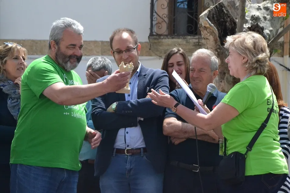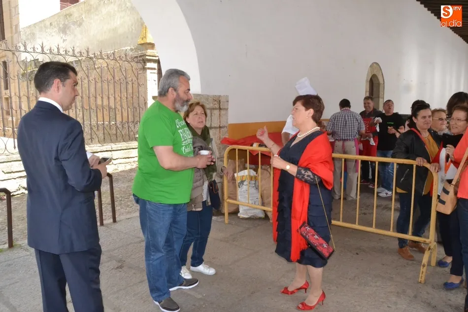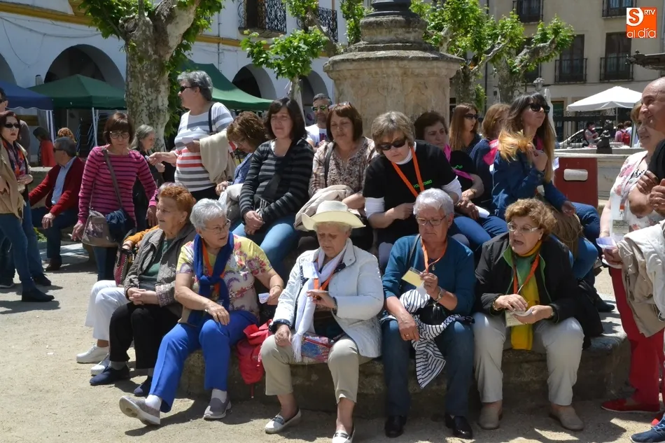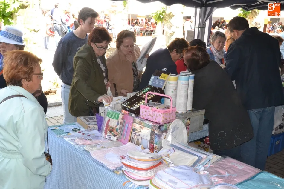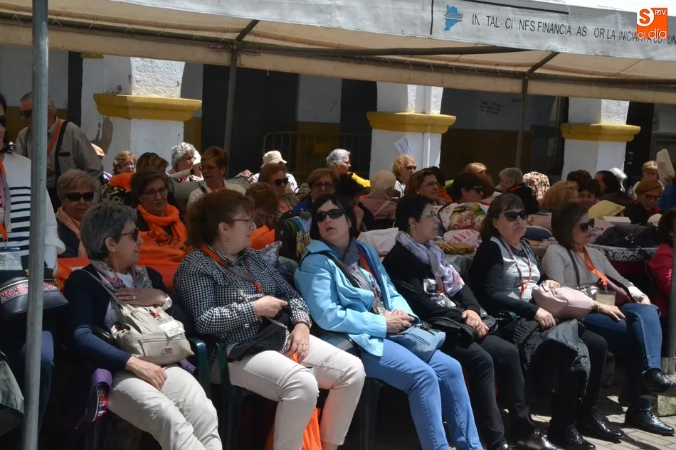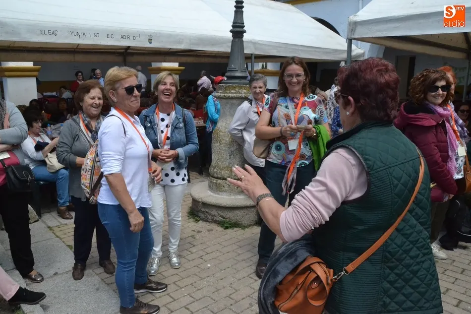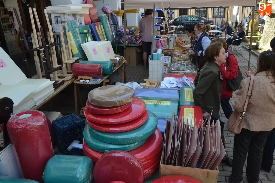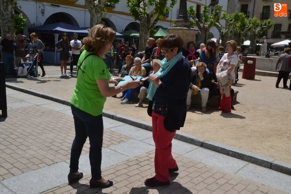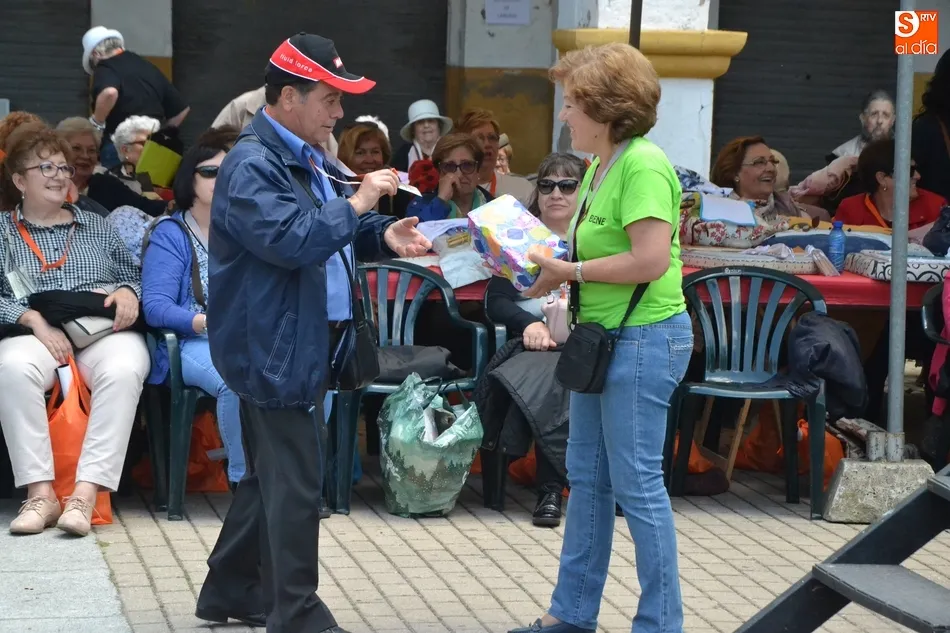El Encuentro de Encajeras revalida su éxito con gran ambiente y José Pinto como invitado estelar   | Imagen 2Concluido el largo sorteo, los asistentes al Encuentro guardaron las labores que habían estado haciendo (aquellos que habían estado trabajando, ya que hubo personas que no las sacaron de las bolsas ya que se tomaron la mañana más libre, disfrutando por ejemplo de una visita guiada a Ciudad Rodrigo). Al mismo tiempo que las encajeras recogían, también lo hacían la mayor parte de la decena de puestos de productos relacionados con los bolillos que habían estado vendiendo en la Plazuela.