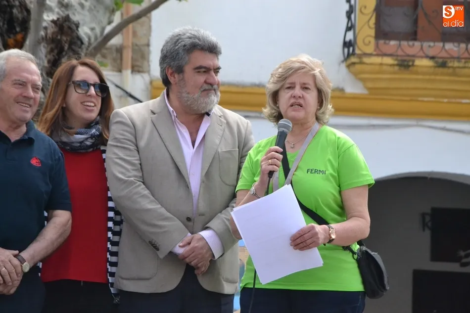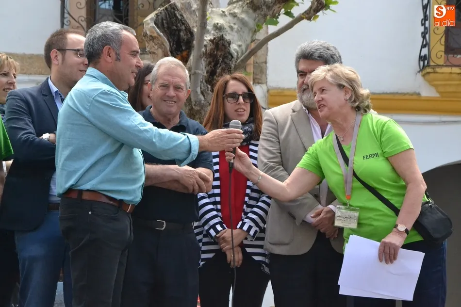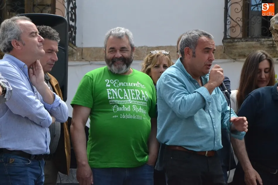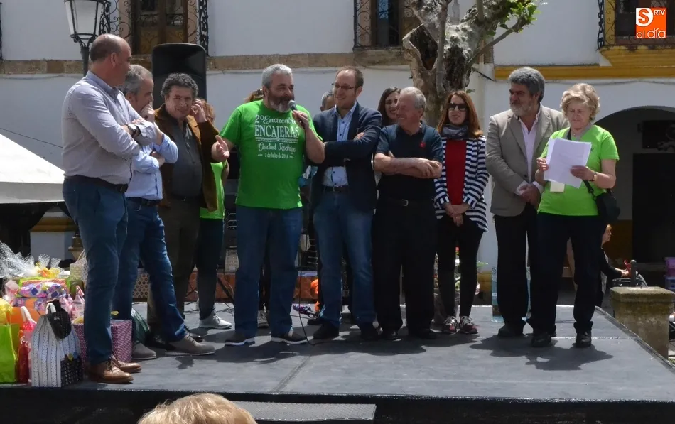 El nombramiento de José Pinto tuvo lugar al mismo tiempo que subieron al escenario los miembros de la Corporación Municipal, así como el presidente del Centro de Iniciativas Turísticas, Eugenio Bernal, quién tomó la palabra al igual que el alcalde Juan Tomás Muñoz y el segundo teniente de alcalde Joaquín Pellicer, alabando el esfuerzo que habían hecho las encajeras mirobrigenses para sacar adelante el evento.