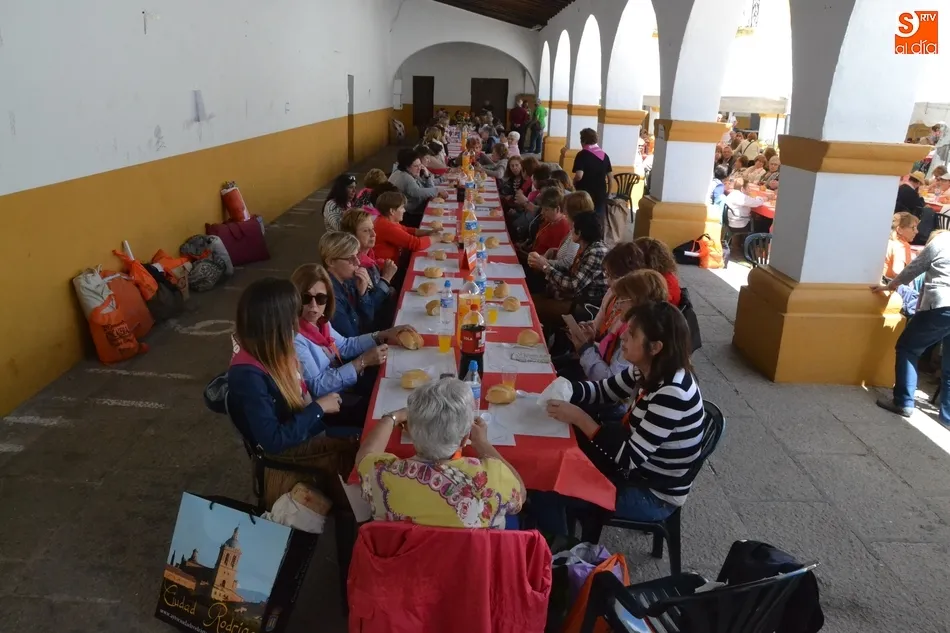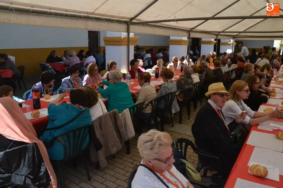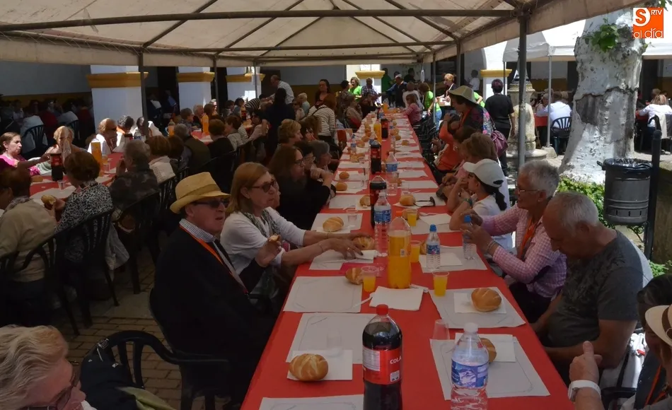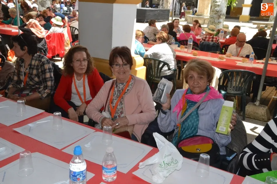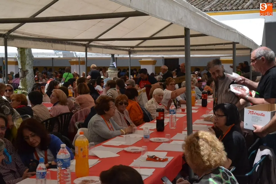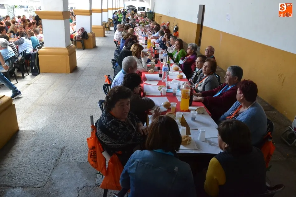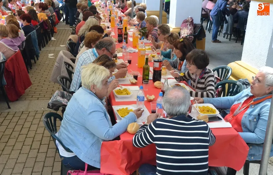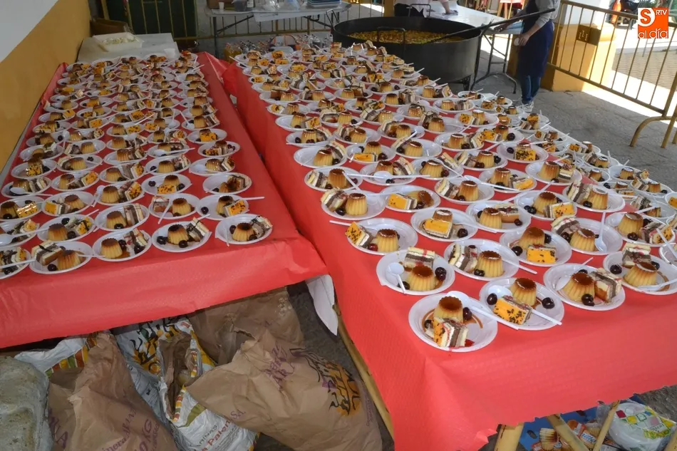 El colofón del Encuentro fue este año una gran comida de confraternización a base de paella preparada en los soportales de la Plazuela por el chef José Luis Benito y su equipo, que vino precedida de un pequeño aperitivo de embutido. Todo lo necesario para la comida, incluidos los propios platos de paella fueron repartidos por el equipo del chef, por las promotoras del Encuentro y por el grupo de voluntarios con el que han contado.