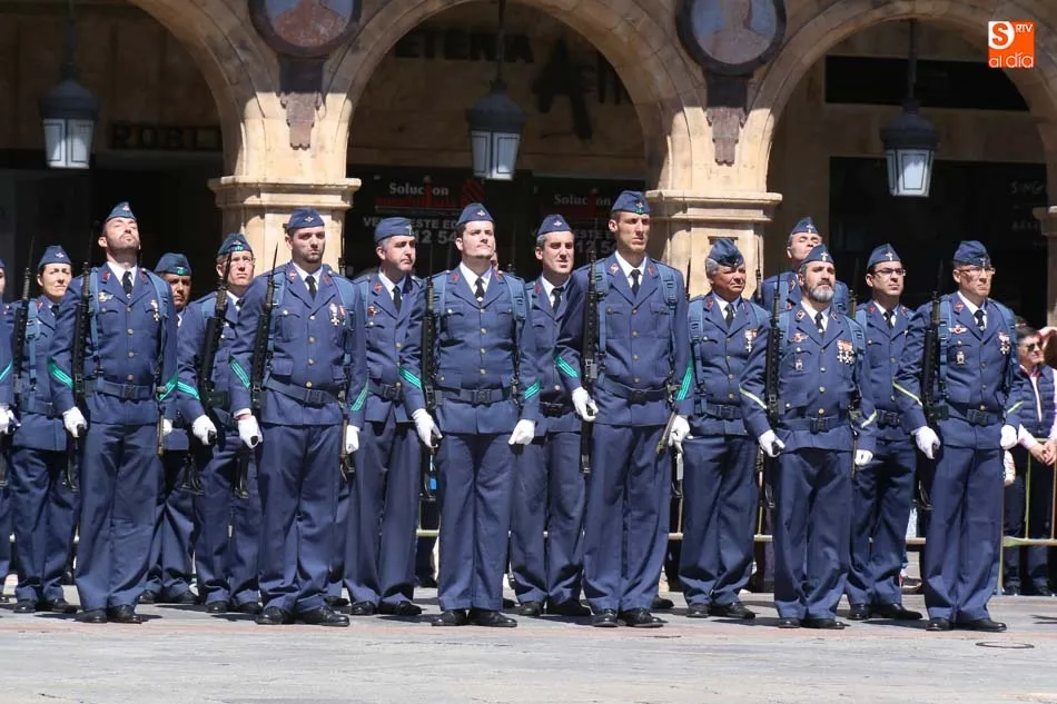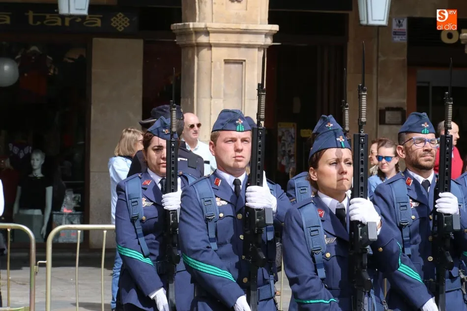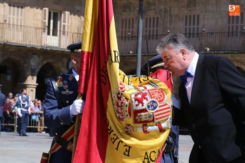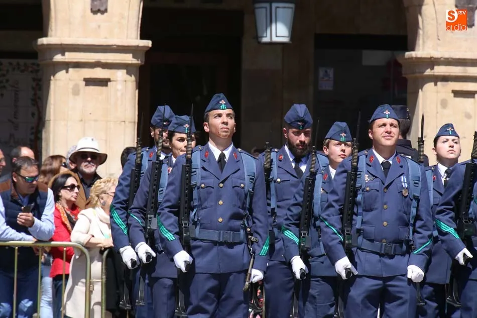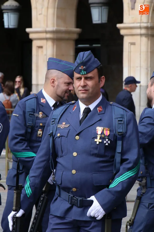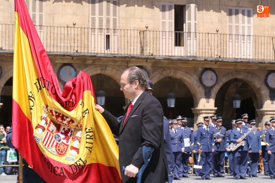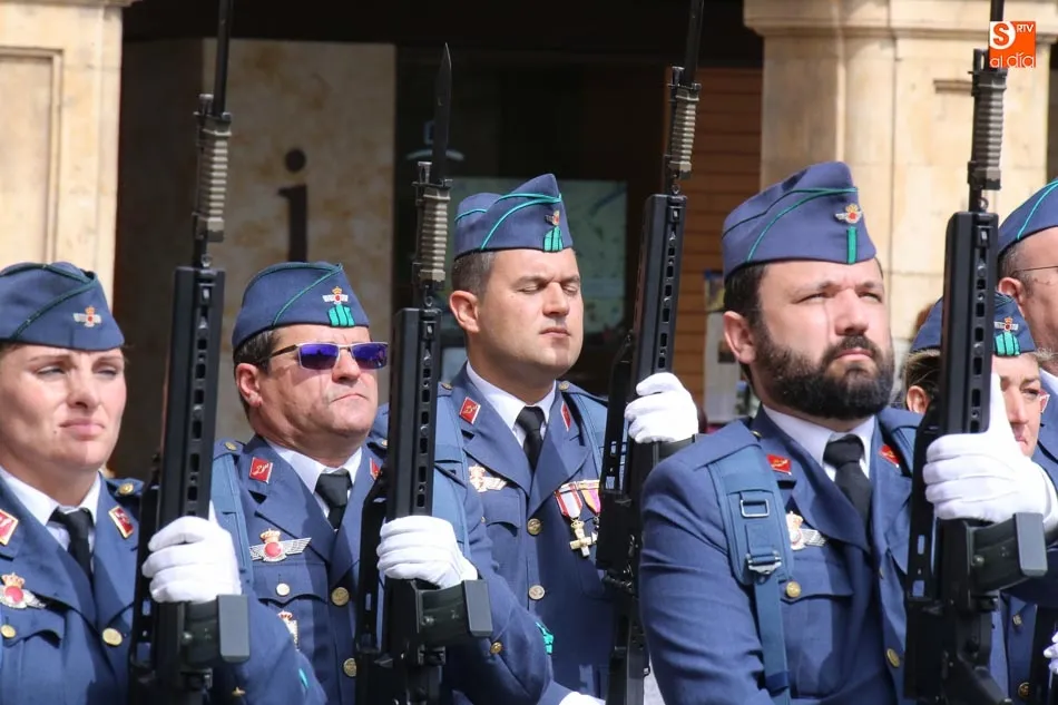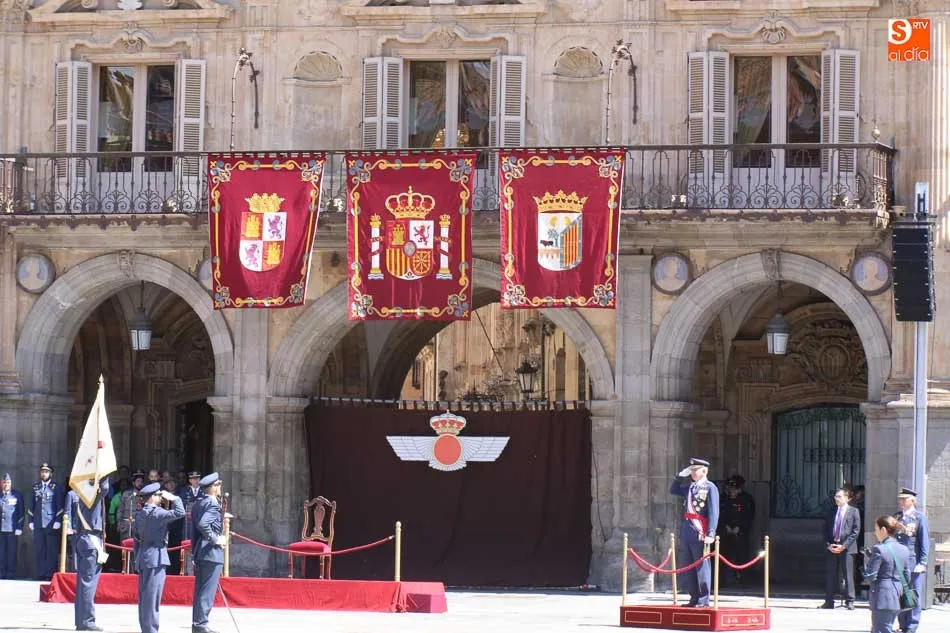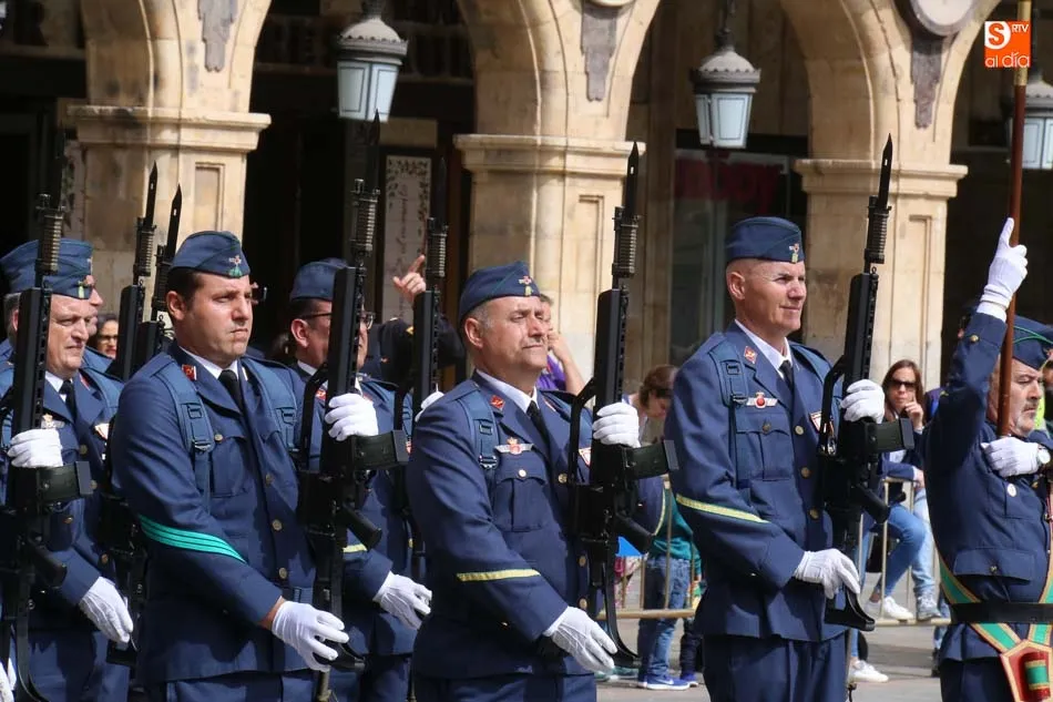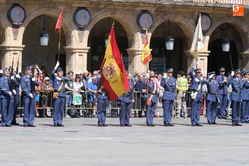 Durante la mañana de hoy, la Plaza Mayor de Salamanca acogió un Acto de Juramento o Promesa ante la Bandera de España, organizado por la Base Área de Matacán en colaboración con el Ayuntamiento de Salamanca.