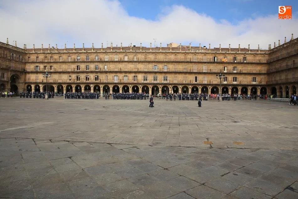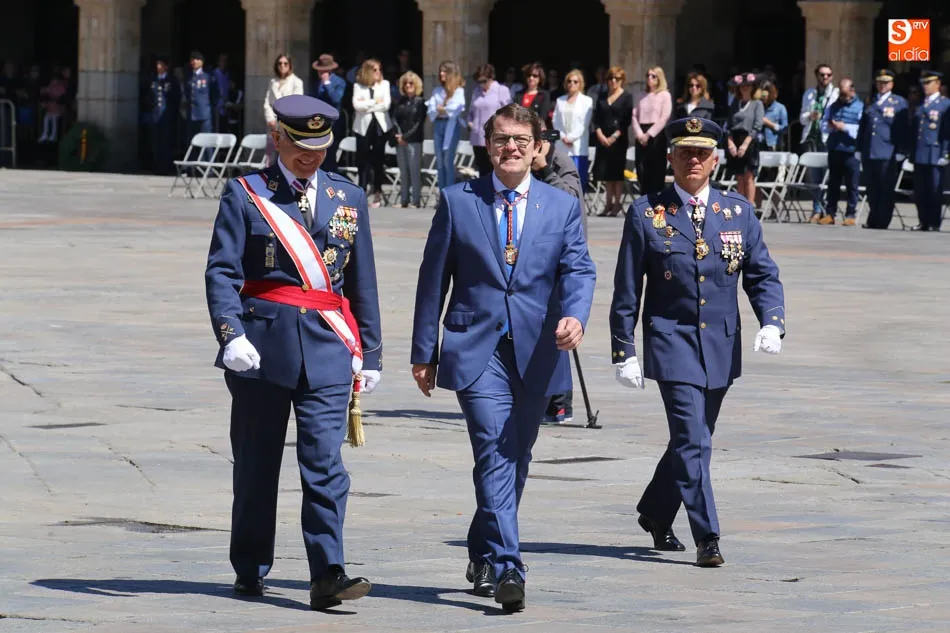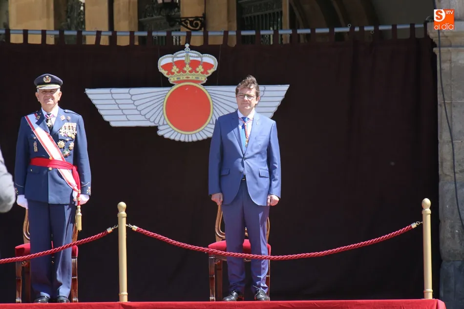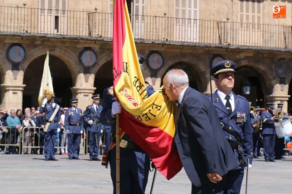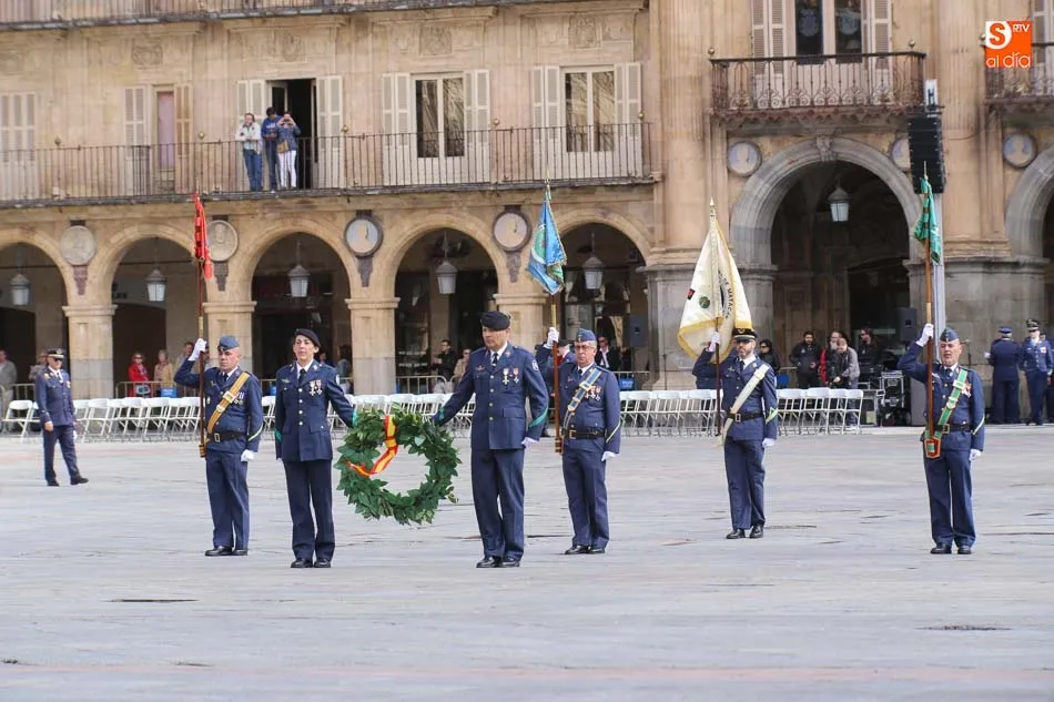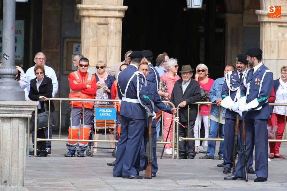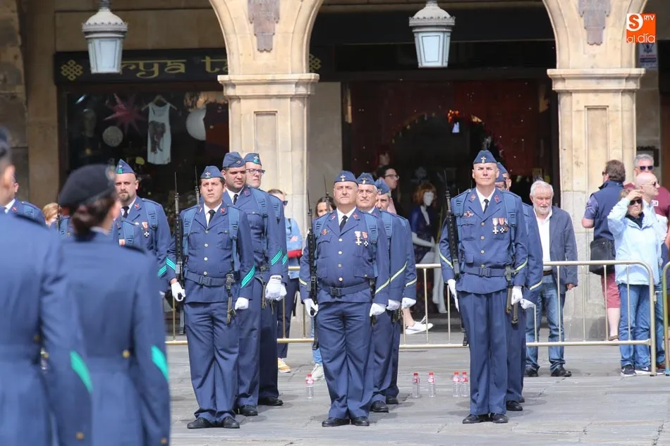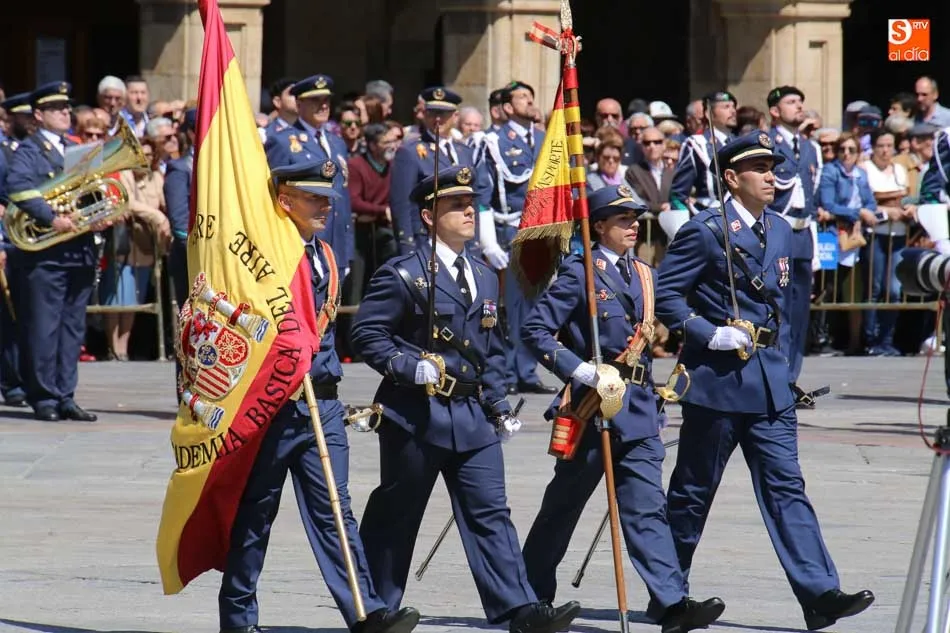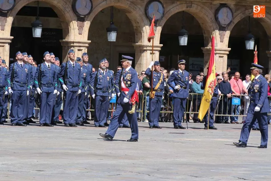 Durante la mañana de hoy, la Plaza Mayor de Salamanca acogió un Acto de Juramento o Promesa ante la Bandera de España, organizado por la Base Área de Matacán en colaboración con el Ayuntamiento de Salamanca.