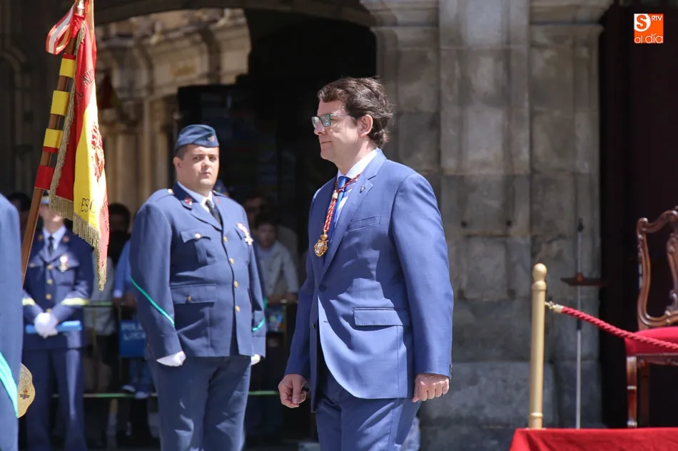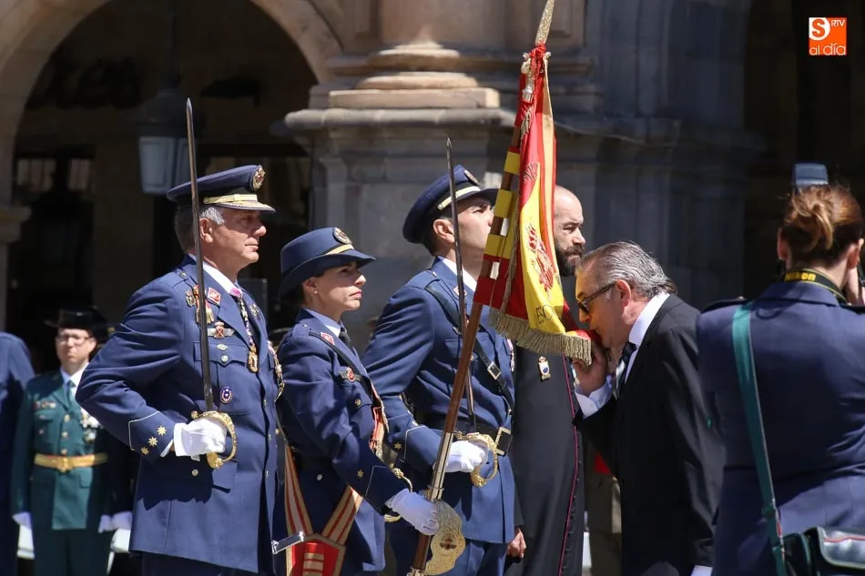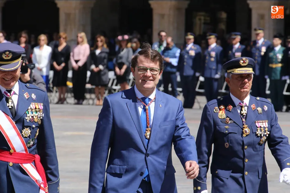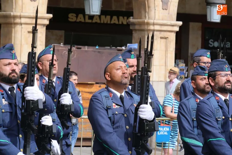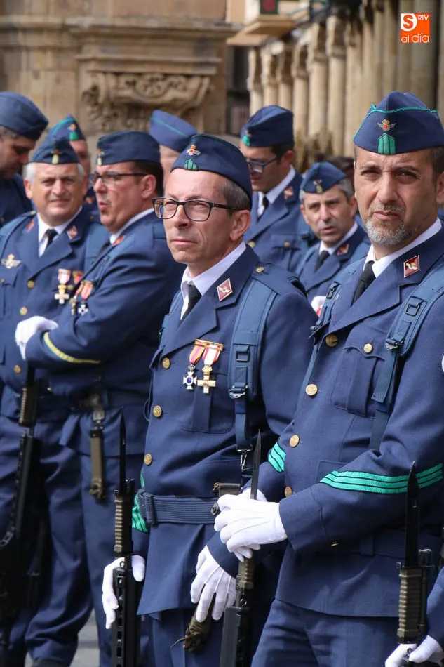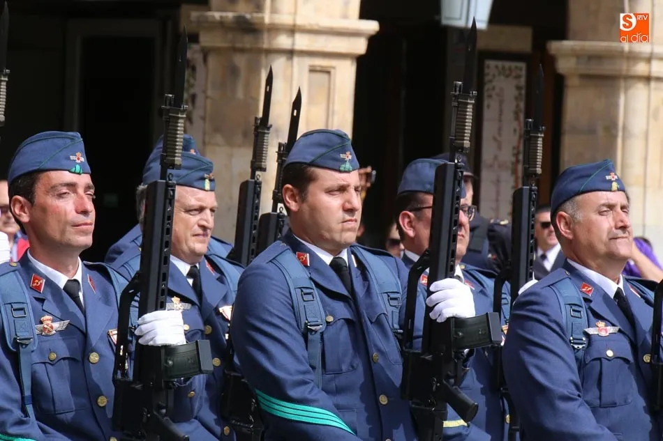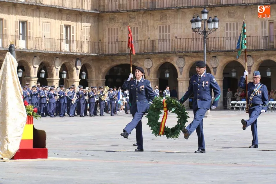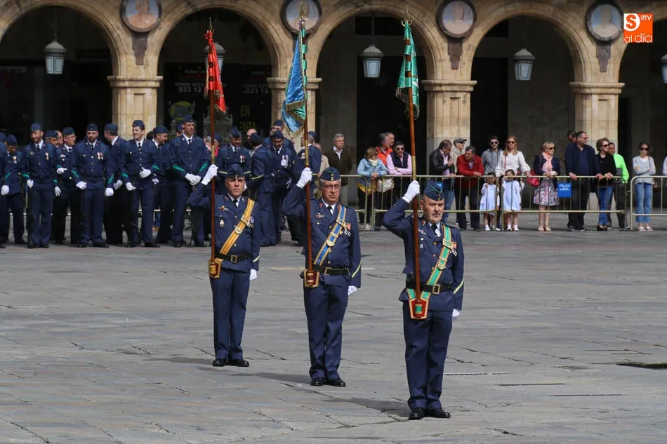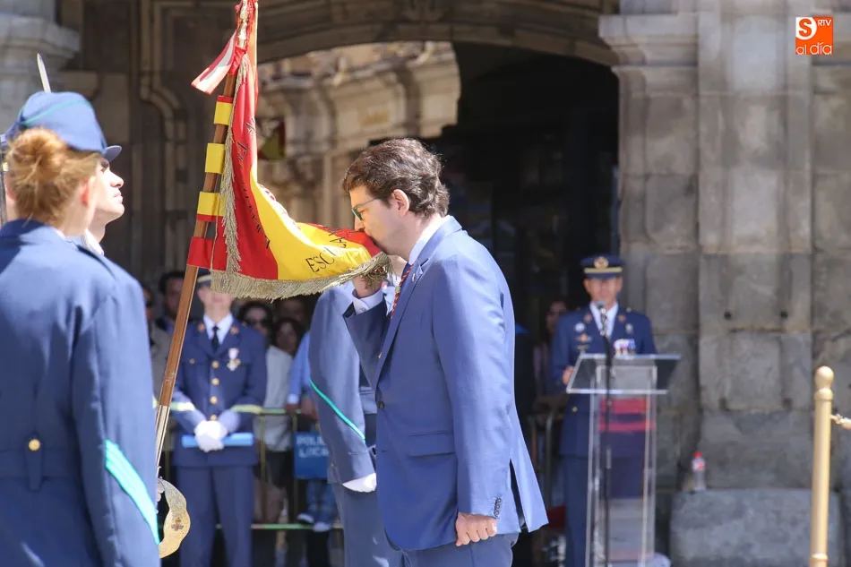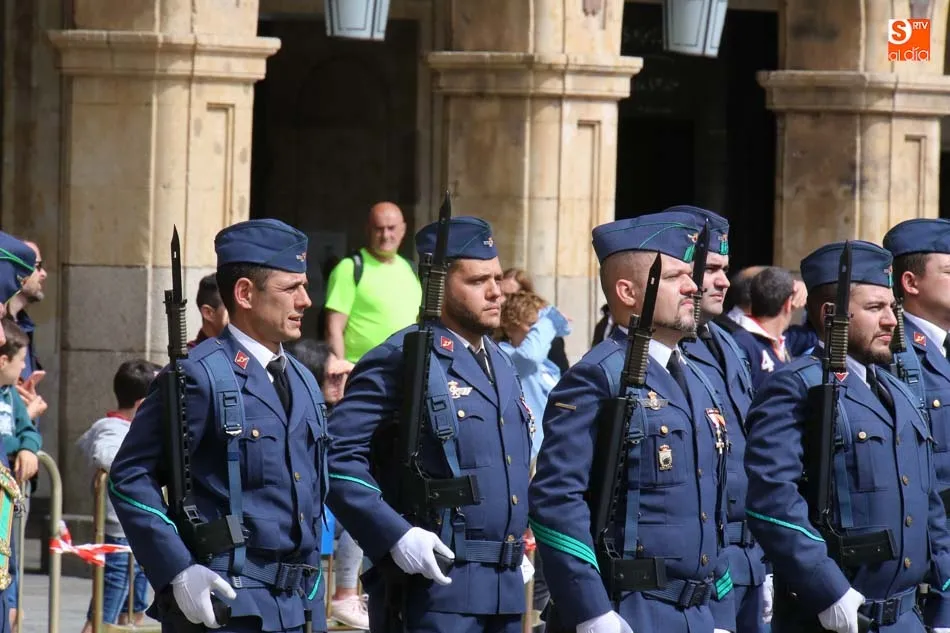 Durante la mañana de hoy, la Plaza Mayor de Salamanca acogió un Acto de Juramento o Promesa ante la Bandera de España, organizado por la Base Área de Matacán en colaboración con el Ayuntamiento de Salamanca.