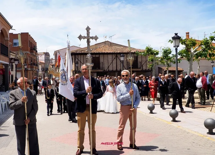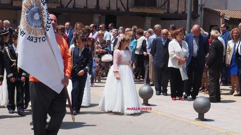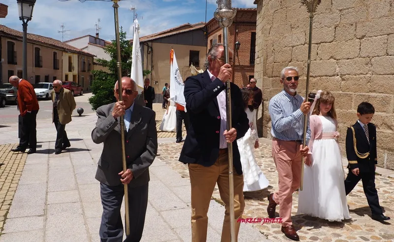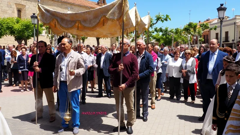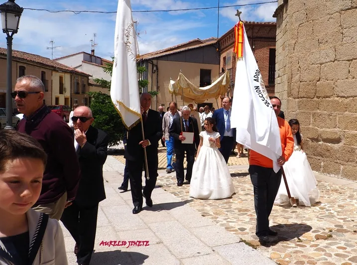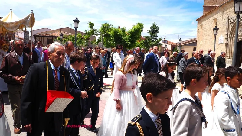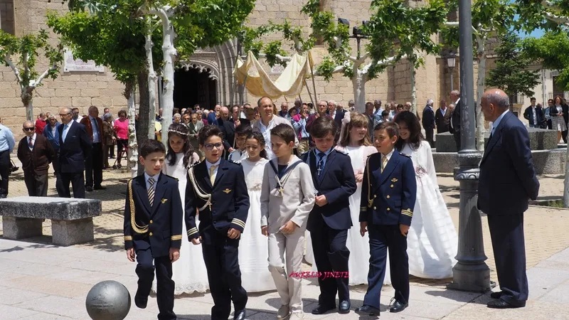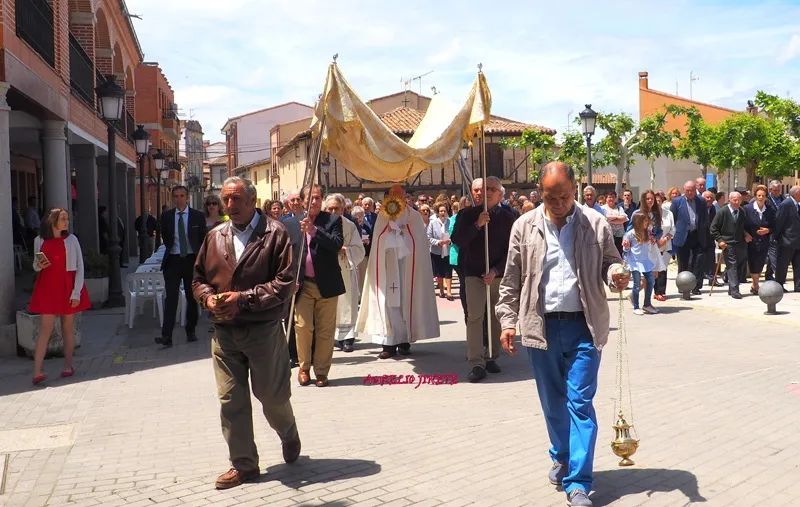 la calle donde la Custodia recorría gran parte de la Villa, realizando diferentes paradas en los altares que los propios macoteranos han preparado y decorado para conmemorar esta importante festividad que contaba un año más con una animada participación de familias y vecinos, quienes arropaban desde el inicio a la decena de niños que este año han tomado su Primera Comunión en la localidad.
