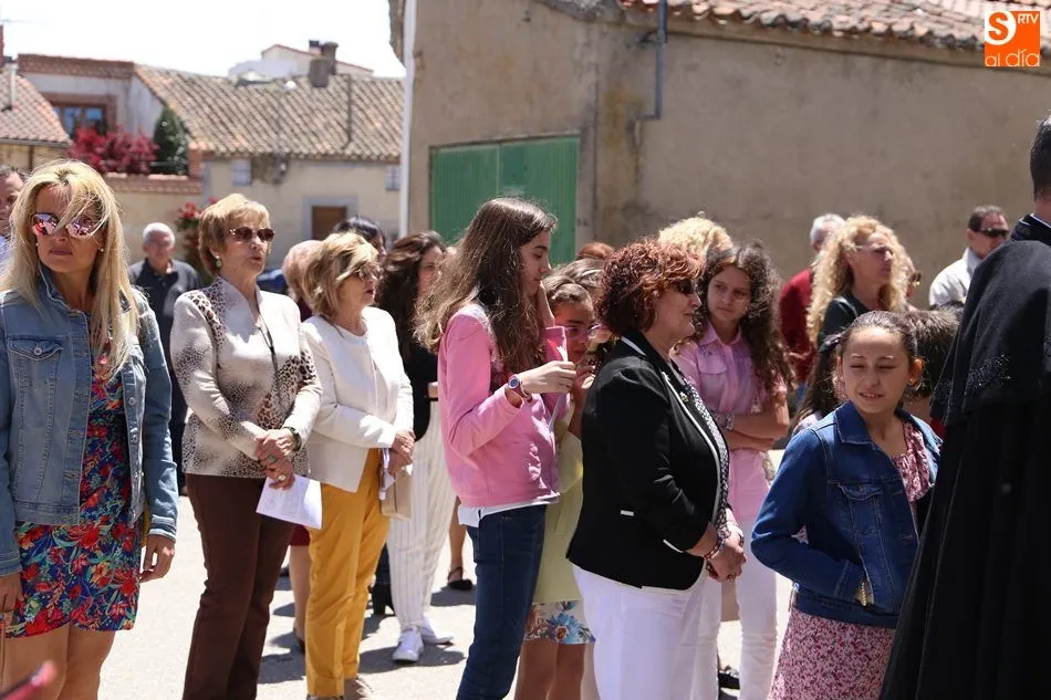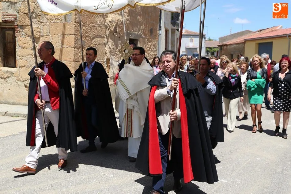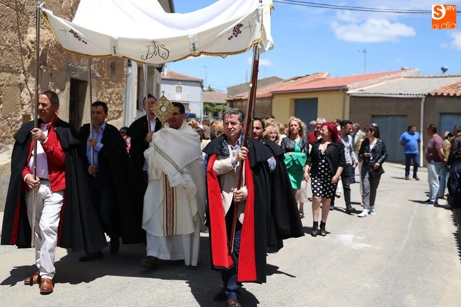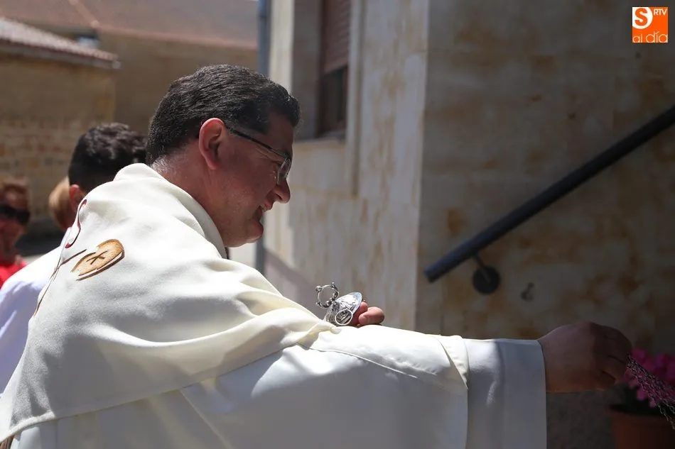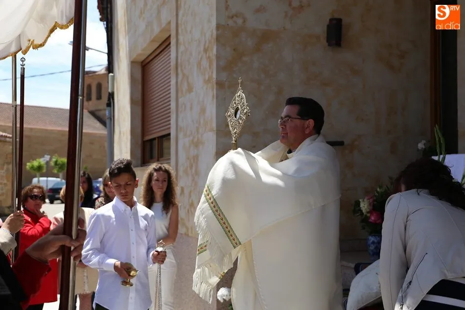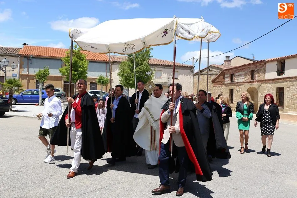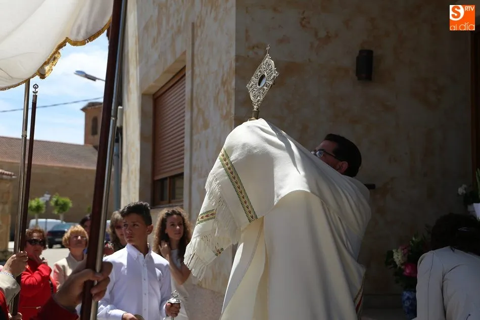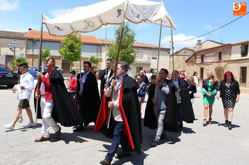 Tras la misa, la procesión salió de la iglesia encabezada por el Santísimo. El palio fue portado por seis vecinos ataviados con capas charras. Un tamborilero acompañó con música charra al séquito, que se dirigió a un altar y regresó a continuación al interior del templo del pueblo.