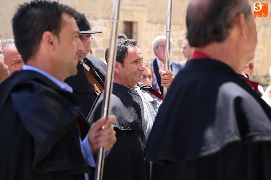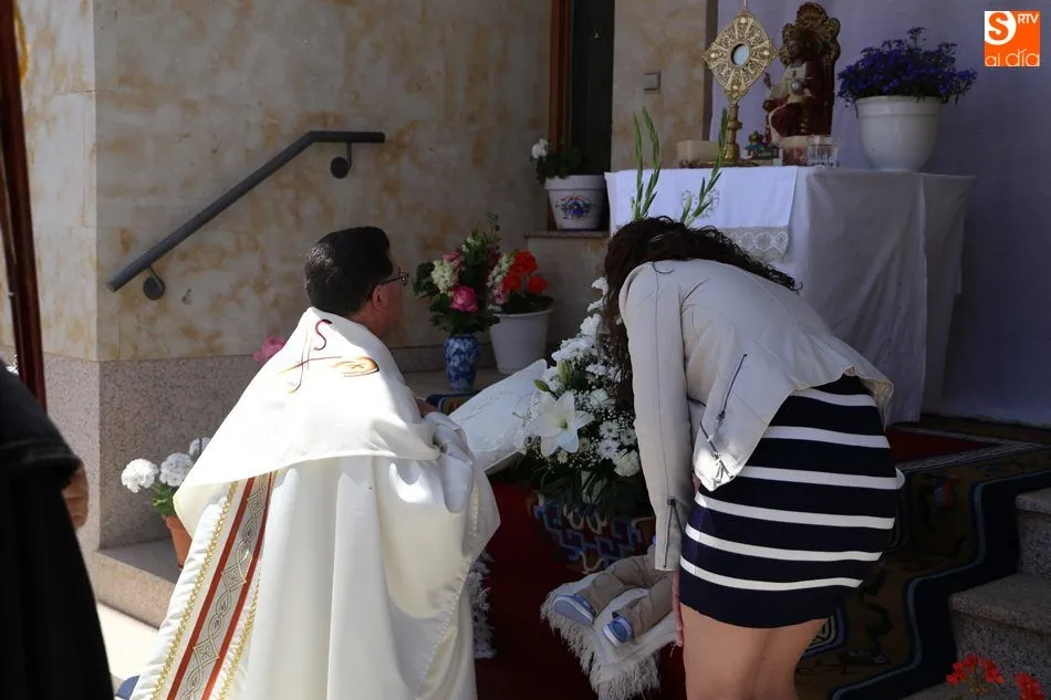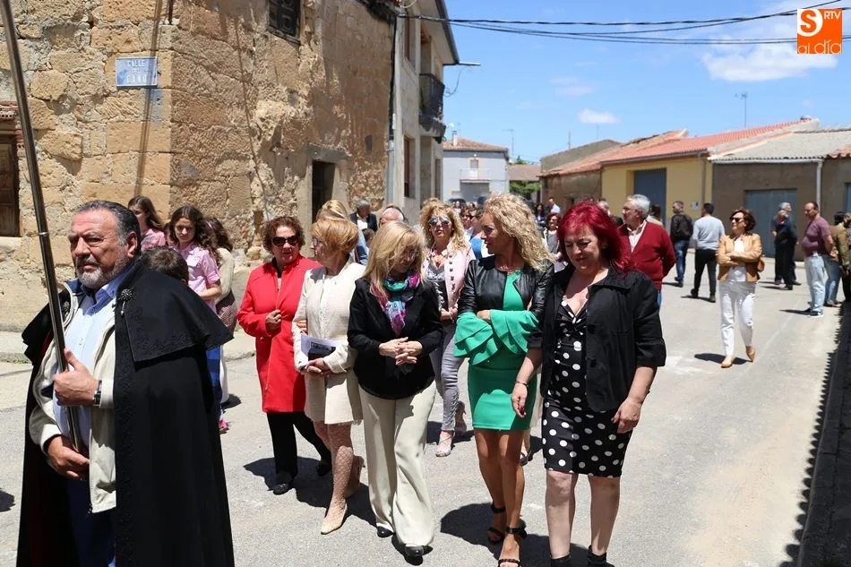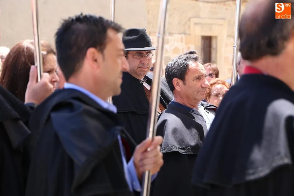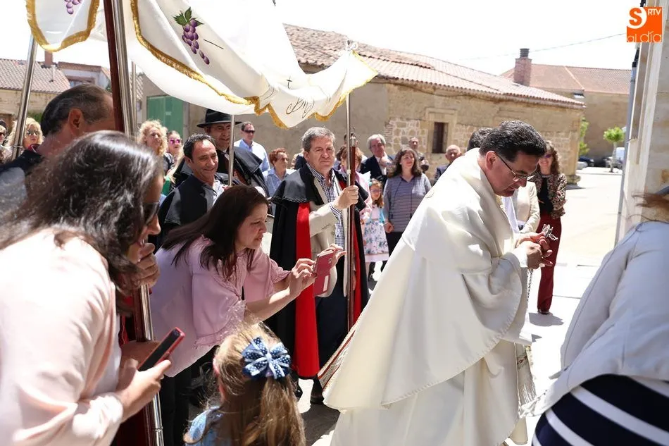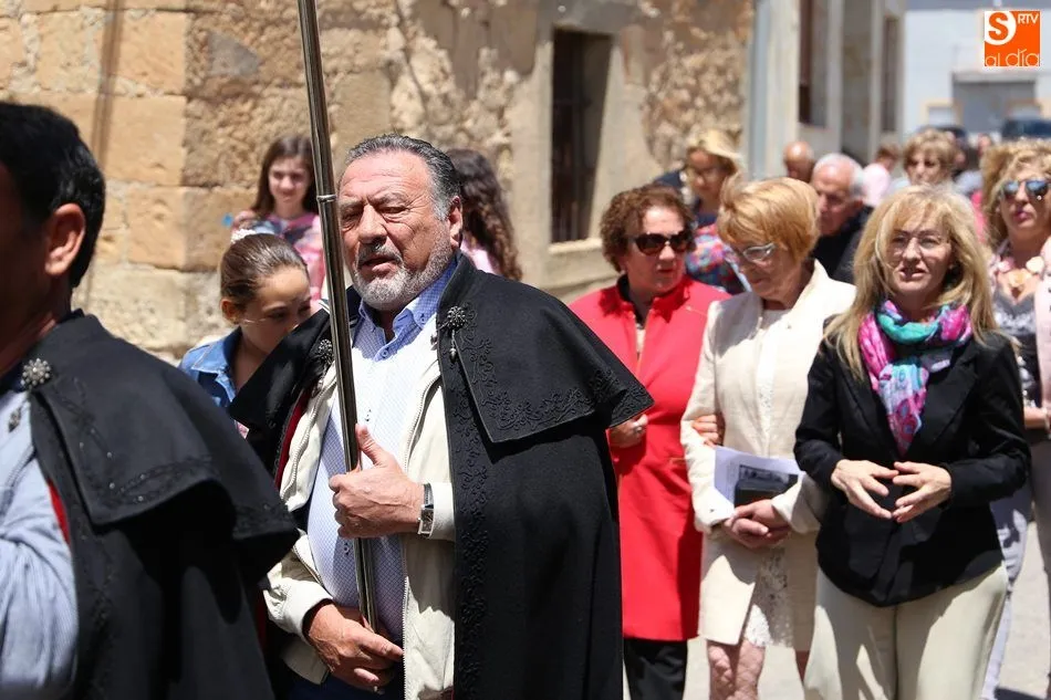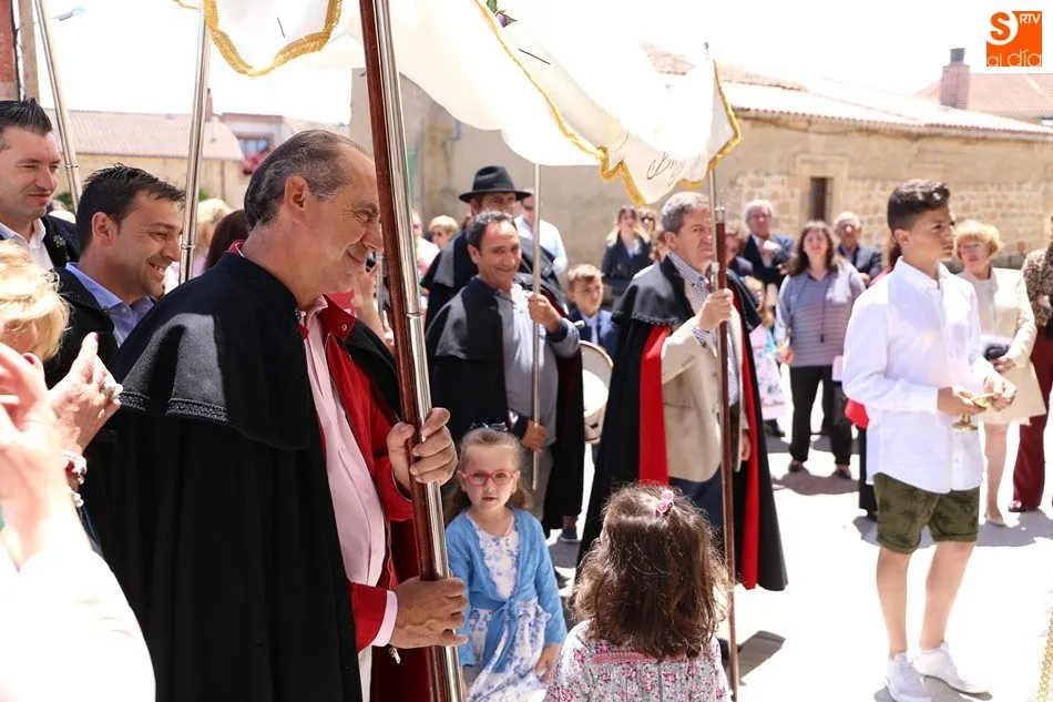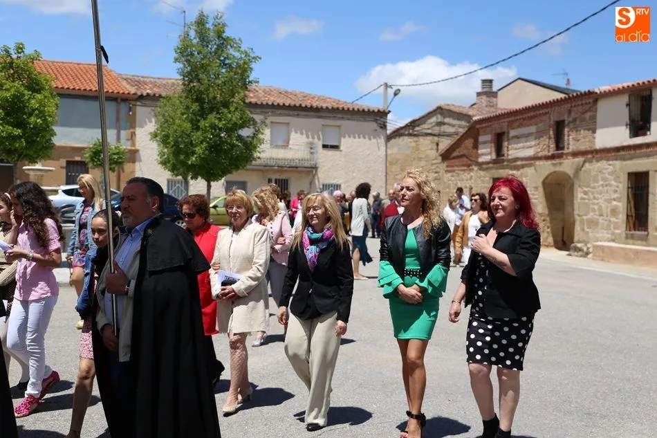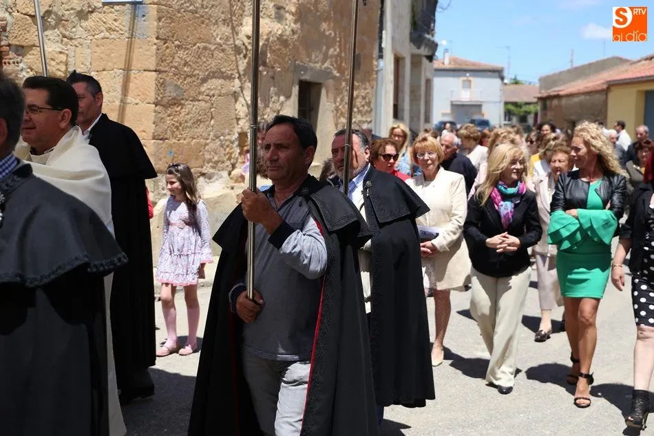 Tras la misa, la procesión salió de la iglesia encabezada por el Santísimo. El palio fue portado por seis vecinos ataviados con capas charras. Un tamborilero acompañó con música charra al séquito, que se dirigió a un altar y regresó a continuación al interior del templo del pueblo.