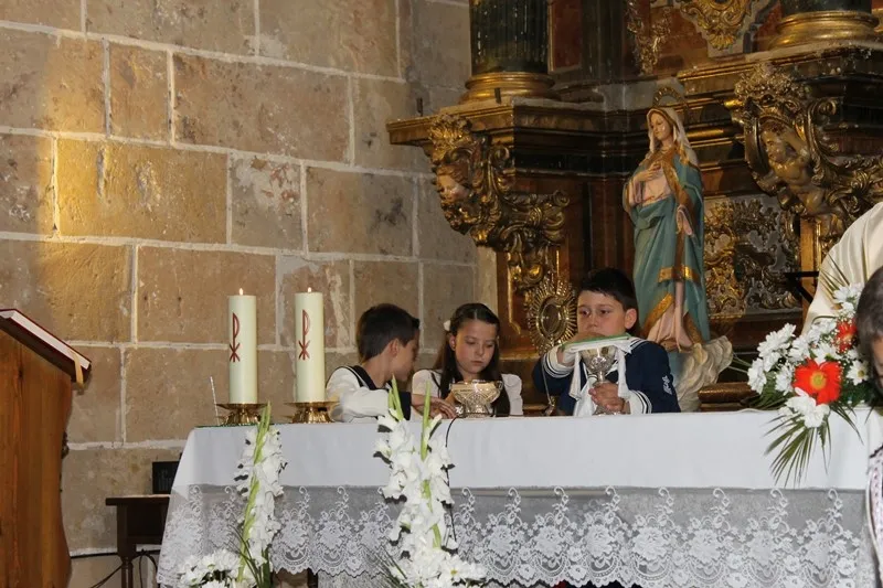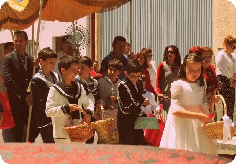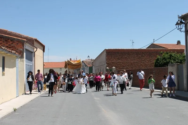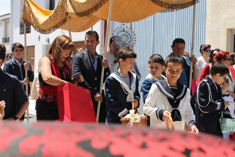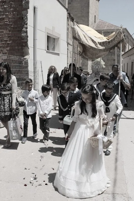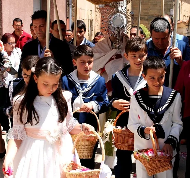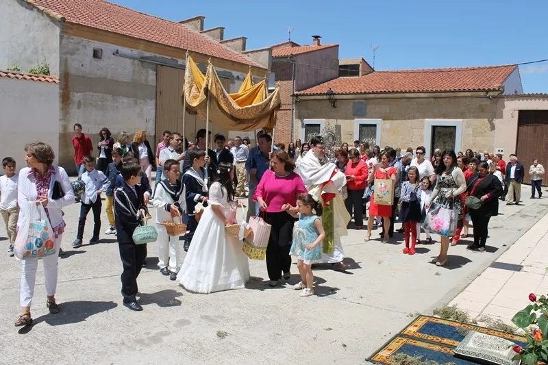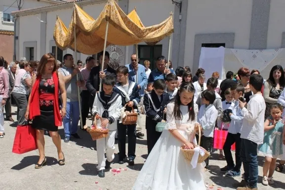 Como es contusbre en Cantalpino, los niños que tomaron la comunion la semana pasada ? Diego, Lucía, Jesús, Iván y Alejandro ? han disfrutado de un domingo de Corpus junto con sus familias.