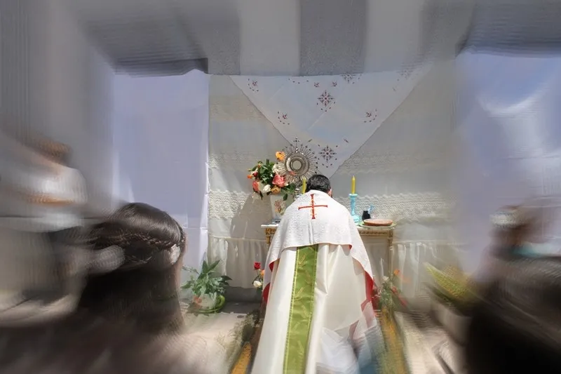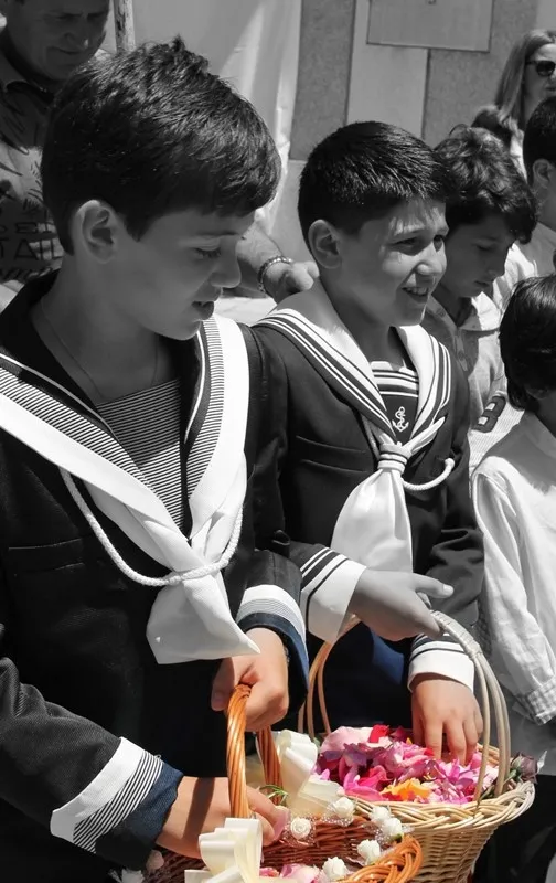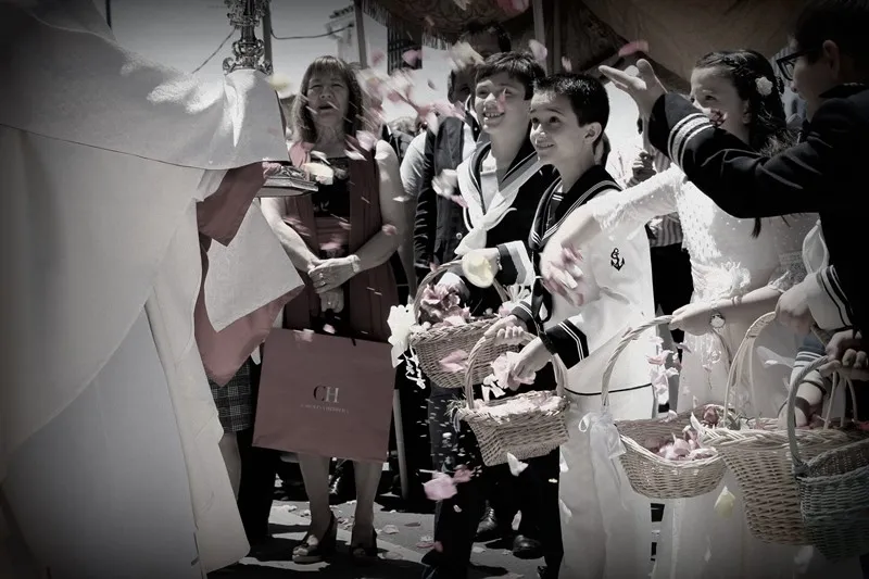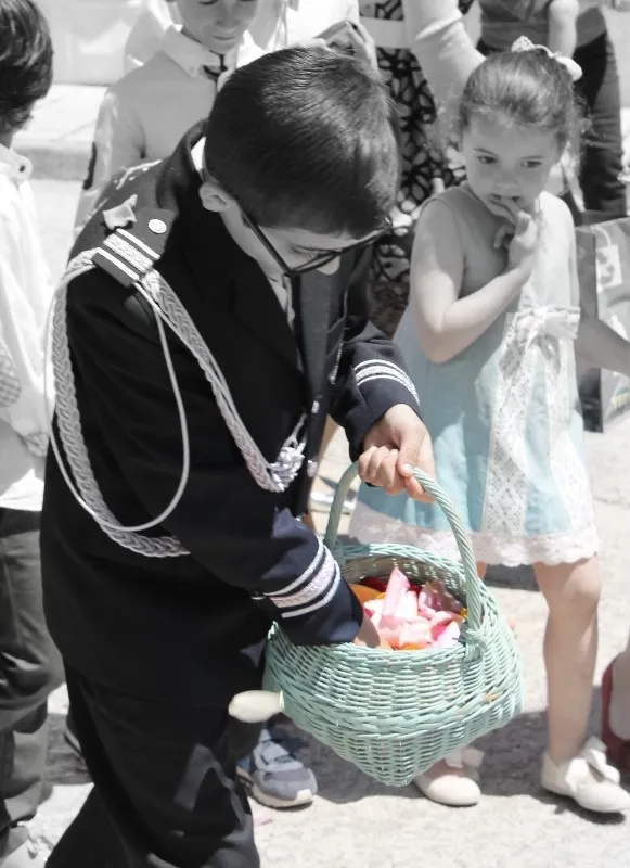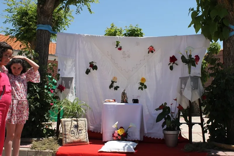 Los niños salieron en procesión tirando pétalos de flores en cada uno de los altares que colocaron los vecinos por diferentes calles del municipio.