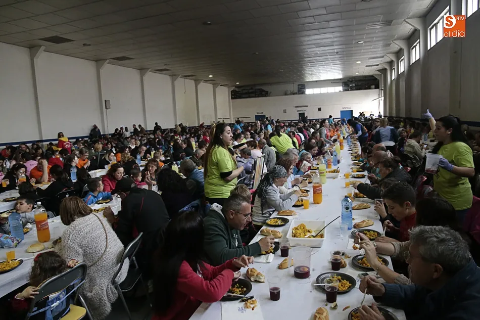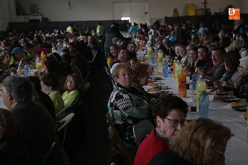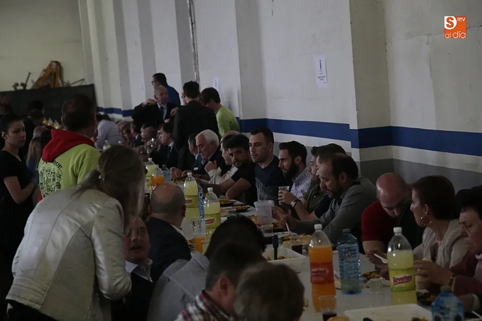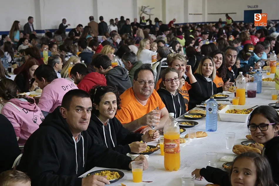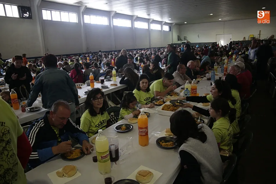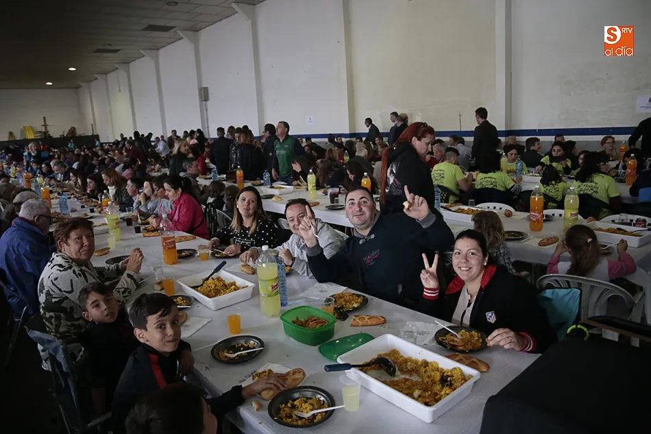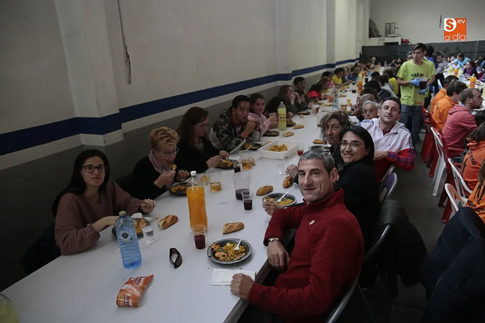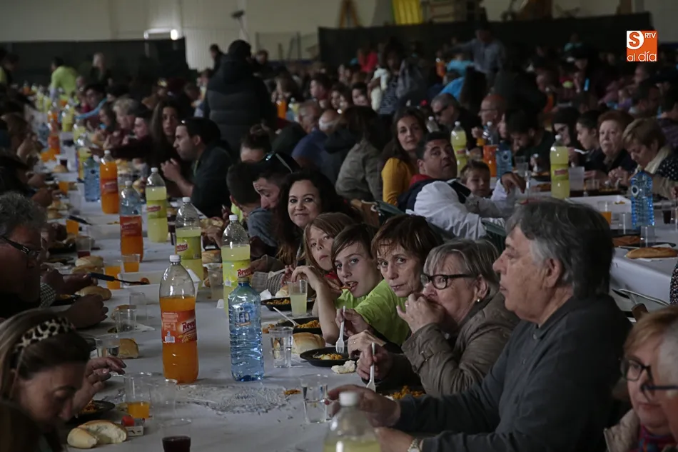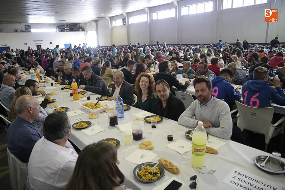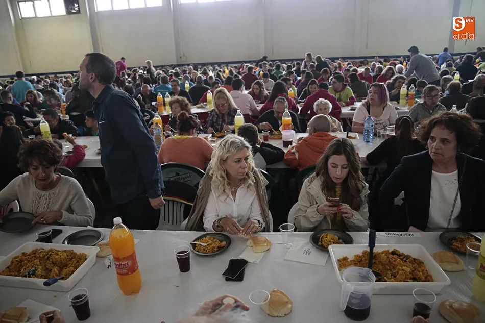 Los vecinos de Villares de la Reina despiden las fiestas del Santísimo este lunes con una amplia variedad de actos y con la gran paella popular que cada año ofrece el Ayuntamiento en esta última jornada festiva. Más de 3.000 vecinos y autoridades de localidad se han vuelto a reunir en la nave municipal y su entorno para compartir esta multitudinaria comida en compañía de familiares y amigos.