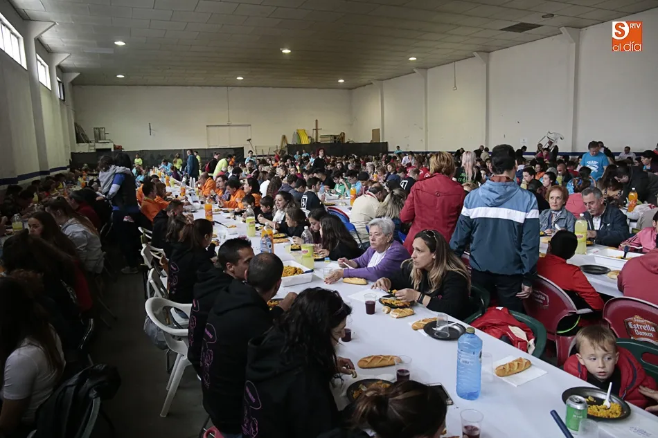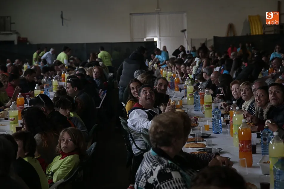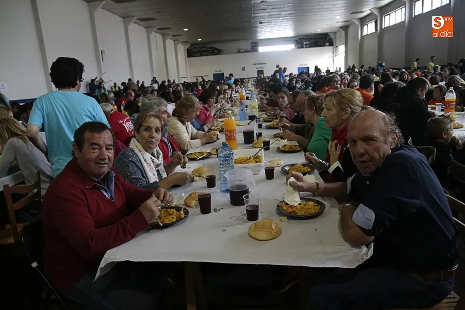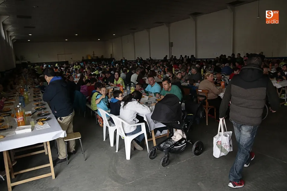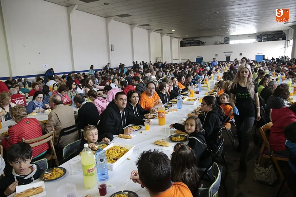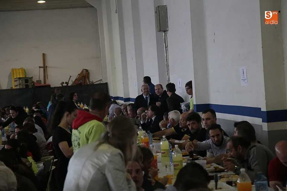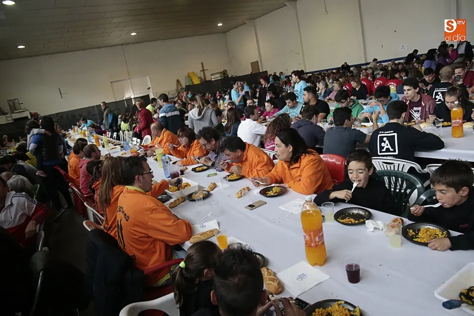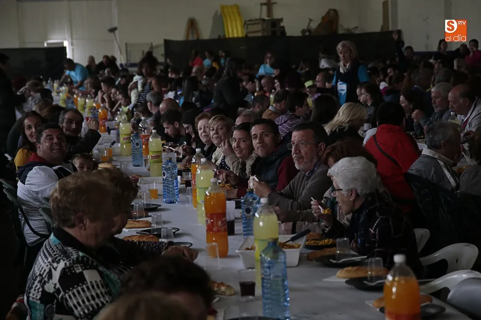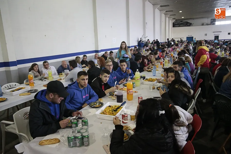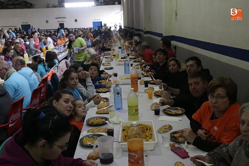 Los vecinos de Villares de la Reina despiden las fiestas del Santísimo este lunes con una amplia variedad de actos y con la gran paella popular que cada año ofrece el Ayuntamiento en esta última jornada festiva. Más de 3.000 vecinos y autoridades de localidad se han vuelto a reunir en la nave municipal y su entorno para compartir esta multitudinaria comida en compañía de familiares y amigos.
