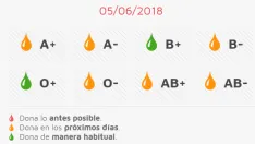 En estos momentos, no hay urgencia inmediata de ningún tipo de sangre, pero sí se recomienda donar lo antes posible sangre de 6 grupos: A Positivo y Negativo, B Negativo, 0 Negativo, y AB Positivo y Negativo.