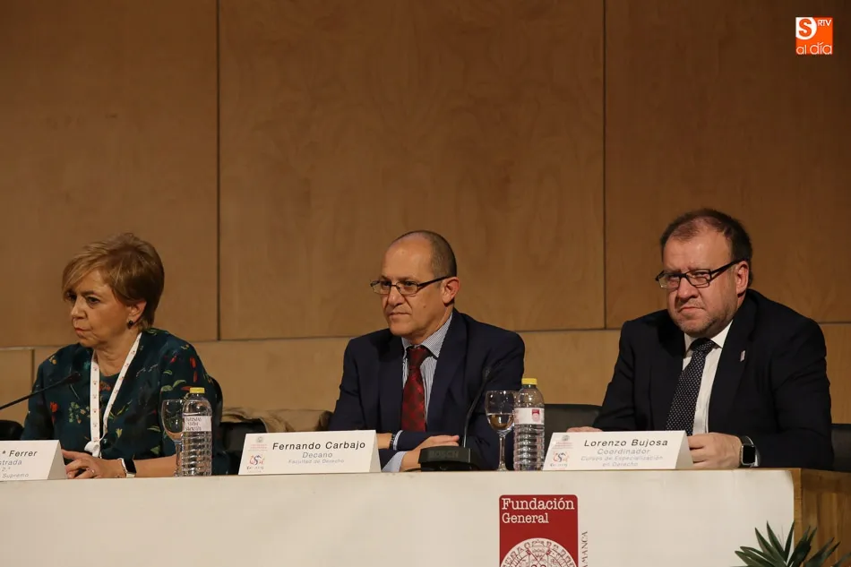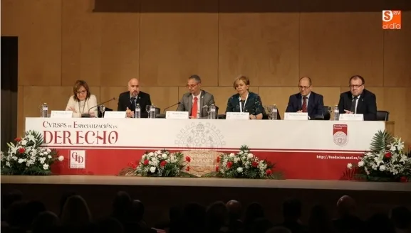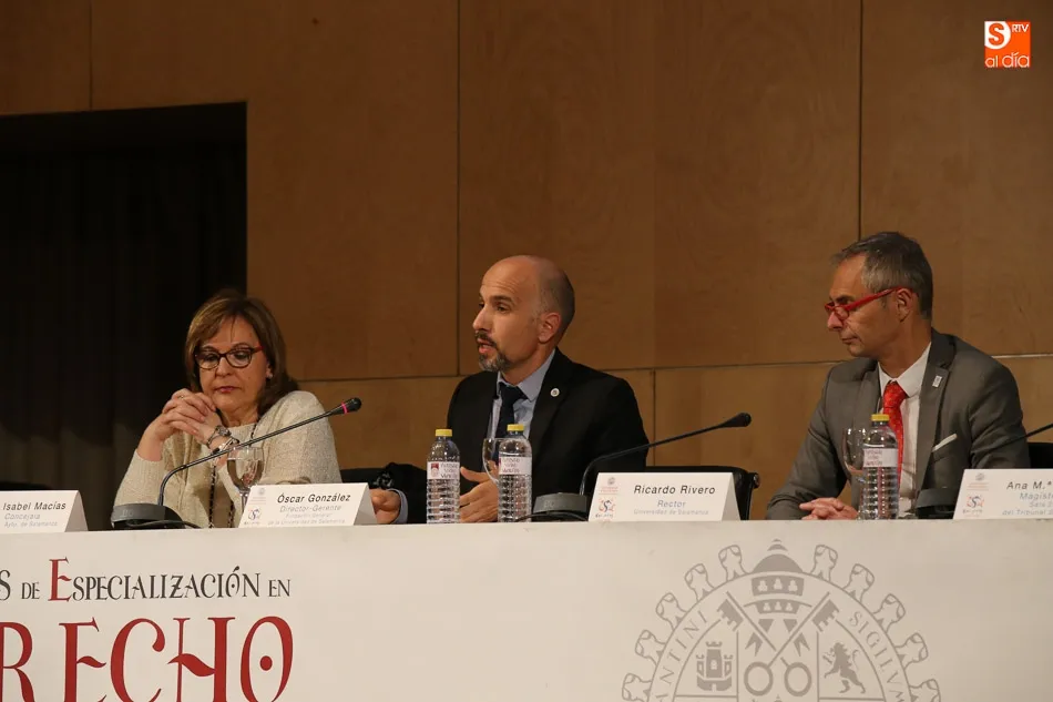 El Auditorio de la Hospedería Fonseca acogió hoy la inauguración de la 43 edición de los Cursos de Especialización en Derecho de la Universidad. Estas jornadas, gestionadas por la Fundación General de la Universidad de Salamanca, congregarán en la USAL durante las próximas semanas a 173 juristas procedentes de Iberoamérica y Europa. El rector de la Universidad de Salamanca, Ricardo Rivero, presidió la inauguración de las sesiones en un acto que contó además con la asistencia del director de la Fundación General, Óscar González Benito; el decano de la Facultad de Derecho, Fernando Carbajo Cascón; y el coordinador de los cursos, Lorenzo Bujosa Vadell.