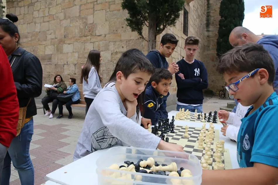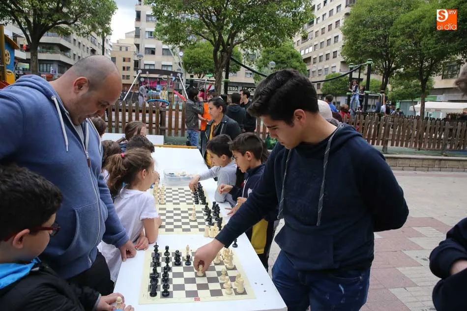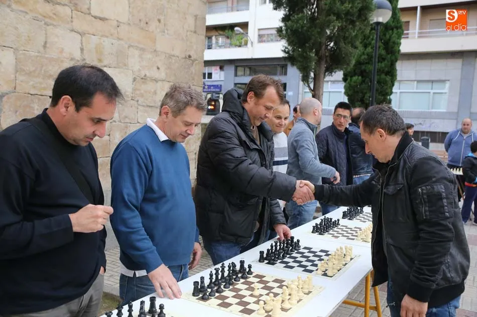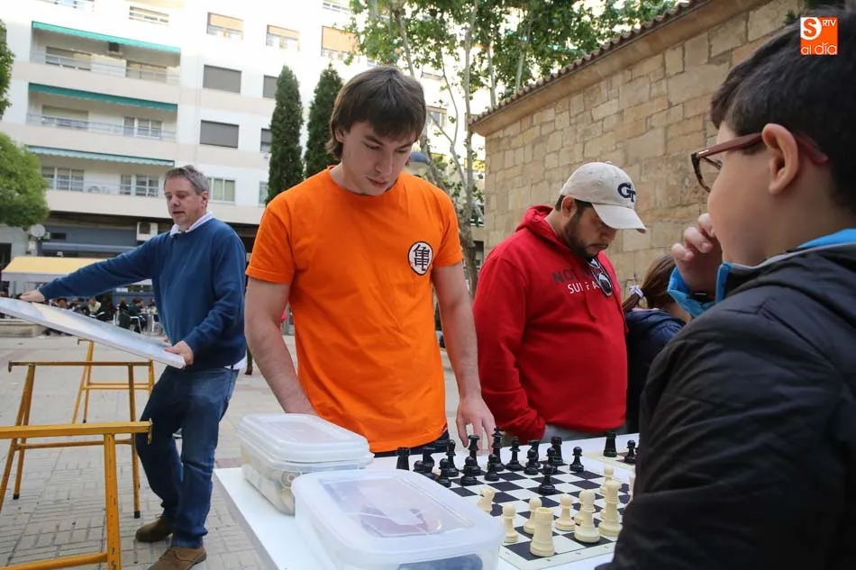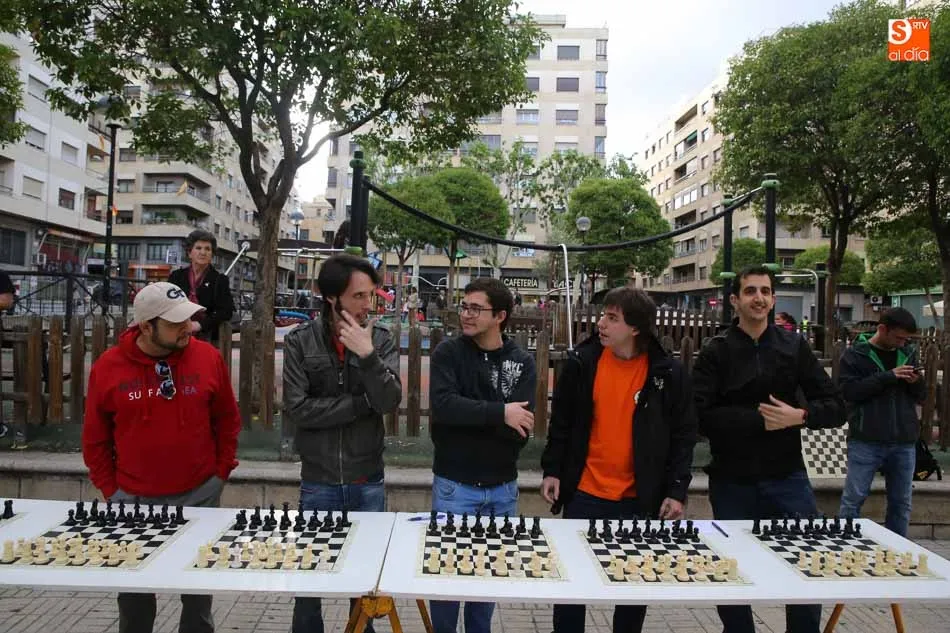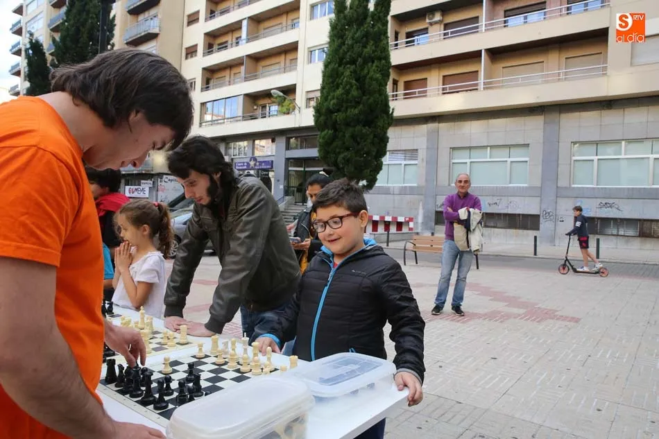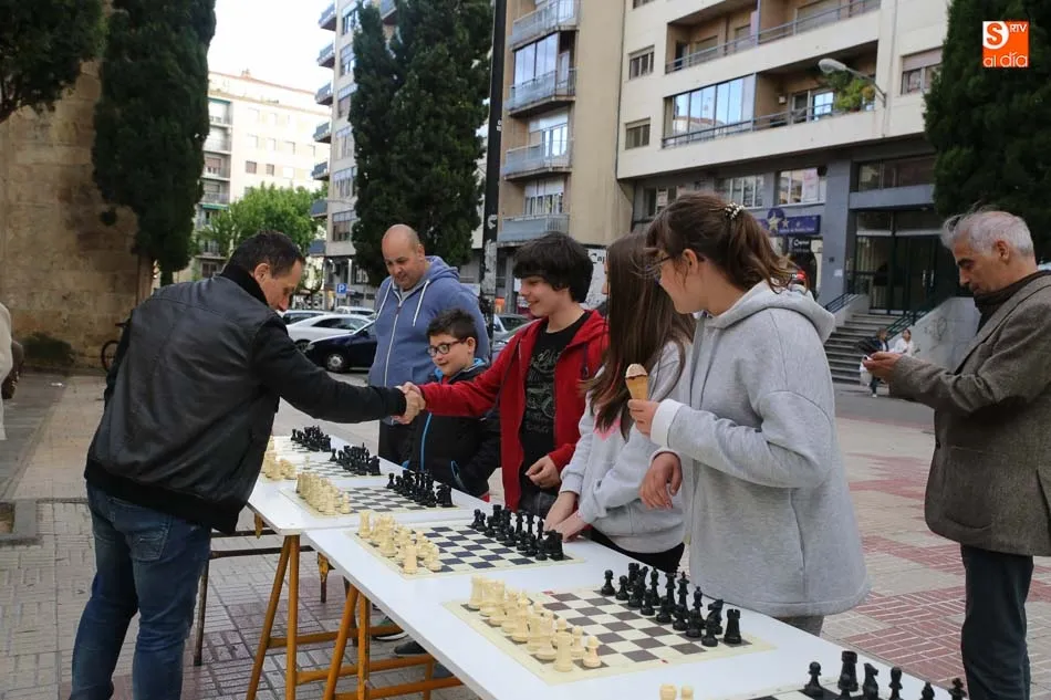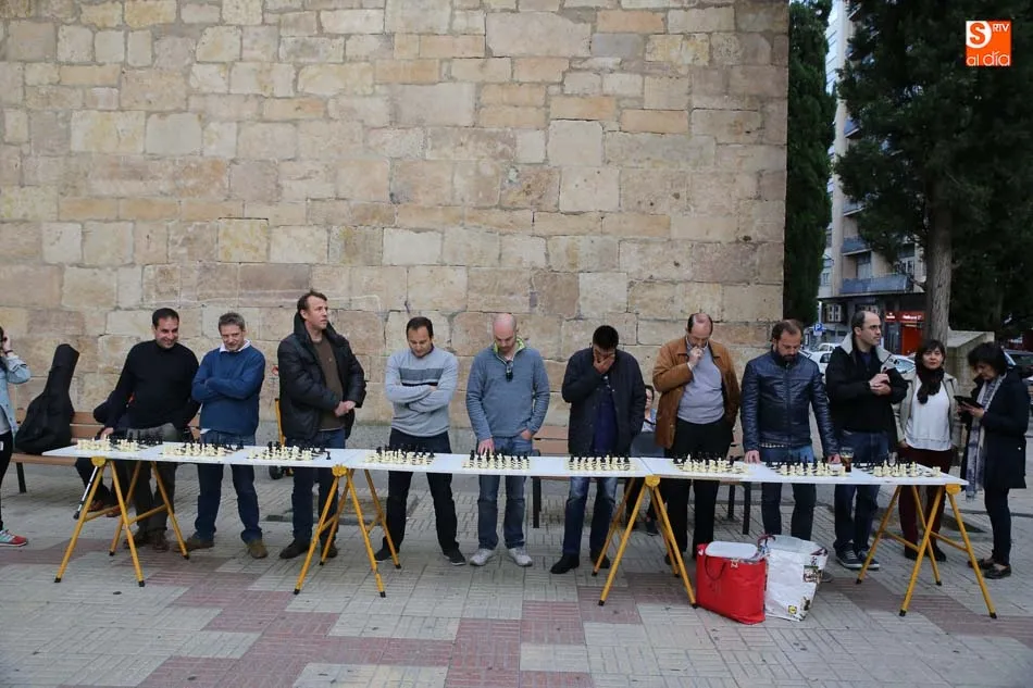 La Plaza de Carmelitas acogió hoy al Club Deportivo de Ajedrez de Salamanca que organizó una jornada cuyo único objetivo fue el de acercar, promocionar y difundir este deporte dentro de la sociedad. El evento contó con una gran partida simultánea de ajedrez, cuya organización se llevo a cabo de manera conjunta con la Asociación de Vecinos Zoes.