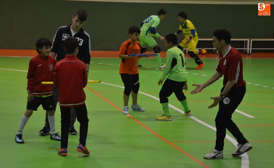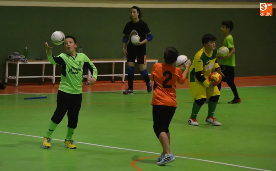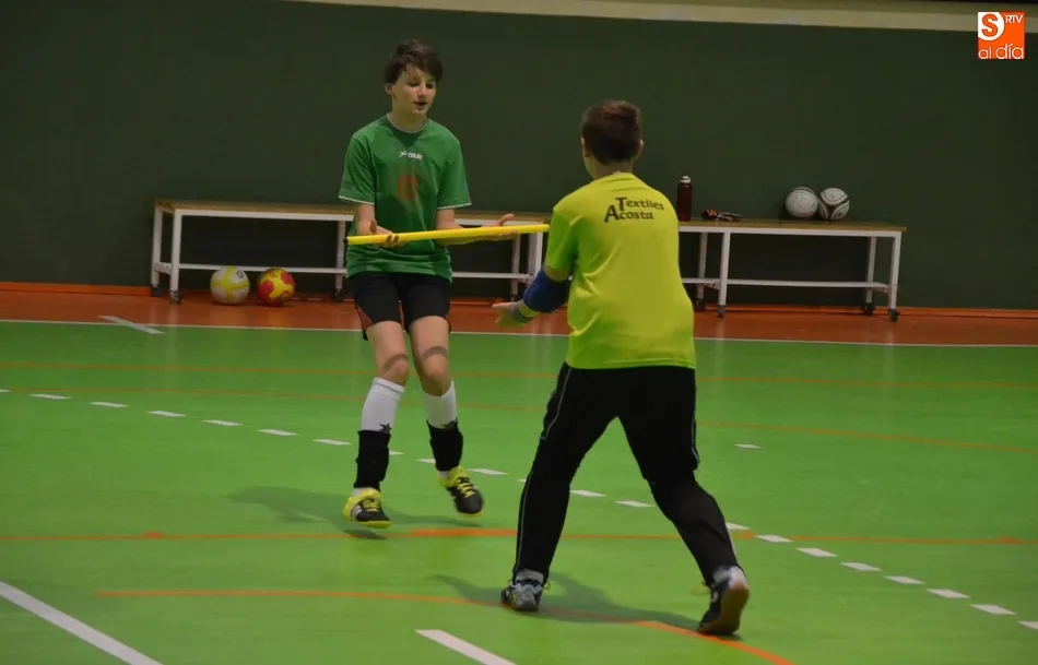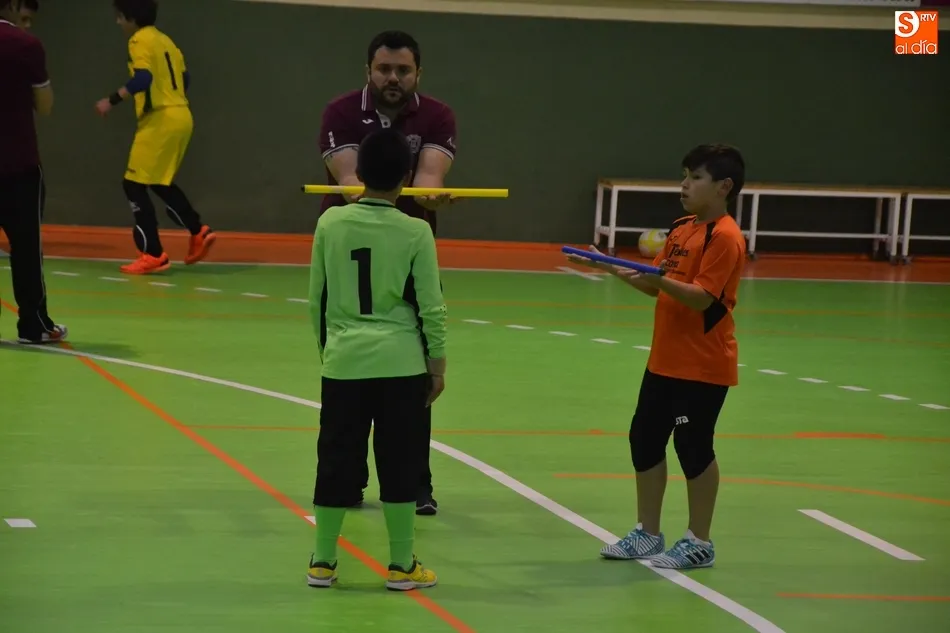 Los porteros de la cantera del III Columnas (de Infantil para abajo), junto a la guardameta del Farinato Race Ciudad Rodrigo FS, disfrutaron en la tarde del jueves de una sesión especial de entrenamiento en el Pabellón de Conde de Foxá de la mano de integrantes de la Federación de Castilla y León.