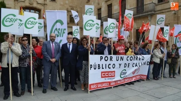 Los paros convocados para este jueves y las concentraciones han servido, además, para reivindicar un convenio, que está congelado desde 2013, y mejores salarios. ?Además, exigimos que en la provincia de Salamanca se restituyan las 187 plazas que se han perdido en los últimos seis años y que se cubran tanto las vacaciones como las bajas por enfermedad de los trabajadores?, han destacado desde los sindicatos, que también reclaman la ?restitución de los 180 millones que nos quitaron en los presupuestos para que Correos empiece a ser un referente postal, porque tenemos infraestructuras y medios pero nos están poniendo zancadillas?, ha indicado Juan Francisco Rivas, representante de CCOO Salamanca.