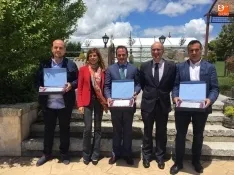 El presidente de la Diputación de Salamanca, Javier Iglesias, y la diputada de Economía y Hacienda, Chabela de la Torre, hicieron entrega del premio a Antonio Labrador, presidente de la entidad