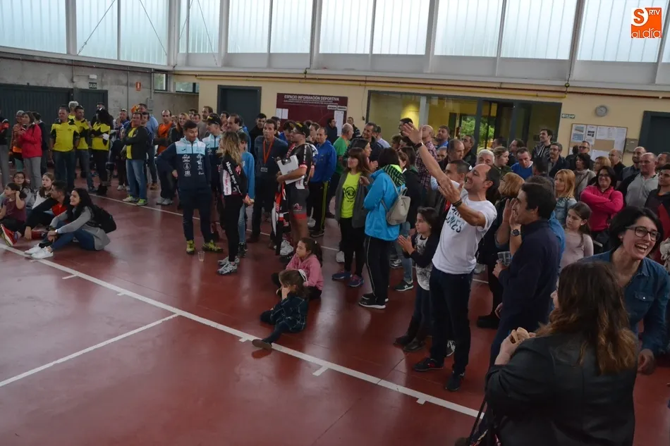 En principio, estaba previsto que la entrega de premios se realizase a las 20.15 horas, pero no empezó hasta casi una hora después, a las 21.10 horas, porque al parecer se estuvo esperando a que llegase un último corredor (pese a que el cierre de control estaba fijado para las 20.00 horas). El tiempo de espera se entretuvo degustando huevos fritos con farinato preparados por la Asociación Gastronómica de Amigos del Farinato, y tomando cañas en la barra instalada en la entrada principal a la sala multiusos José Ángel Gómez Sánchez.