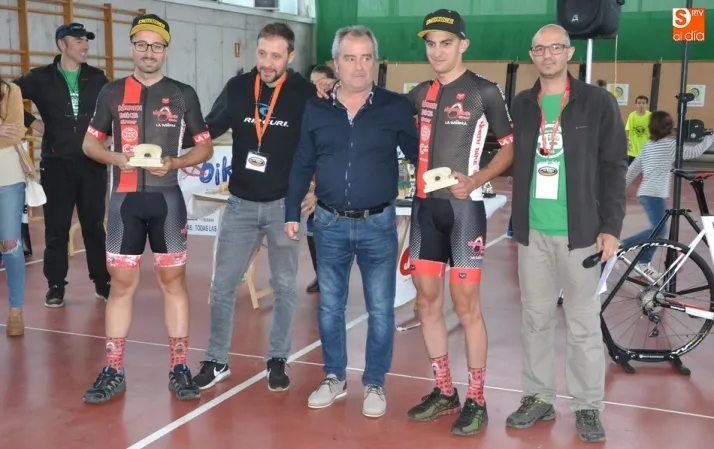 Los que sí estuvieron -y todavía con los maillots puestos- fueron los dos ganadores ex aequo de la modalidad principal, que constó de 215 kilómetros (132 de carretera y 83 de BTT). Esos corredores fueron Alejandro Contero Martín y Daniel García Cadenas, del mismo Club, North Bike La Bañeza, que entraron ?de la mano? tras 8h.36?41? sobre sus bicis, un tiempo un poco superior al del ganador del año pasado, José Plaza Diego, que empleó 8h.31?14?.