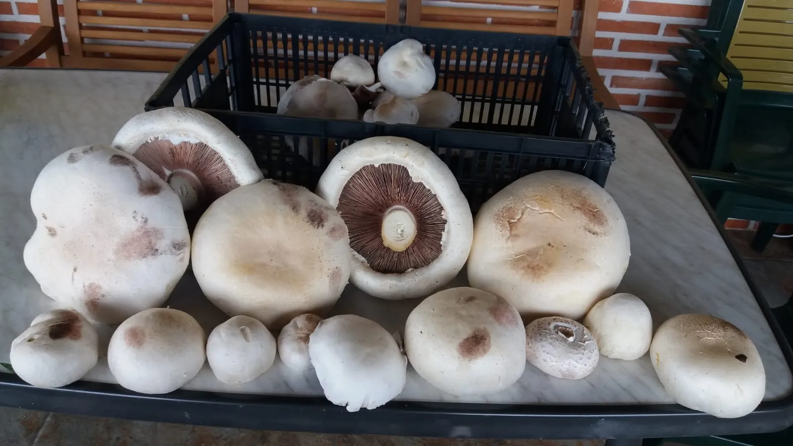José Luis Lorenzo Martín tuvo en la jornada del viernes una fructífera sesión de recolección en el entorno del municipio de Carpio de Azaba, regresando a casa con todos los champiñones que aparecen en las imágenes. Como se puede ver en las imágenes, hay varias piezas de gran tamaño, entre las que sobresalen especialmente dos: uno que tiene un diámetro de 21,5 centímetros, y otro de más de medio kilo de peso, marcando en la báscula exactamente 520 gramos.
