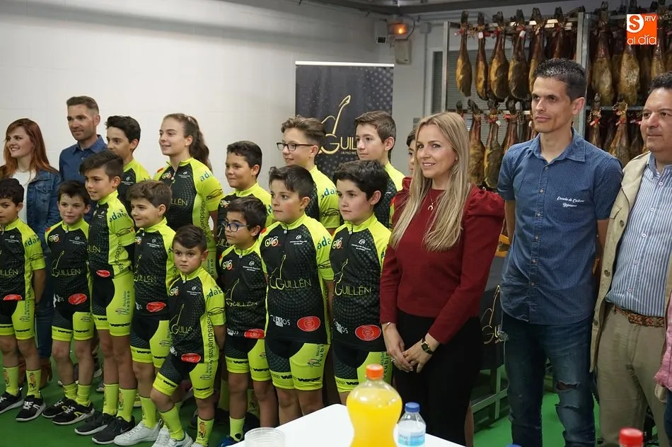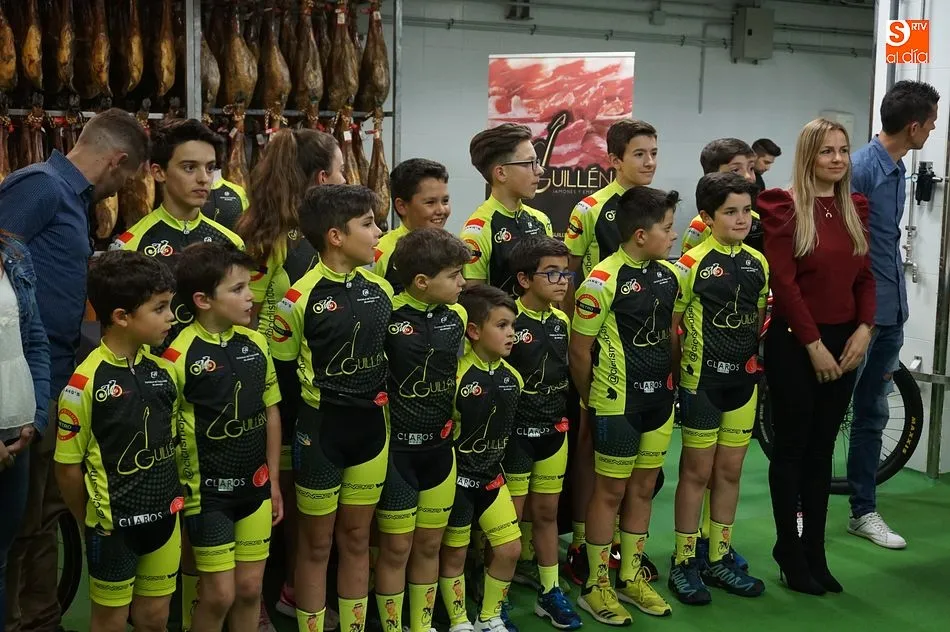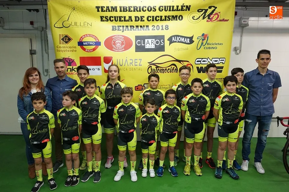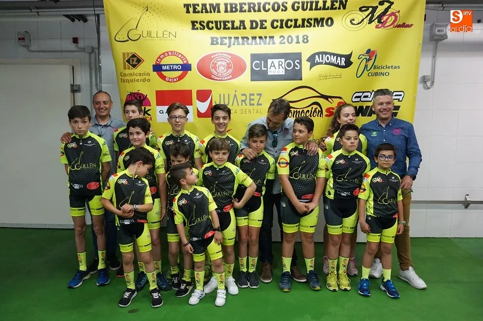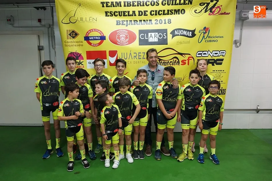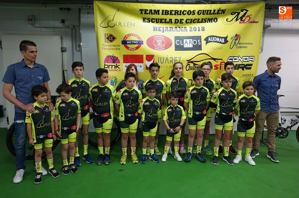 La Escuela de Ciclismo Bejarana Ibéricos Guillén se presentó oficialmente en la villa guijuelense en la tarde de ayer. Un total de 16 jóvenes ciclistas junto a sus monitores se presentaron al público, aunque el equipo ya ha finalizado su participación en el Open de Castilla y León de montaña y está disputando el de carretera. El evento tuvo lugar en la fábrica de Ibéricos Guillén , con la presencia de familiares y amigos de los alumnos, siendo presentados por el periodista local Damián Martín y con presencia del concejal de deportes de Béjar Raúl Hernández.