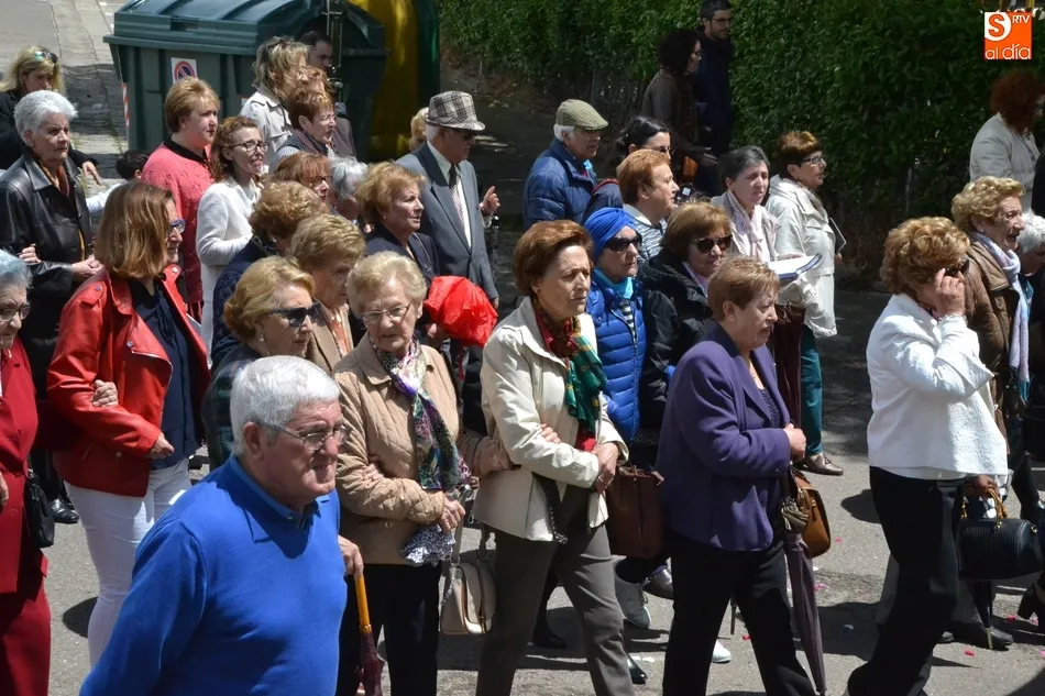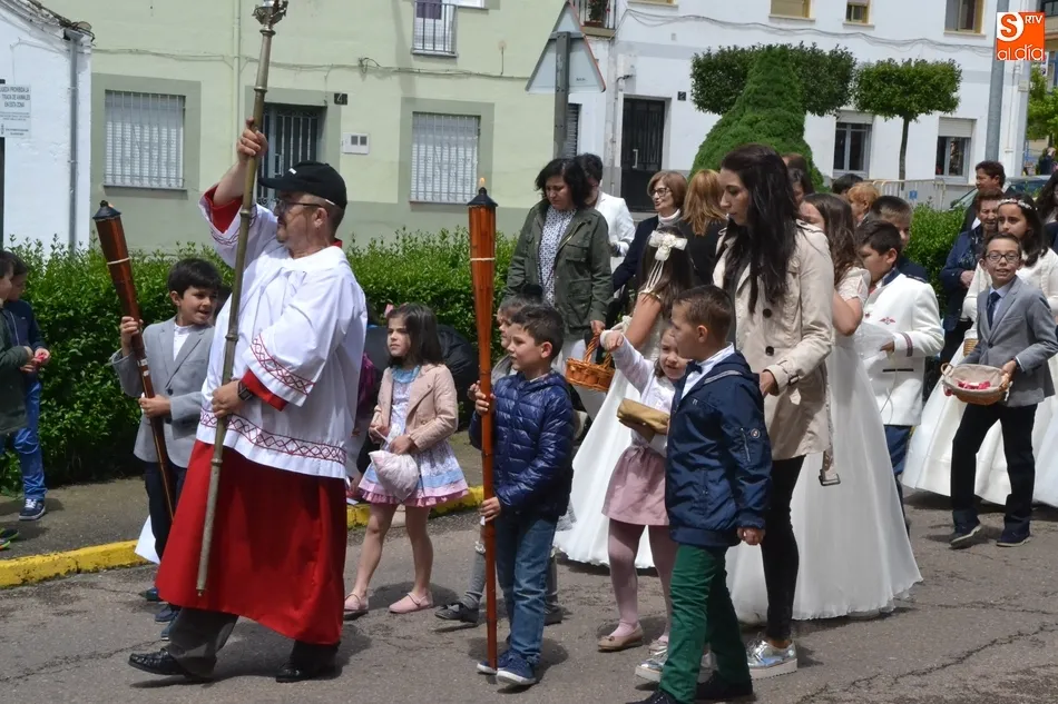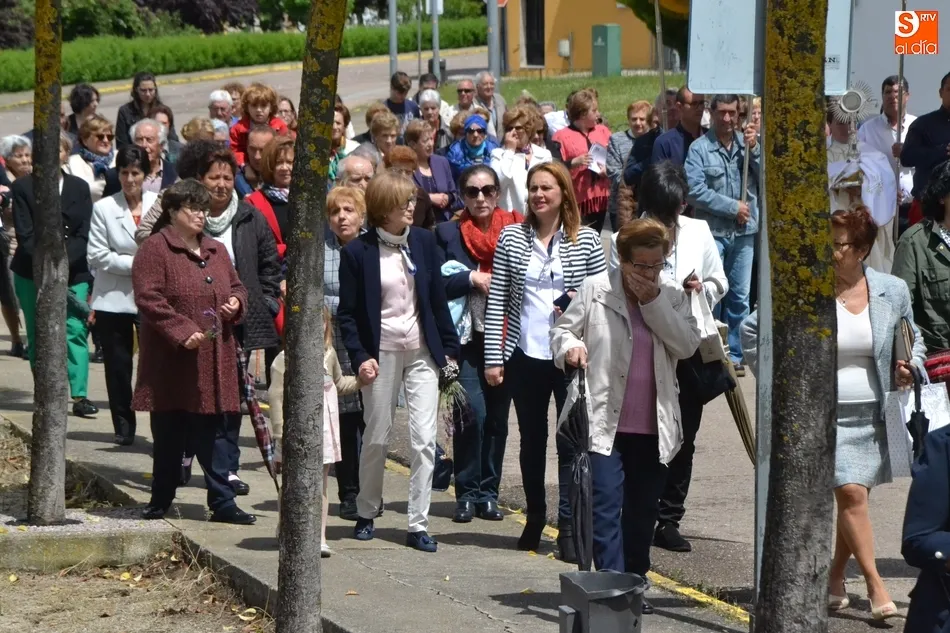 Esa comitiva procesional siguió el trayecto habitual por las calles Doctor Fleming, Caridad, Iberia, y Avenida de Los Cañitos, por donde hubo distribuidos varios altares, estando todos ellos bastante a cubierto para evitar problemas con la lluvia. Esto hizo que hubiera hasta tres altares en escasos metros: junto al Restaurante El Mirador, en la entrada a los salones parroquiales, y en la entrada a la Iglesia propiamente dicha.