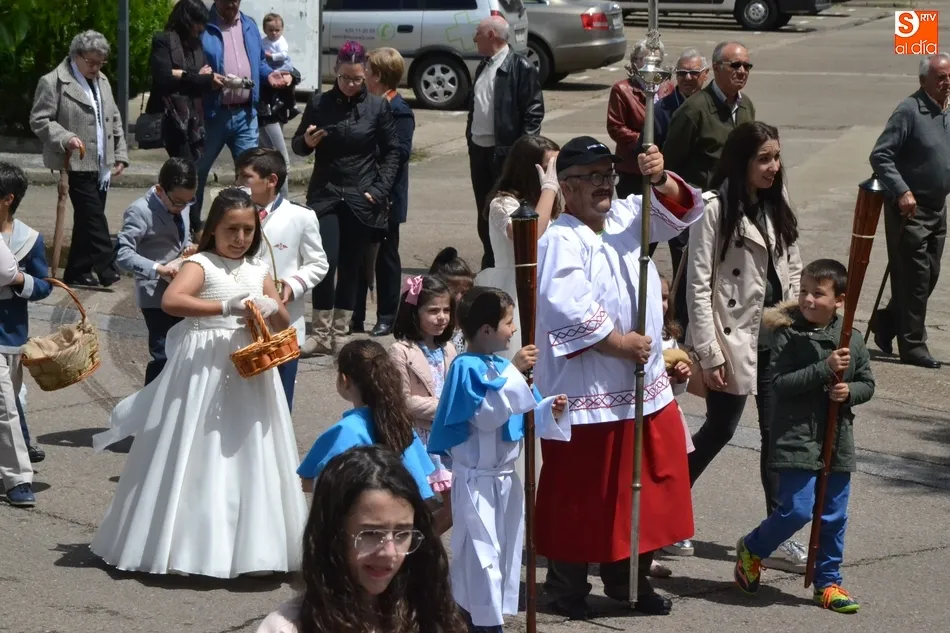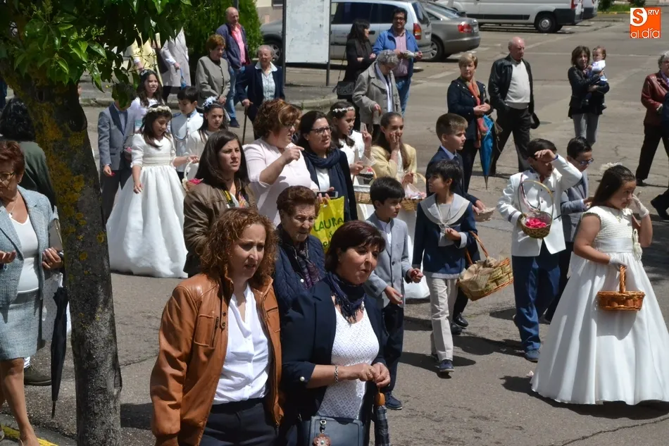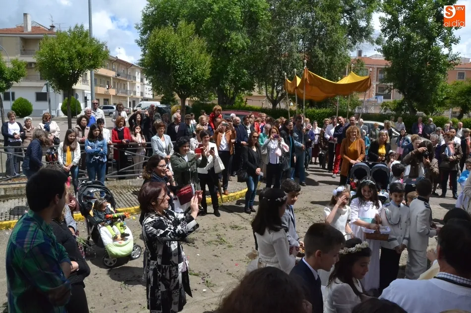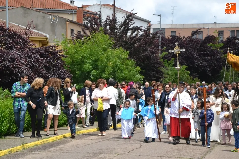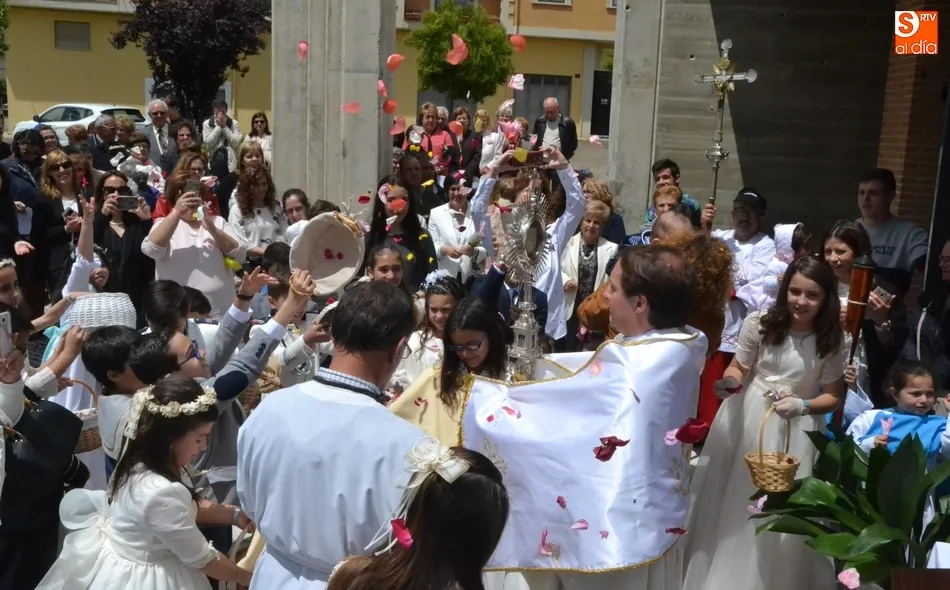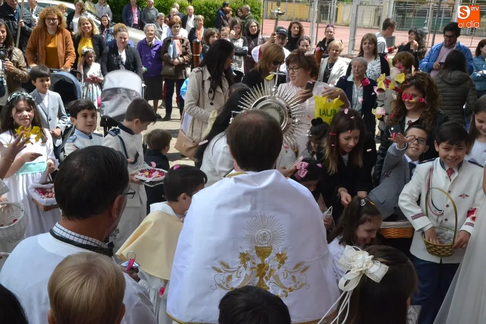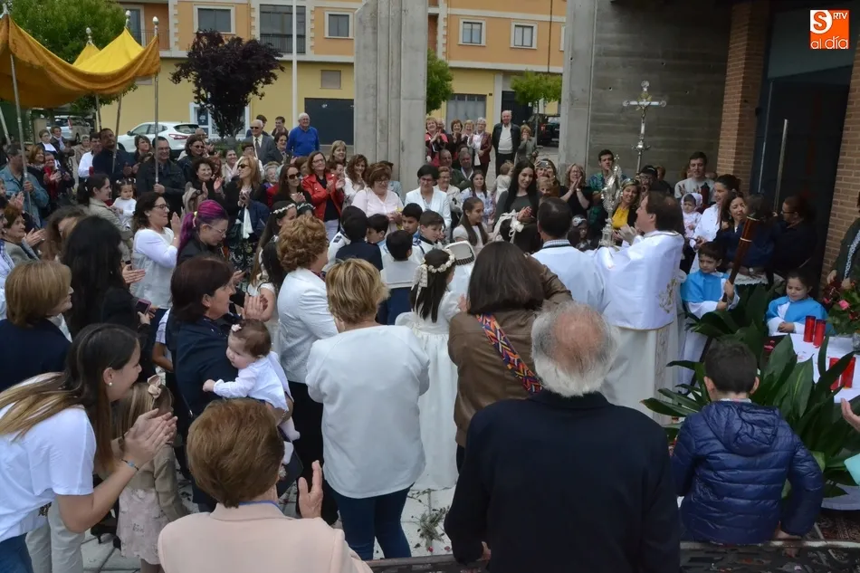 La última de las paradas, justo a las puertas de la Iglesia, tuvo un componente añadido, ya que a modo de finalización de la procesión todos los presentes le cantaron el Cumpleaños Feliz a un ayudante del párroco, Manel, así como a una niña que cumplía un año. Como despedida, el párroco les dijo a los niños recién comulgados que espera seguir viéndoles por la Parroquia.