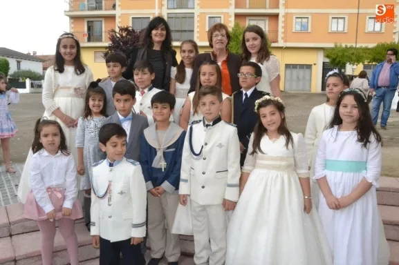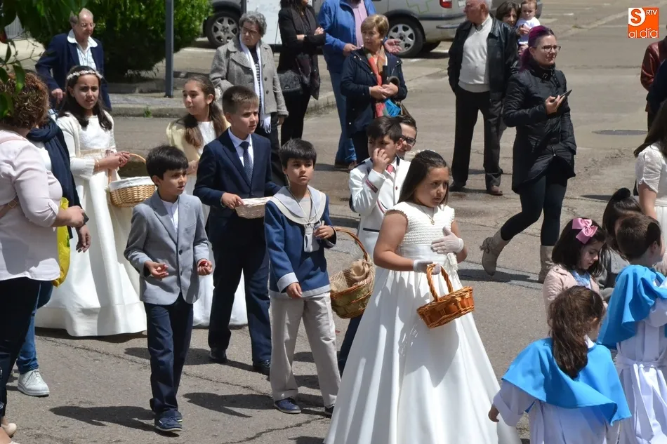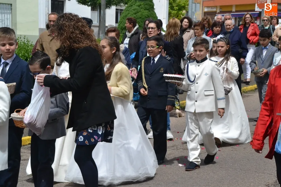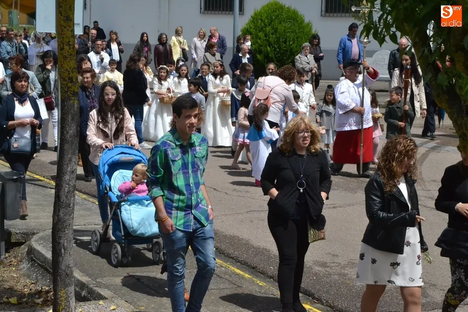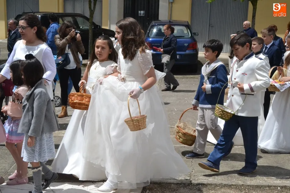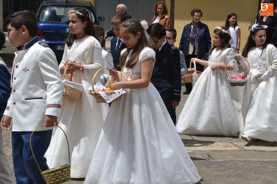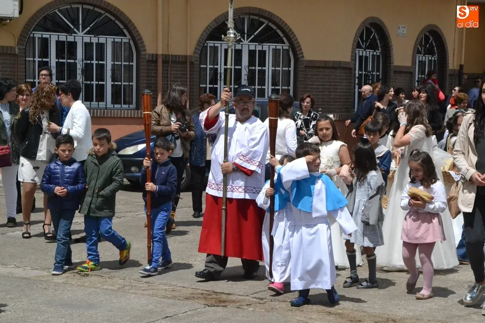 La última de las paradas, justo a las puertas de la Iglesia, tuvo un componente añadido, ya que a modo de finalización de la procesión todos los presentes le cantaron el Cumpleaños Feliz a un ayudante del párroco, Manel, así como a una niña que cumplía un año. Como despedida, el párroco les dijo a los niños recién comulgados que espera seguir viéndoles por la Parroquia.