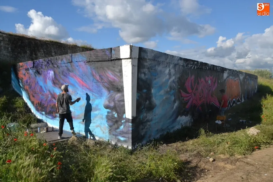 Durante estos últimos días ?entre chaparrón y chaparrón- cuatro jóvenes artistas le han estado dando una nueva imagen al conocido como tanque ?o pozo- de tormentas ubicado entre Los Cañitos y la Avenida Conde de Foxá (en la parte sur del barrio de Las Canteras, cerca de la Autovía).