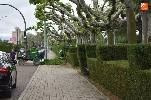 GUIJUELO | Los operarios de parques y jardines trabajan en el seto que posee más de 300 metros de largo