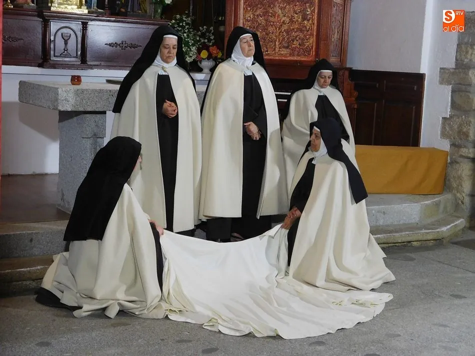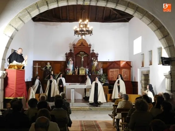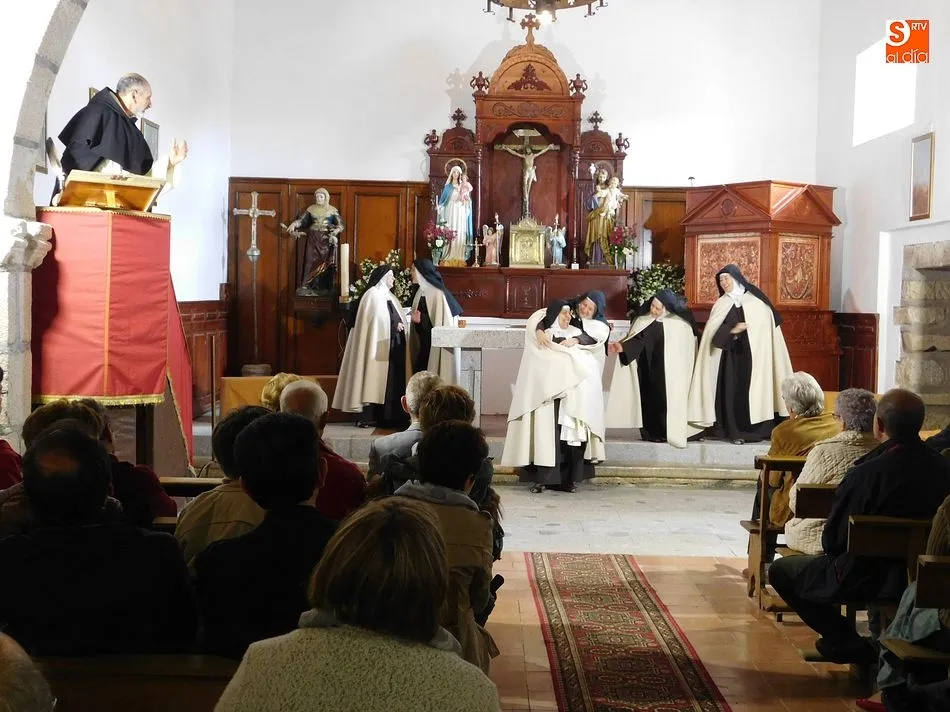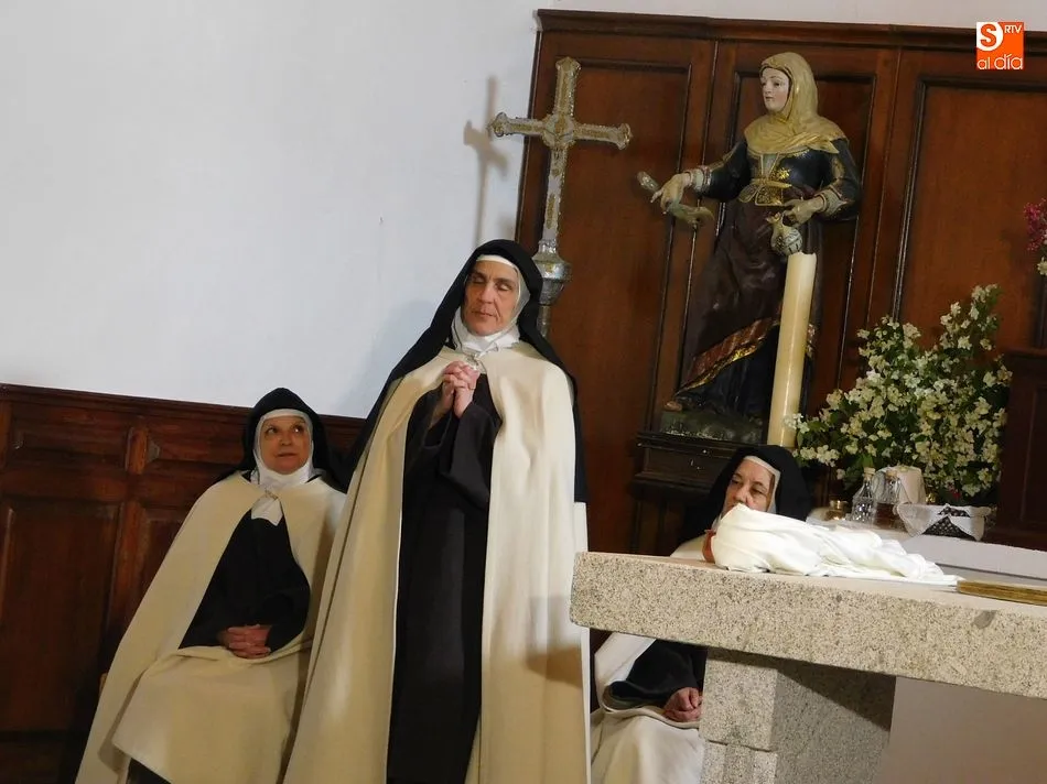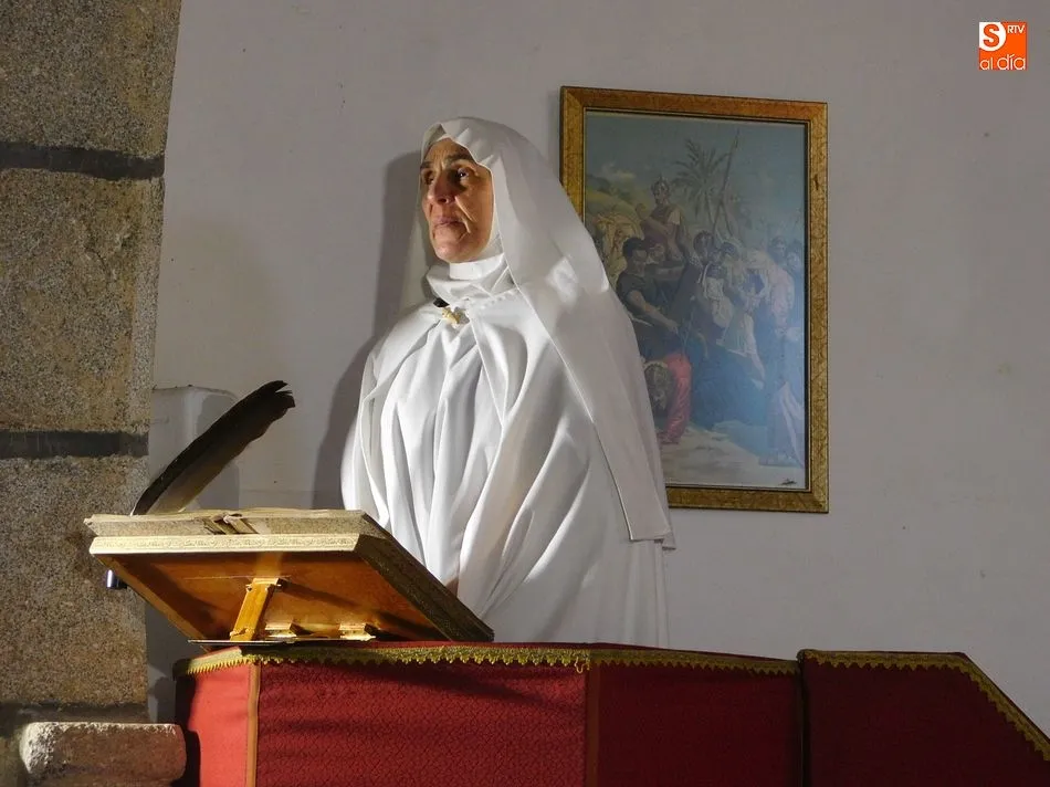 Una sencilla y cotidiana historia como la de cualquier mujer, pero que vista desde la perspectiva de su tiempo, la convierte en singular, admirable y perenne. Los habitantes de un pueblo que saben bien lo que es vivir en comunidad y mantener las raíces a través de los tiempos con autenticidad, orgullo y sencillez, contemplaron emocionados a un singular grupo de carmelitas que a los pies de un dominico acusador saben defender a aquella que las instruyó en la vida, el alma y los dones personales. Ver la naturalidad con la que las actrices de ?Lazarillo de Tormes? dibujan a la maestra, y la veracidad que de ella transmiten, da idea del grado de atracción que esta historia de mujer lleva consigo. La calidad de las réplicas que el actor que encarna al dominico interpone ante sus compañeras, hacen totalmente creíble la indignación de unas mujeres que dejan de ser actrices para convertirse ante nuestros ojos en distintas personalidades femeninas que a pesar de llevar idénticos y auténticos hábitos de estameña de la época del XVI, son claro reflejo de la pluralidad que existe en el ser humano y que se aúna en valores como la justicia, libertad, inteligencia y compasión que a todos nos convierte en iguales, a la vez que únicos. Oír los poemas y palabras de Teresa, en boca de sus hermanas que tanto viajaran con ella para fundar nuevos conventos en los que vivir libres llegó de nuevo al corazón del Público de Herguijuela del Campo que entre risas y lágrimas de nuevo ovacionaron una historia que puede contarse de cualquier persona que viva y luche desde el corazón. La música de un órgano renacentista pone el contrapunto que nos lleva y trae de la vida a la escena y viceversa. Y en la escena dos valiosas y originalísimas tallas de san Isidro y santa María de la Cabeza, hacen un guiño también a la vida y al campo.