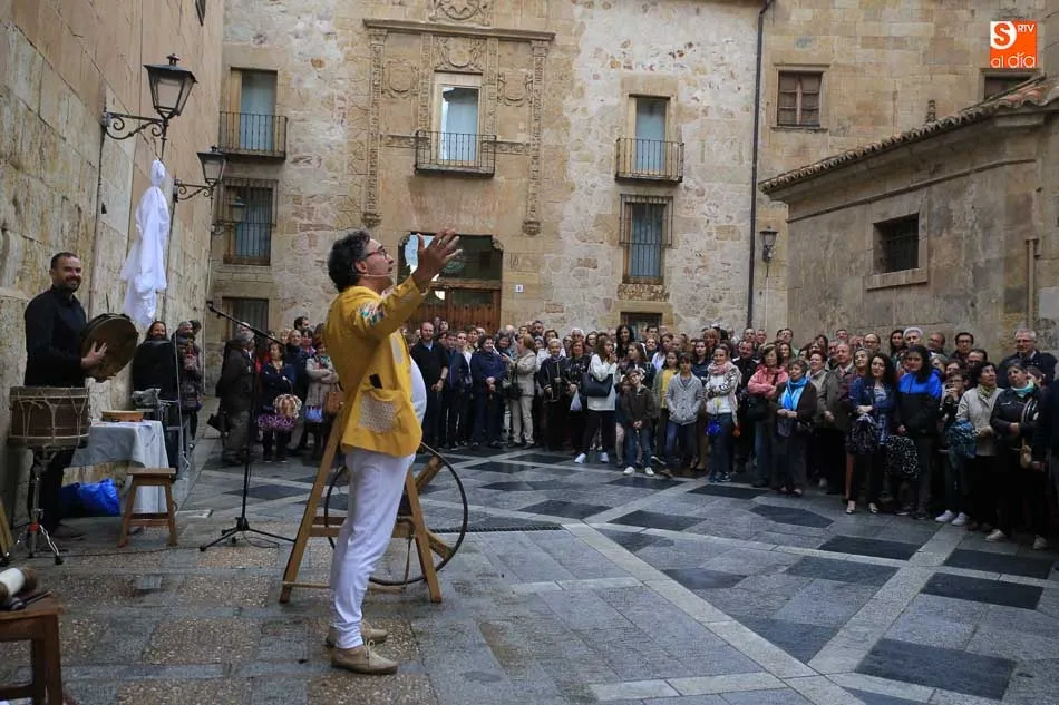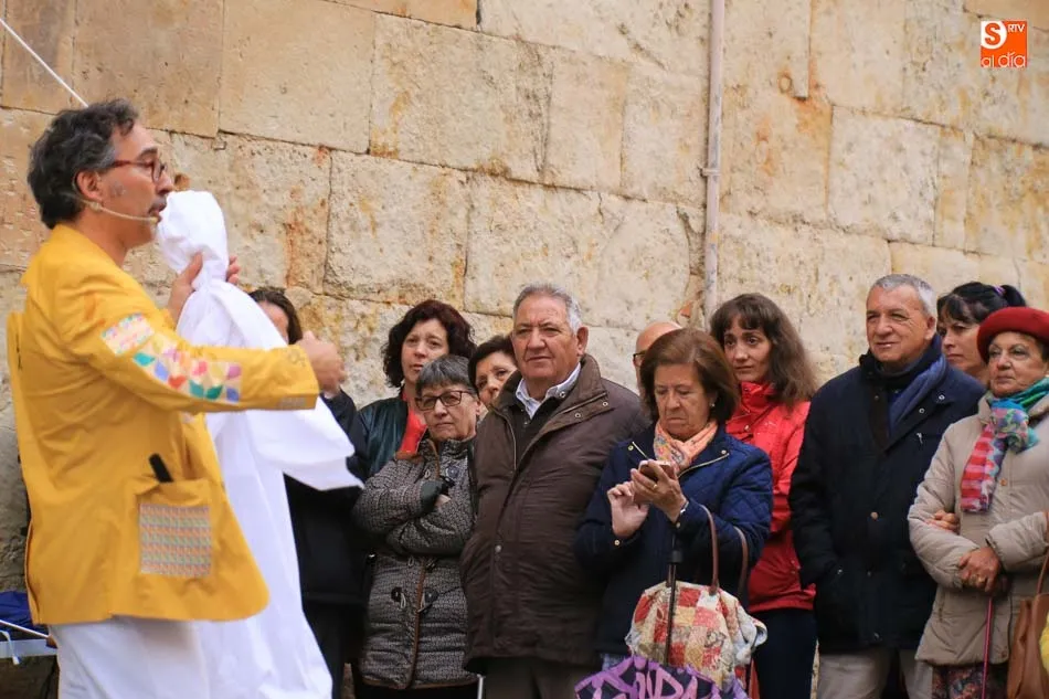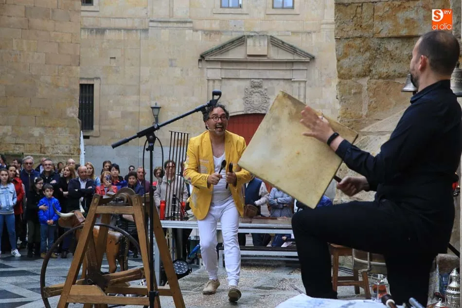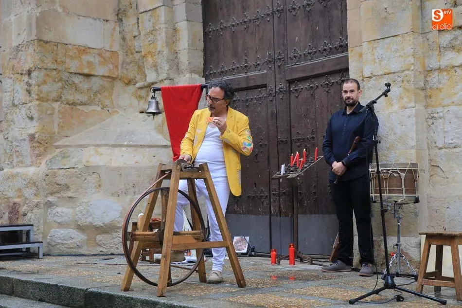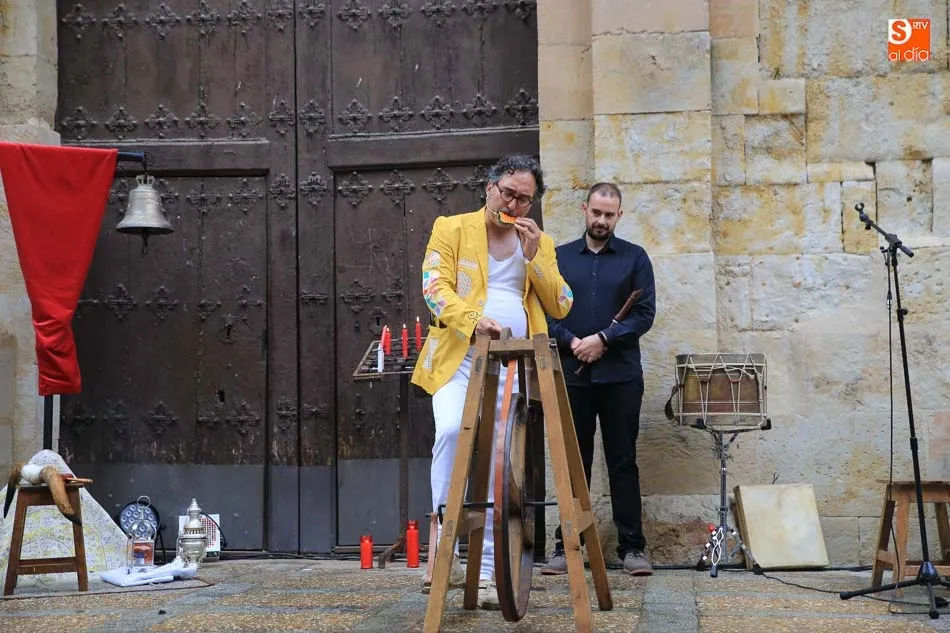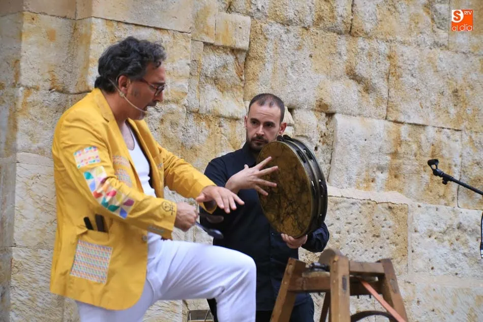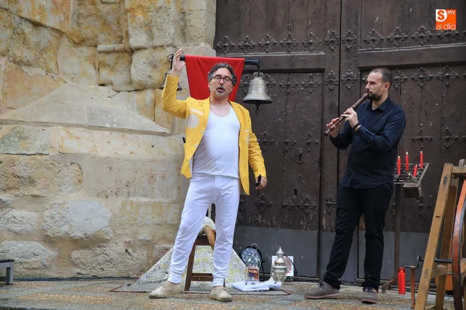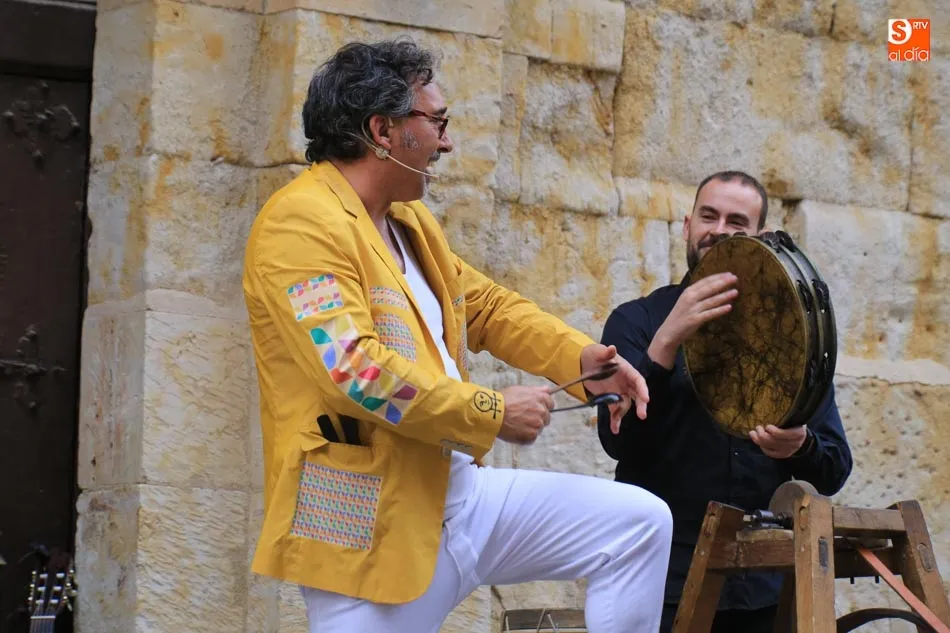 La lluvia dio una tregua y el espectáculo ?Trovadores y Juglares?, de los salmantinos Gabriel Calvo y Jes Martin´s, pudo celebrarse en la plaza de San Benito, aunque comenzó con retraso debido al agua que caía a las 19.00 horas, cuando estaba previsto el inicio.
