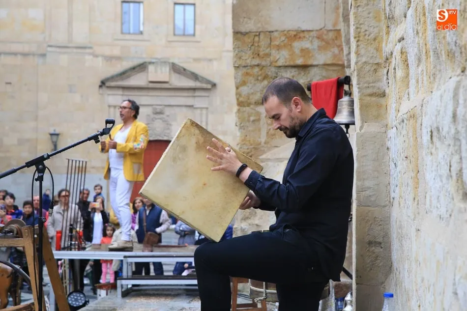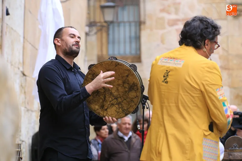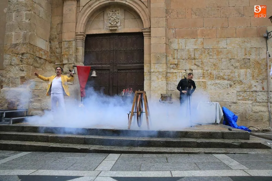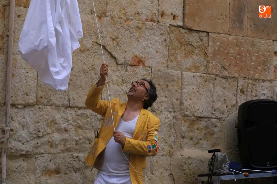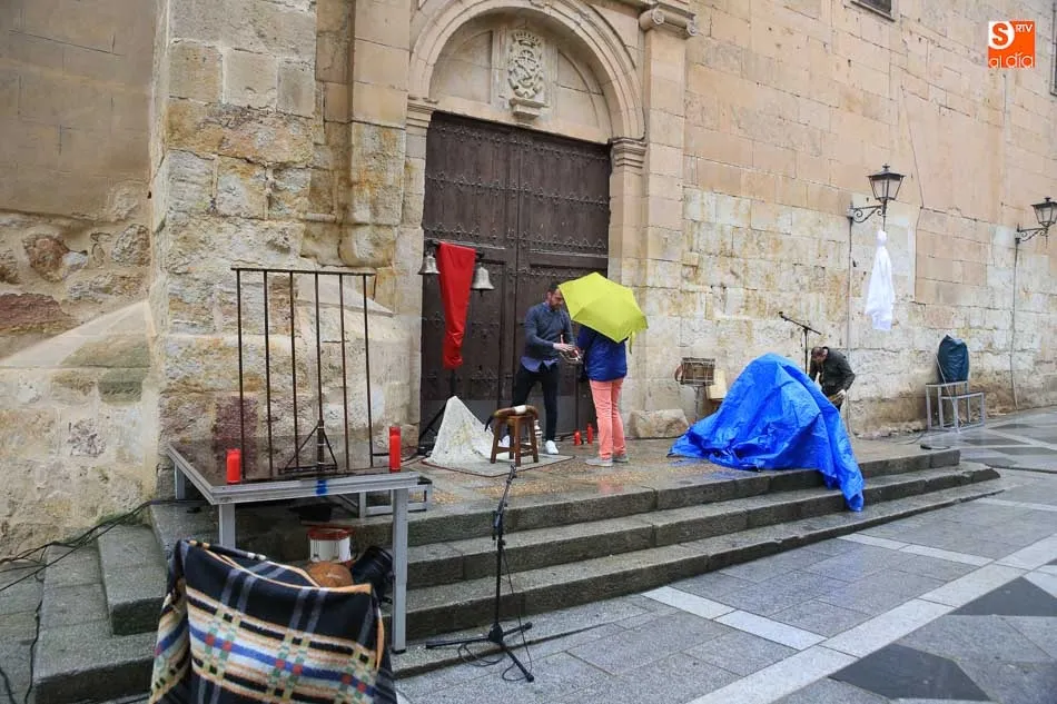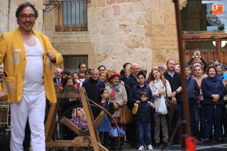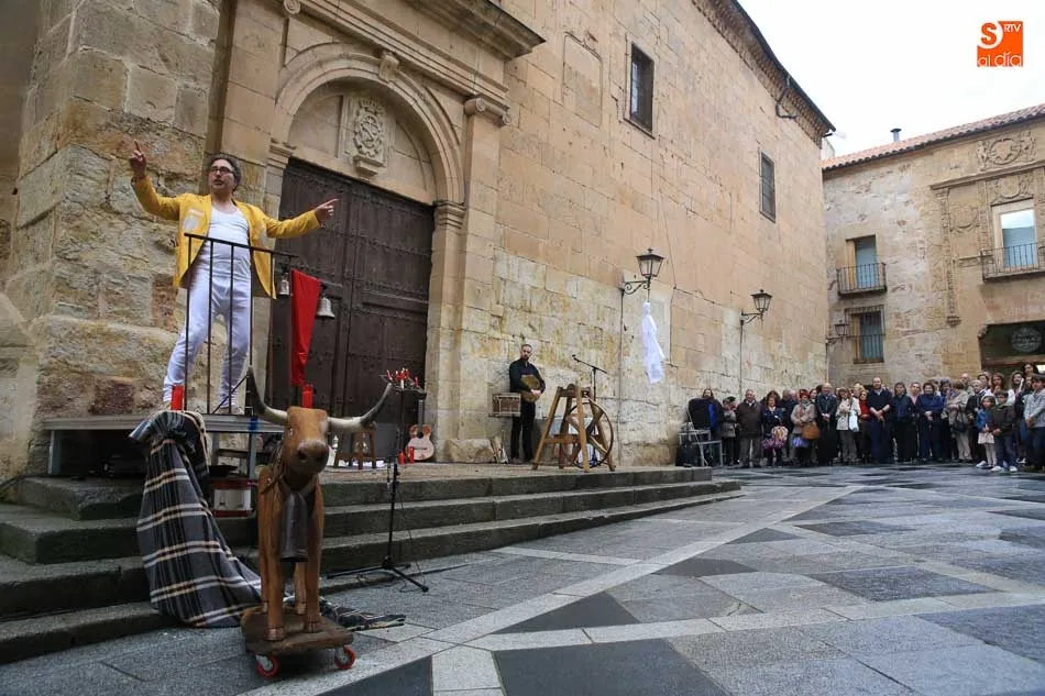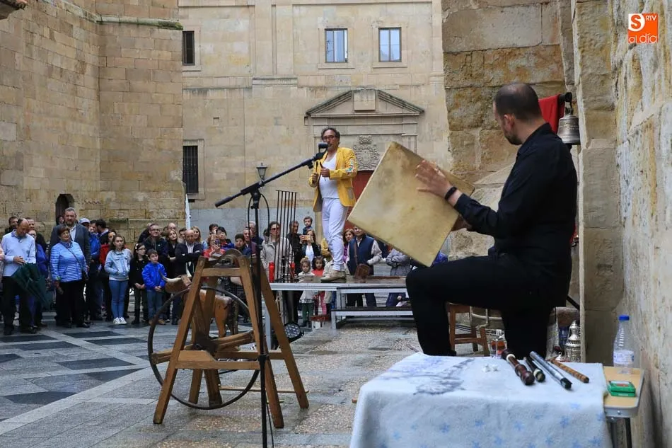 La lluvia dio una tregua y el espectáculo ?Trovadores y Juglares?, de los salmantinos Gabriel Calvo y Jes Martin´s, pudo celebrarse en la plaza de San Benito, aunque comenzó con retraso debido al agua que caía a las 19.00 horas, cuando estaba previsto el inicio.