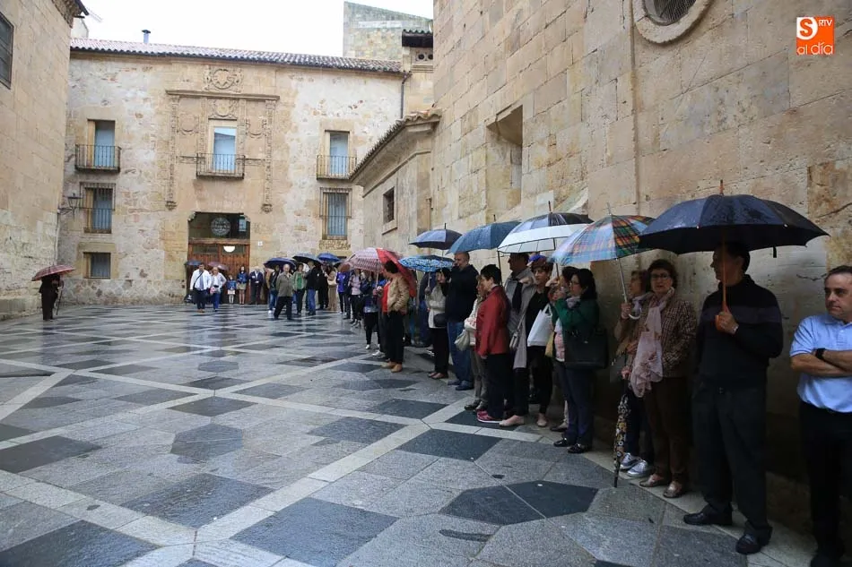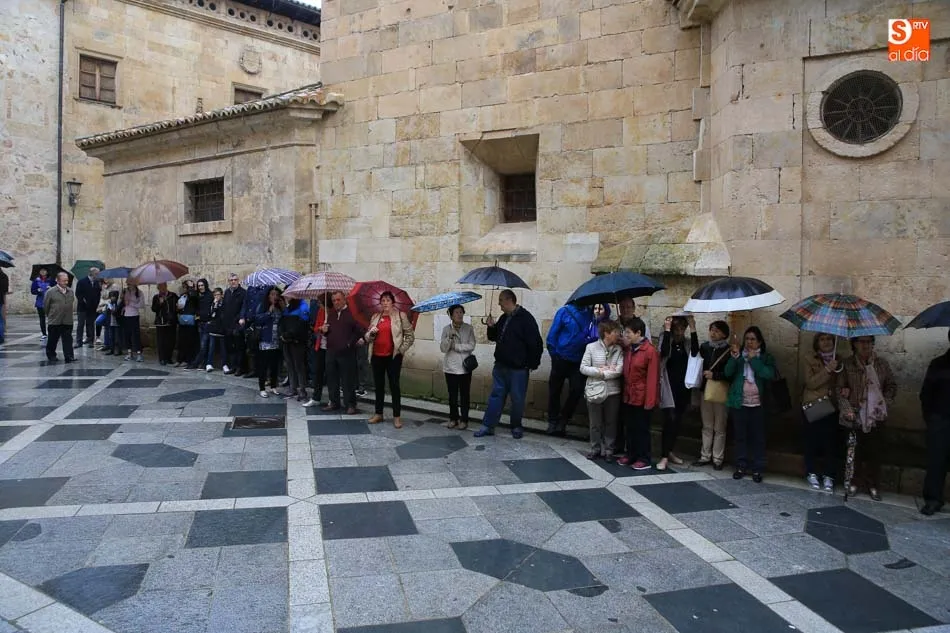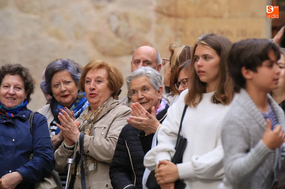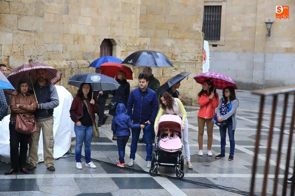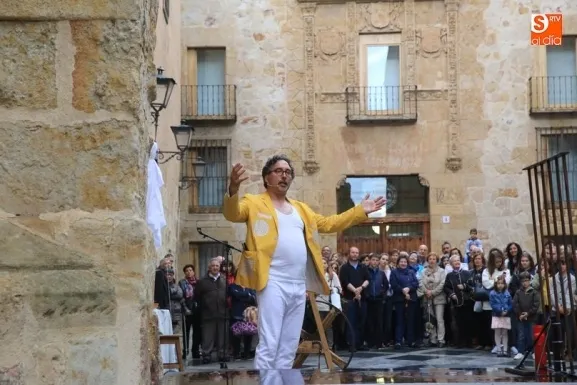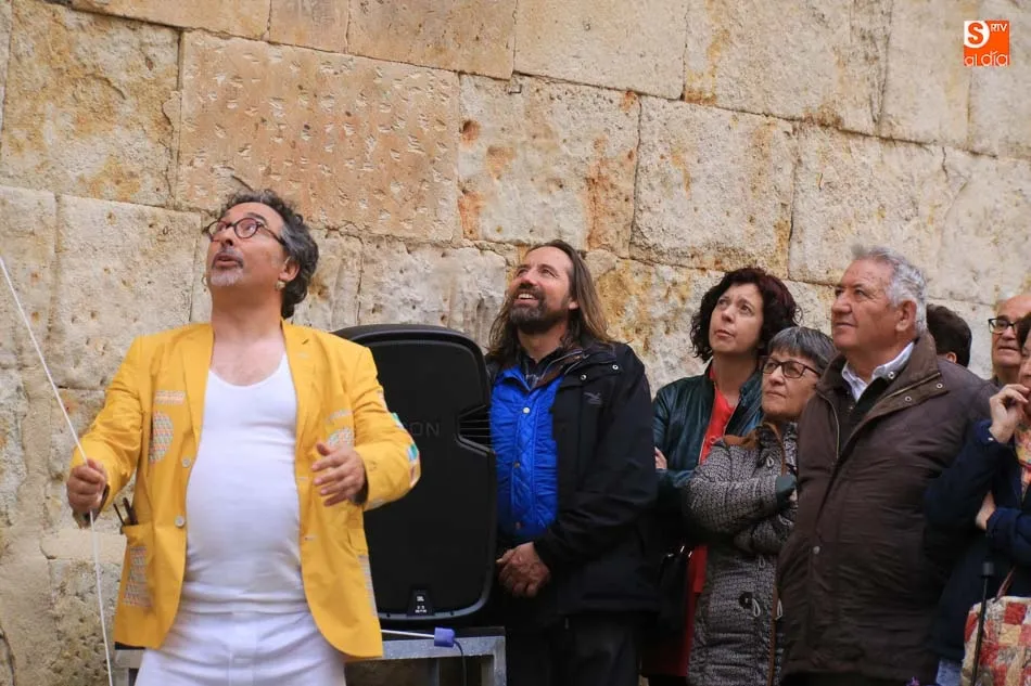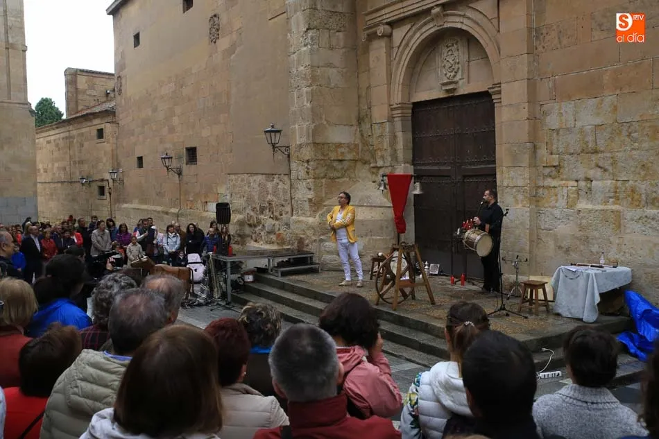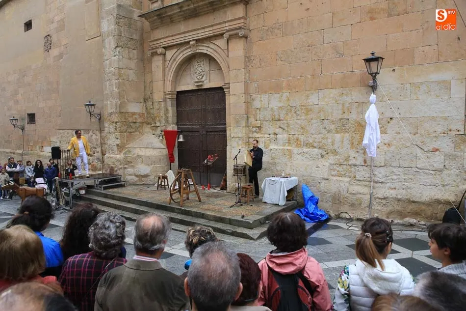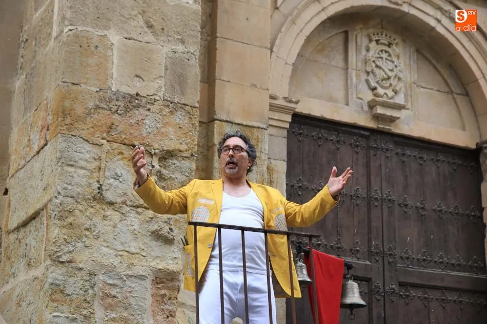 La lluvia dio una tregua y el espectáculo ?Trovadores y Juglares?, de los salmantinos Gabriel Calvo y Jes Martin´s, pudo celebrarse en la plaza de San Benito, aunque comenzó con retraso debido al agua que caía a las 19.00 horas, cuando estaba previsto el inicio.