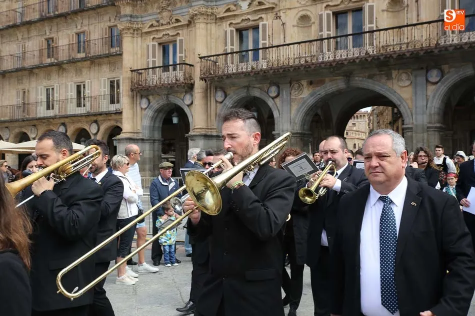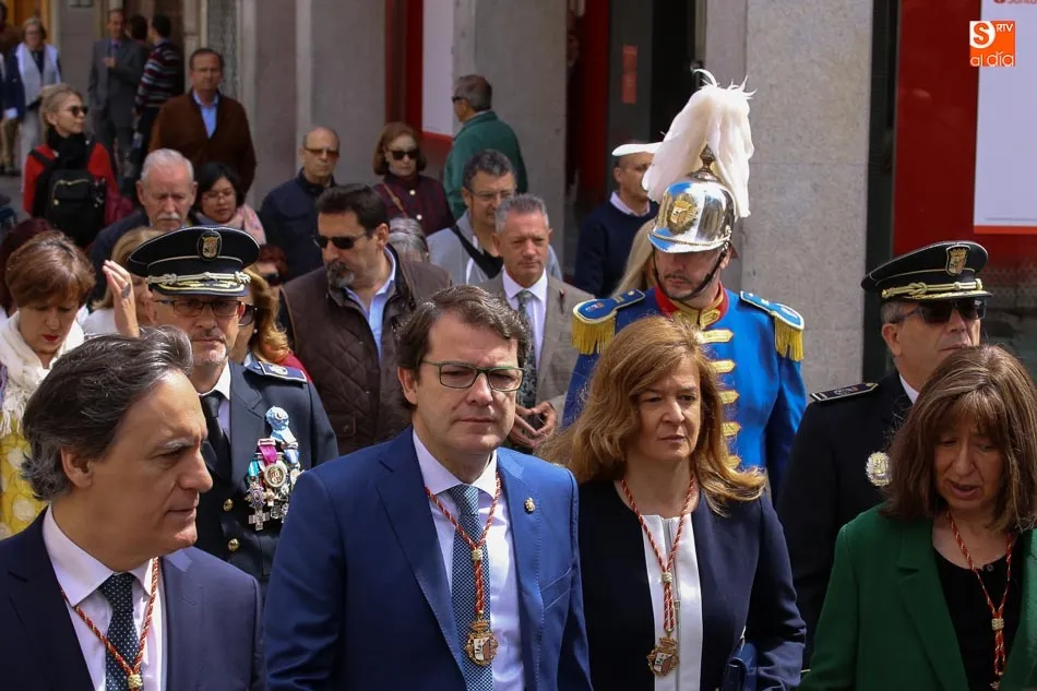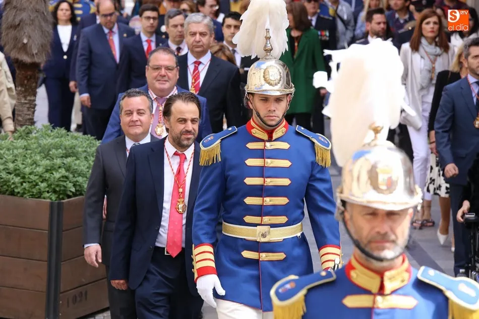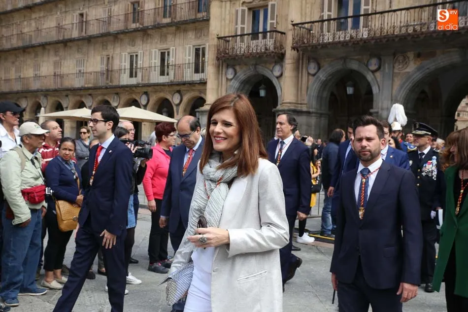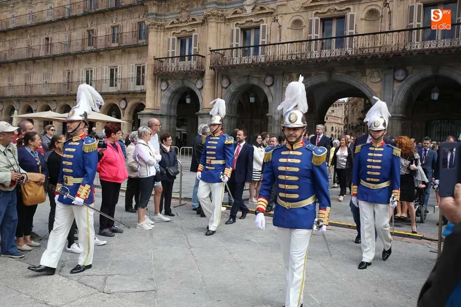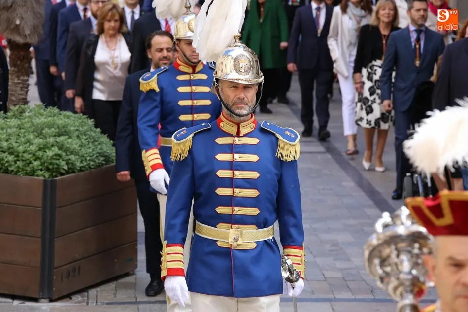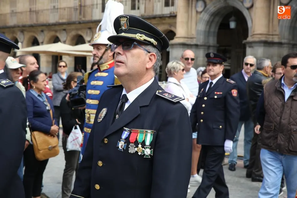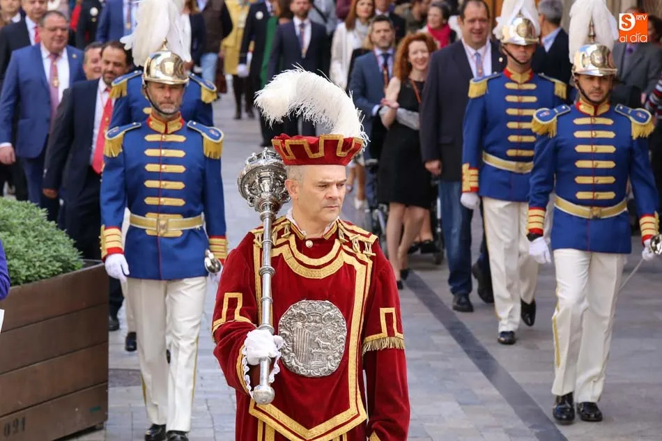 El alcalde de Salamanca, Alfonso Fernández Mañueco, encabezaba la marcha, seguido por concejales y junto a un grupo charro con trajes tradicionales y agentes de la Policía Local con el traje de gala.