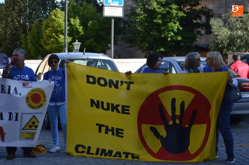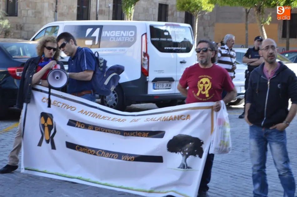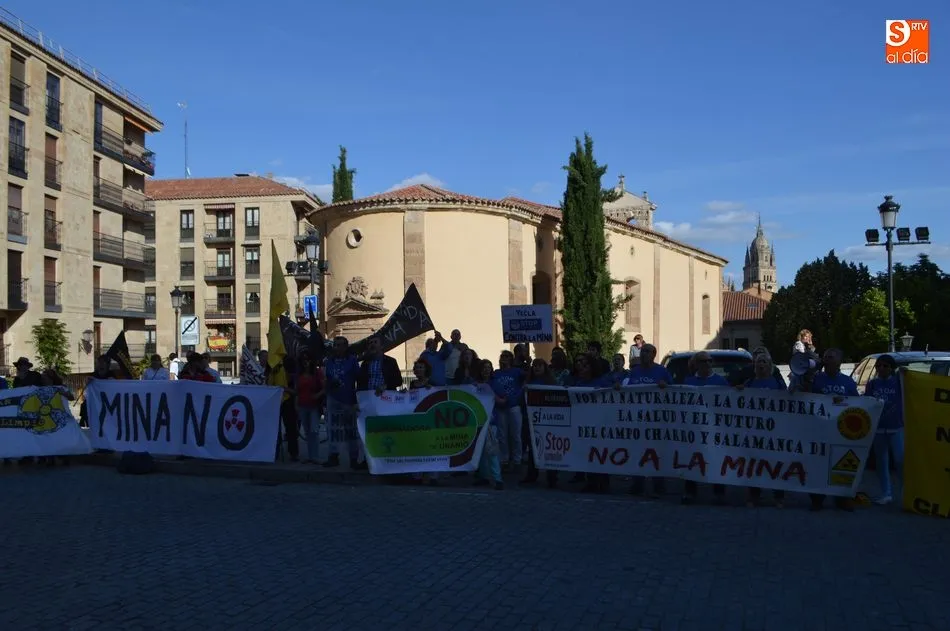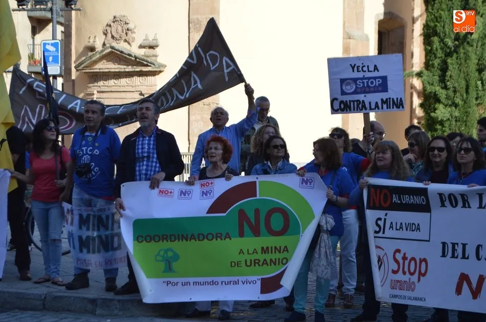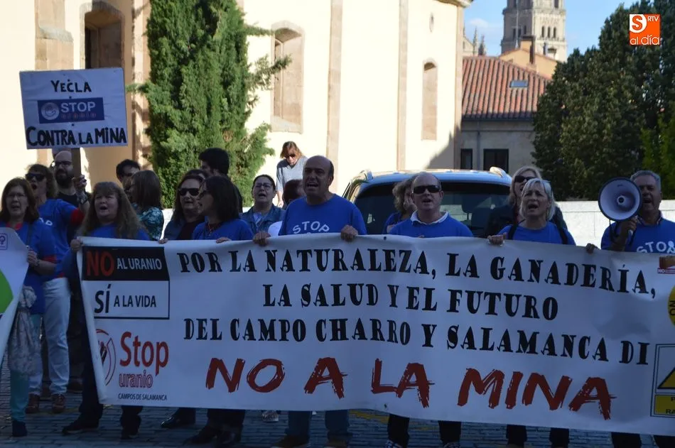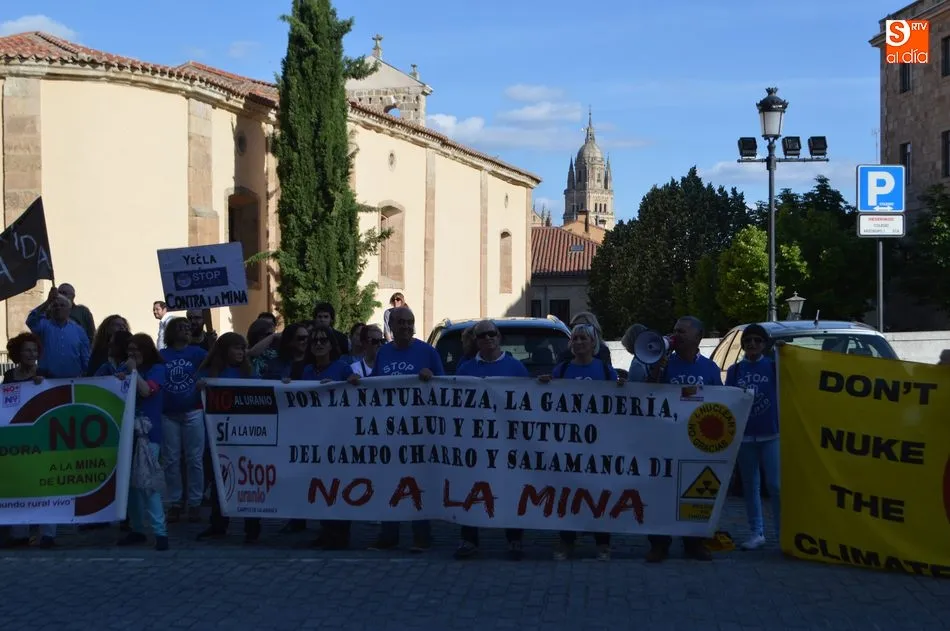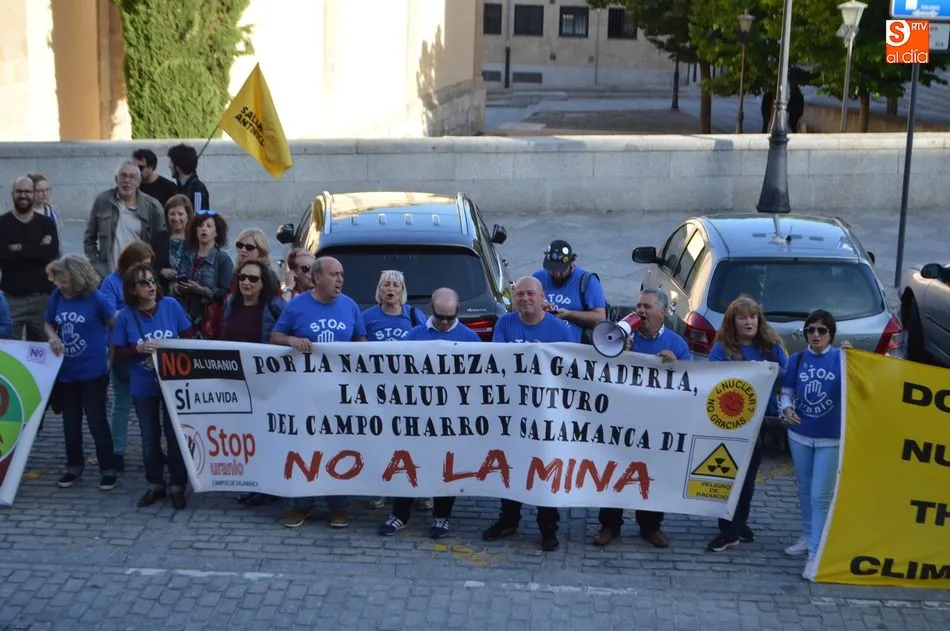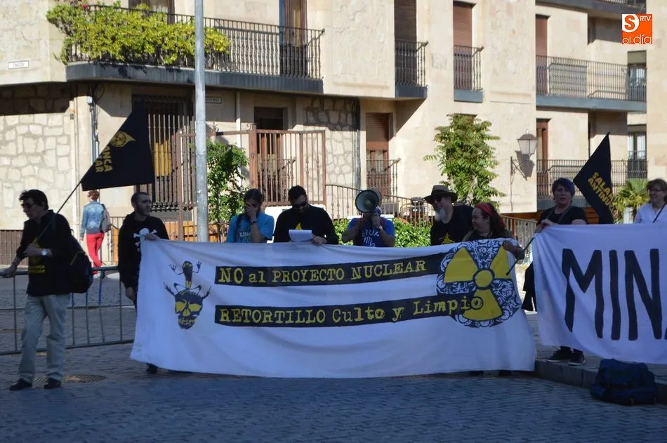 La minera celebraba su salida a la Bolsa en el colegio Arzobispo Fonseca mientras en el exterior un grupo de manifestantes mostraban su desacuerdo con el proyecto minero pata la extracción de uranio en el Campo Charro