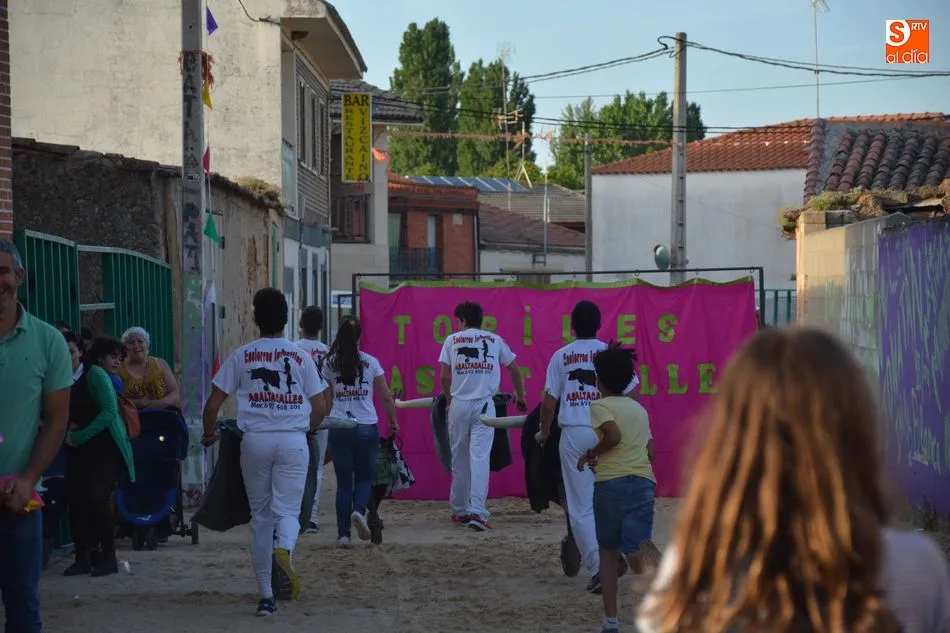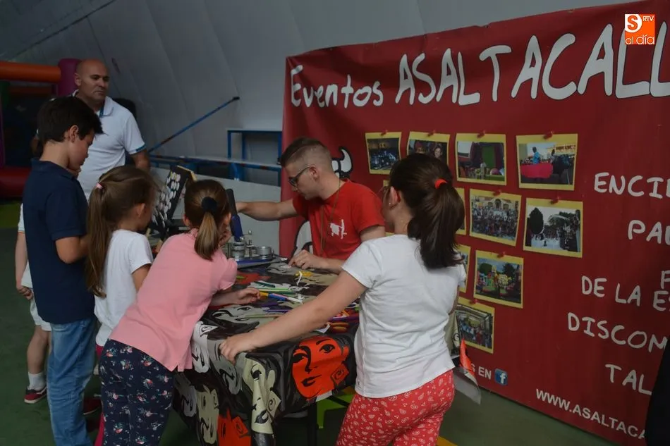 Después de la tradicional misa y procesión, los más pequeños han disfrutado de hinchables y juegos en el Pabellón de Topas desde las 17:00 horas hasta las 21:00. Durante la tarde, los niños saltaron en colchonetas, diseñaron sus propias chapas, nadaron en la piscina de bolas y jugaron a los bolos. Tras horas de diversión comenzaba el encierro infantil donde los más valientes demostraron sus dotes en el toreo corriendo y haciendo cortes a los carretones.