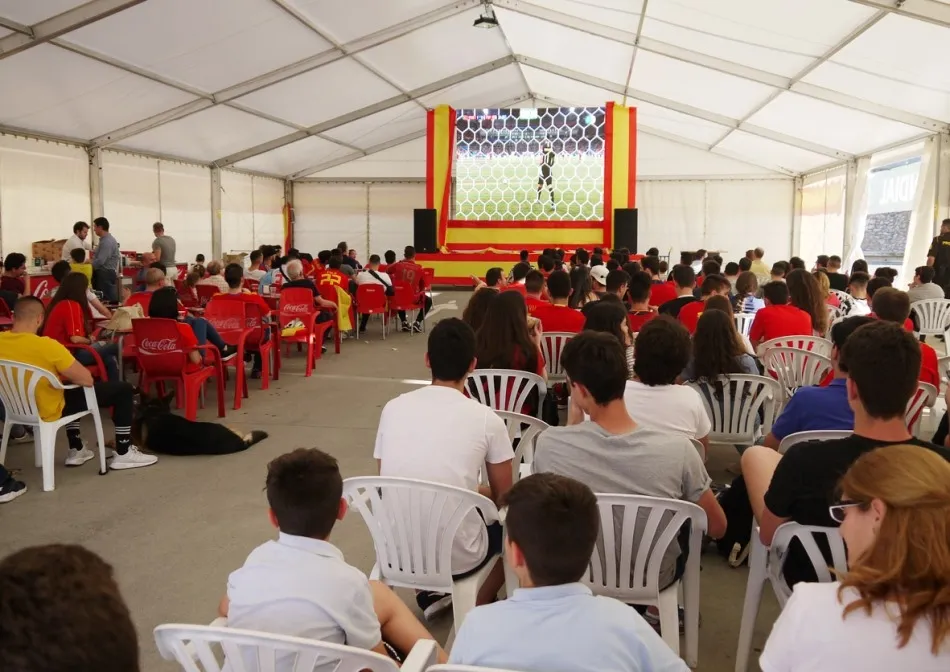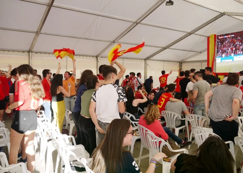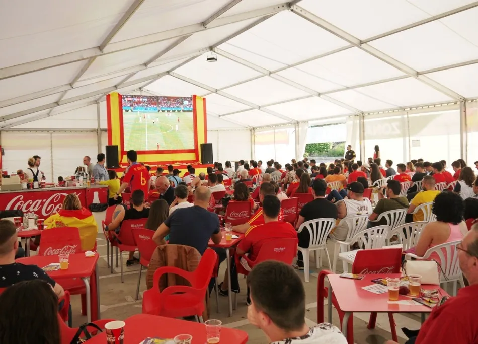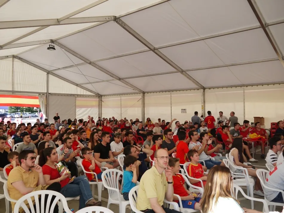 La carpa en el aparcamiento cuenta con pantalla gigante, servicio de restauración y fantásticos premios