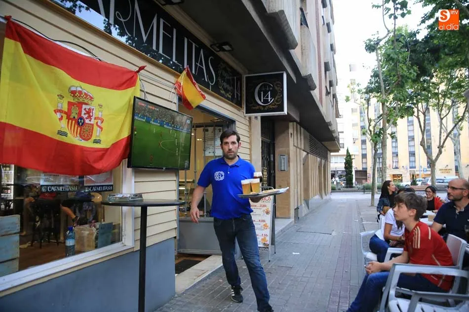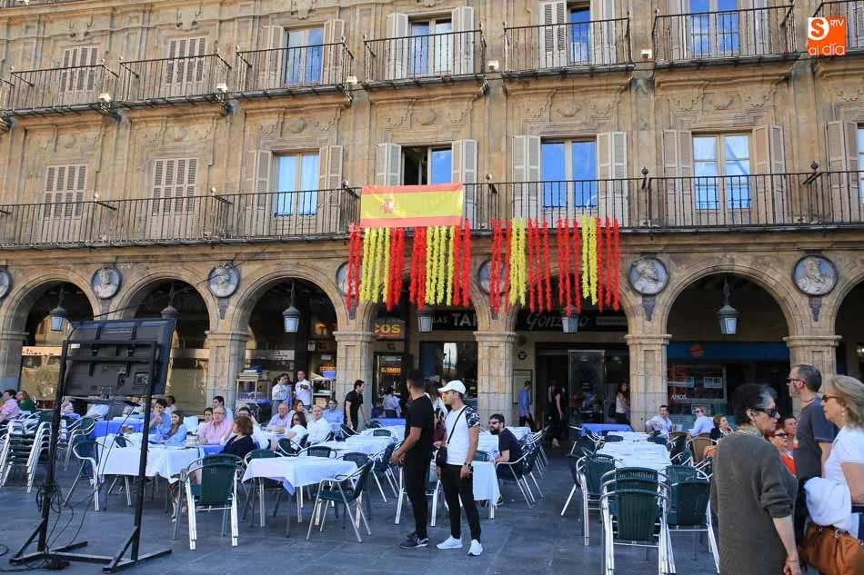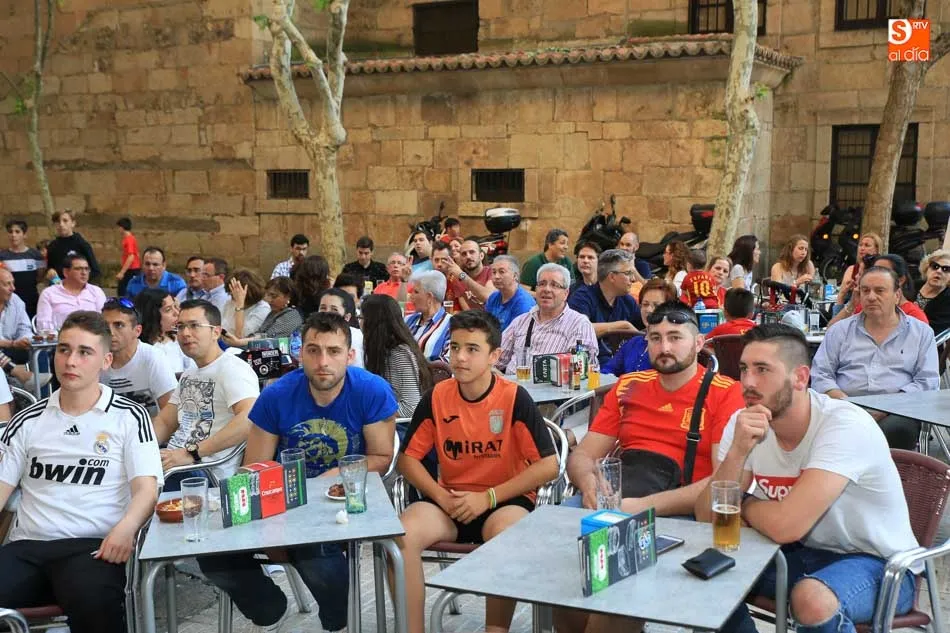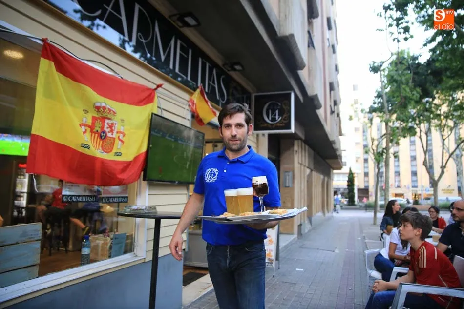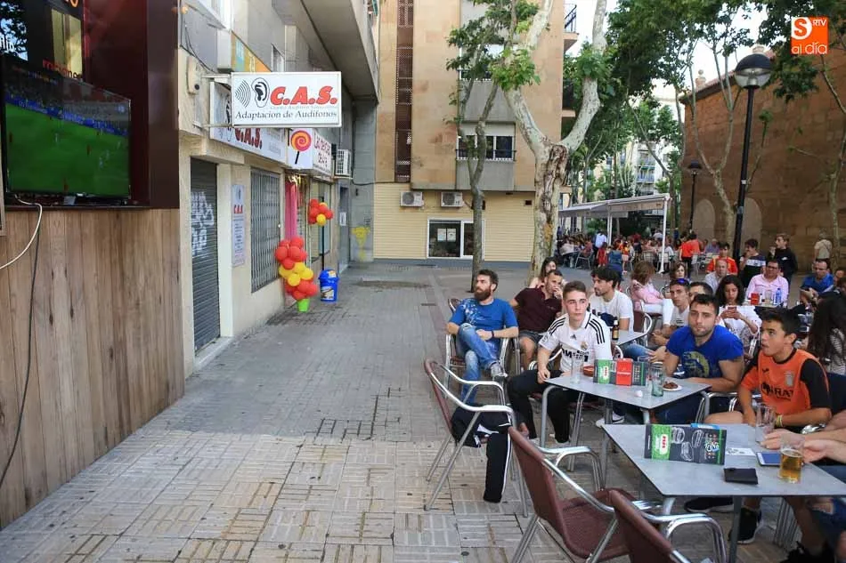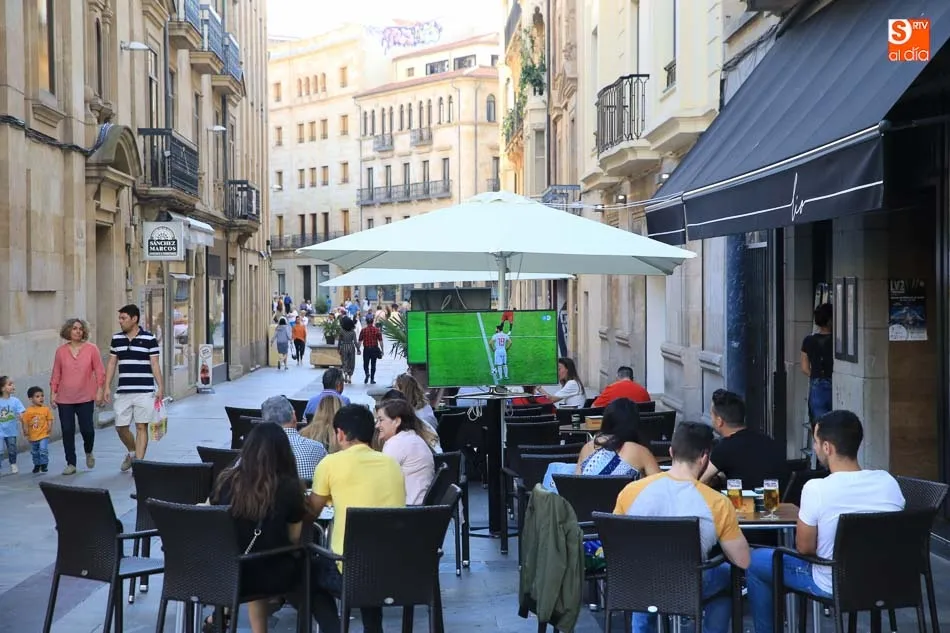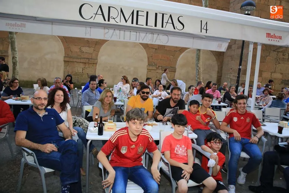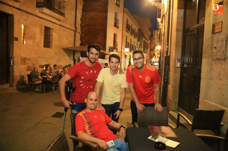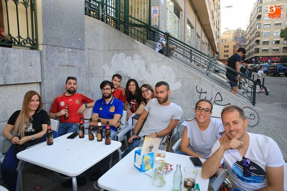 Como era de esperar los seguidores salmantinos disfrutaron en los bares y locales céntricos del choque entre España y Portugal, que suponía el debut del combinado nacional en un nuevo Mundial. Además, después de semanas donde el mal tiempo y la lluvia han sido protagonismos, el buen tiempo permitió que las terrazas se llenaran.