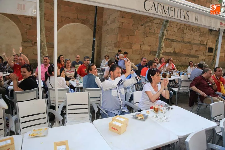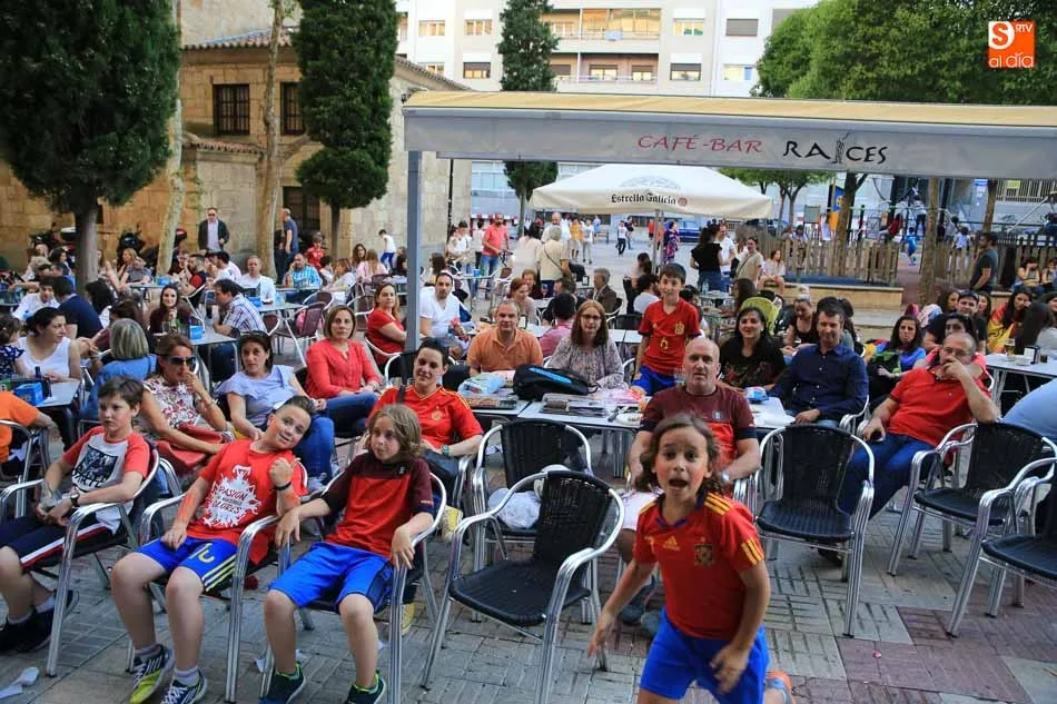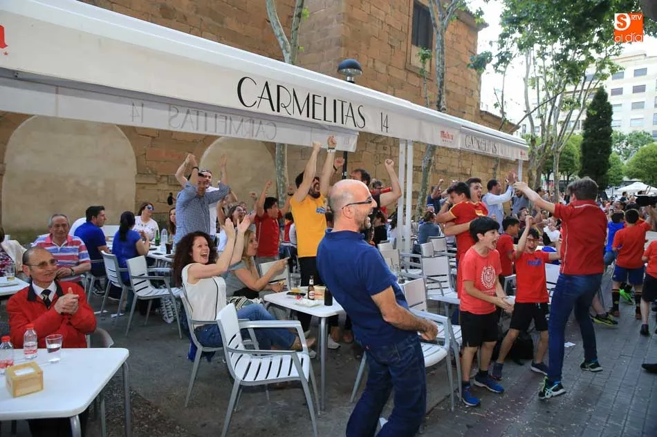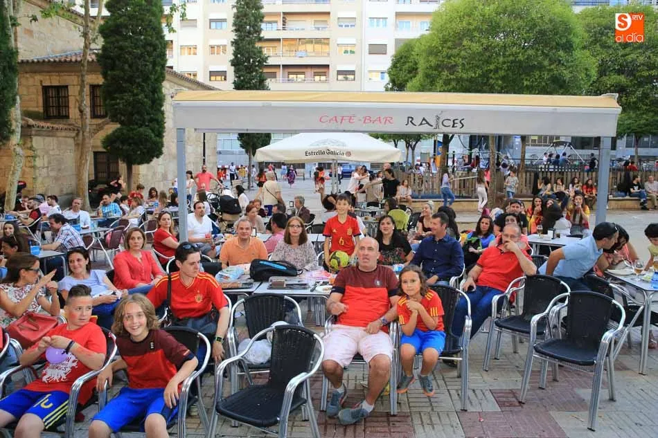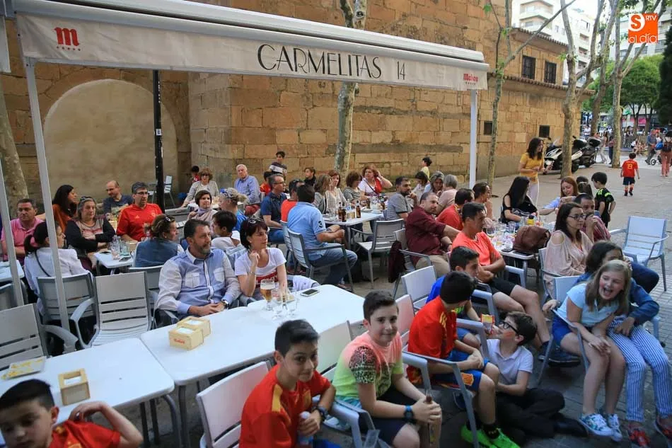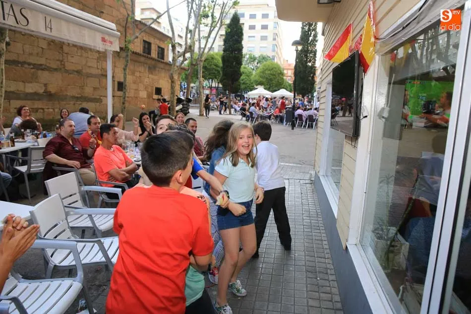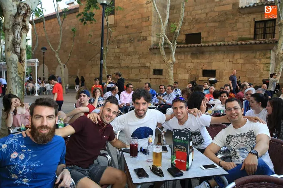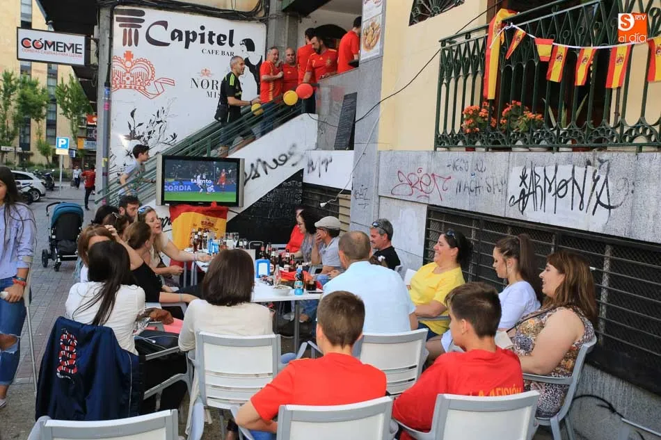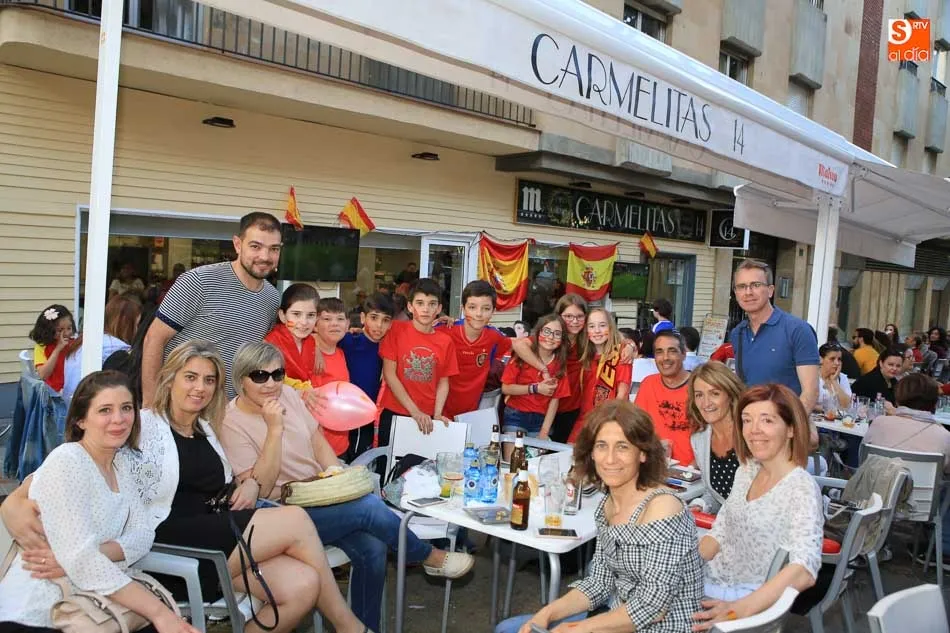 Como era de esperar los seguidores salmantinos disfrutaron en los bares y locales céntricos del choque entre España y Portugal, que suponía el debut del combinado nacional en un nuevo Mundial. Además, después de semanas donde el mal tiempo y la lluvia han sido protagonismos, el buen tiempo permitió que las terrazas se llenaran.